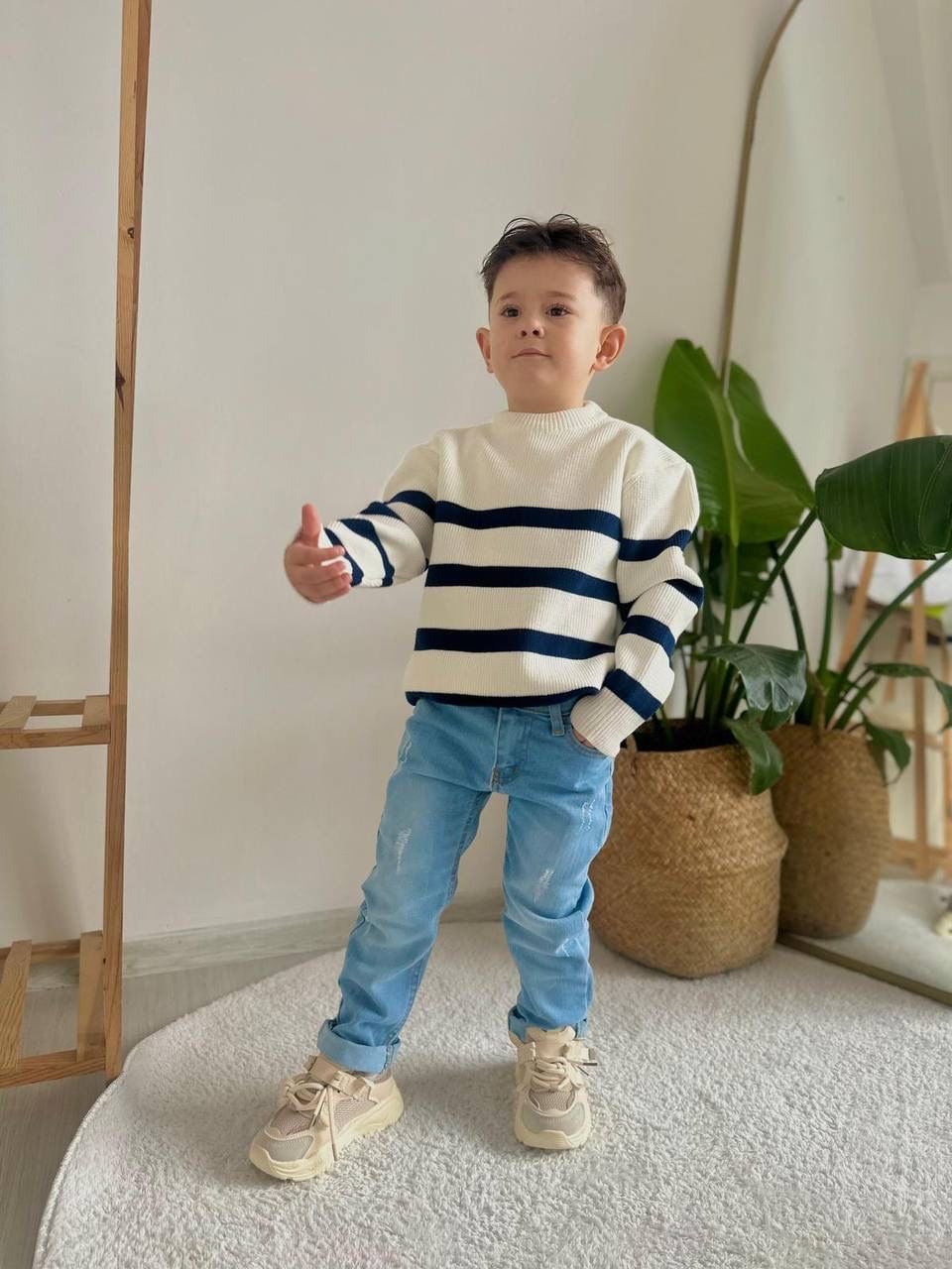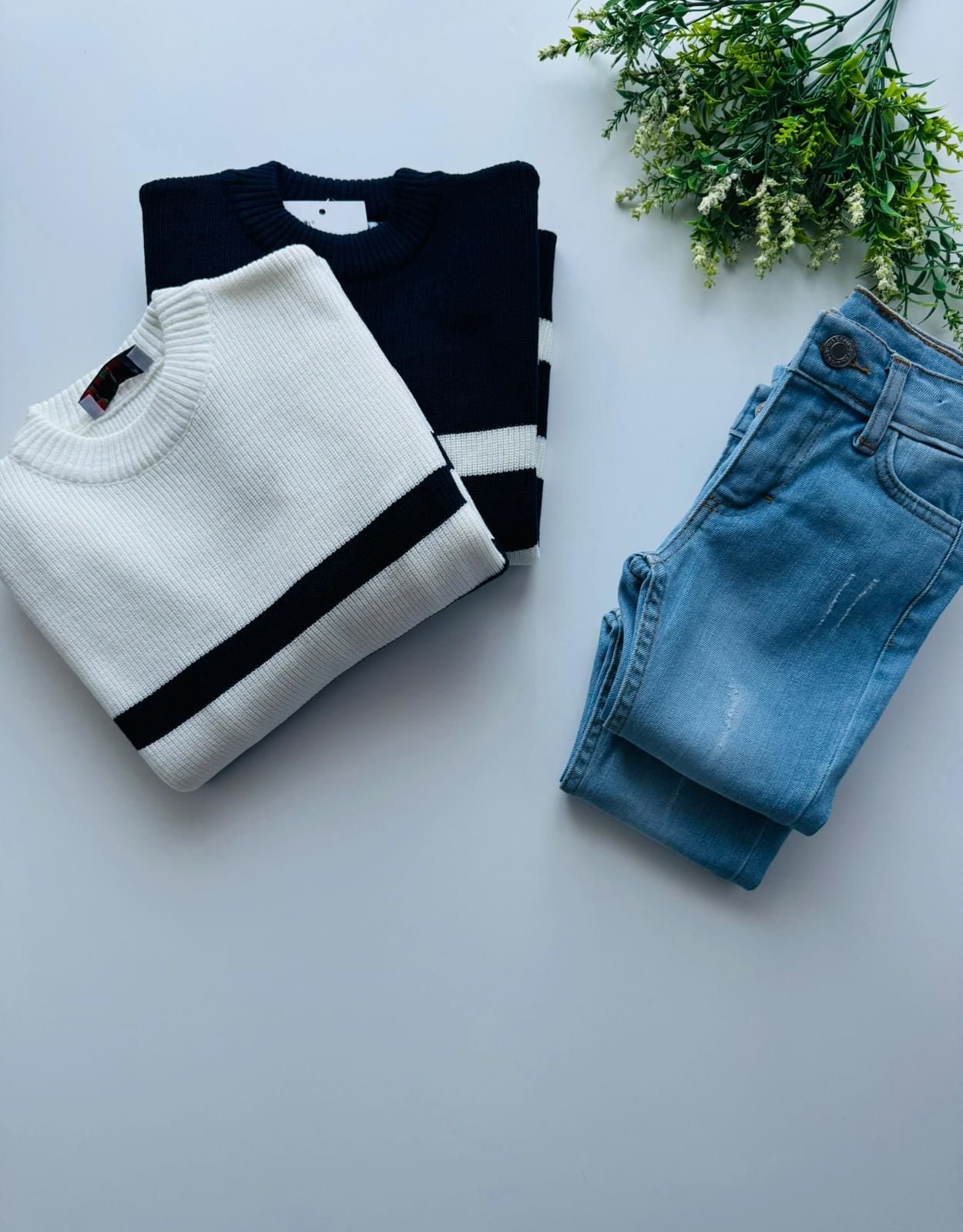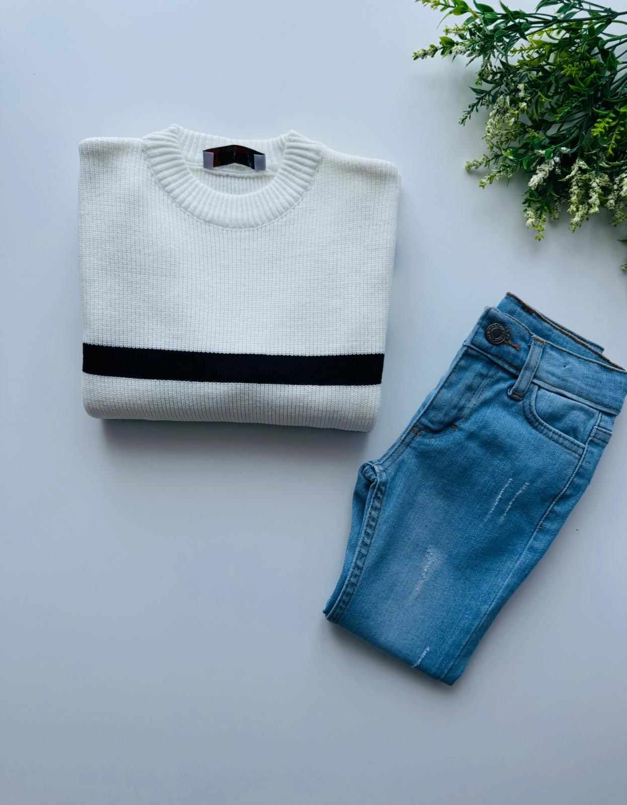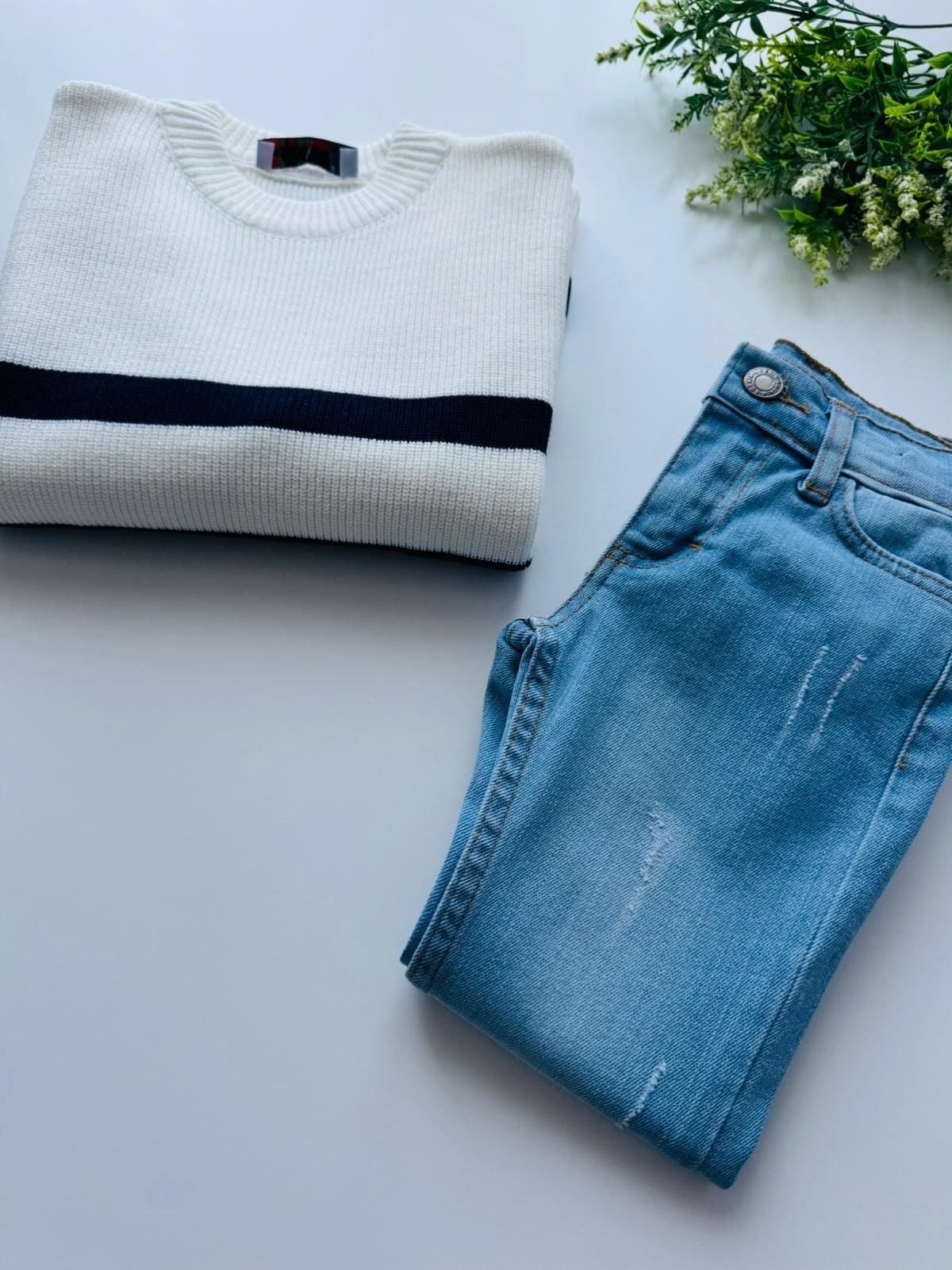 Ürün Bilgisi : Alt Denim kumaştır, Üst Triko