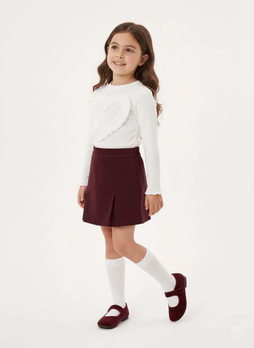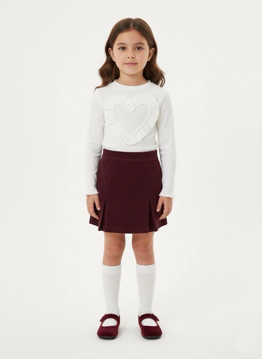 Kalp Baskılı Şort Etek 2’li Takım - Bordo