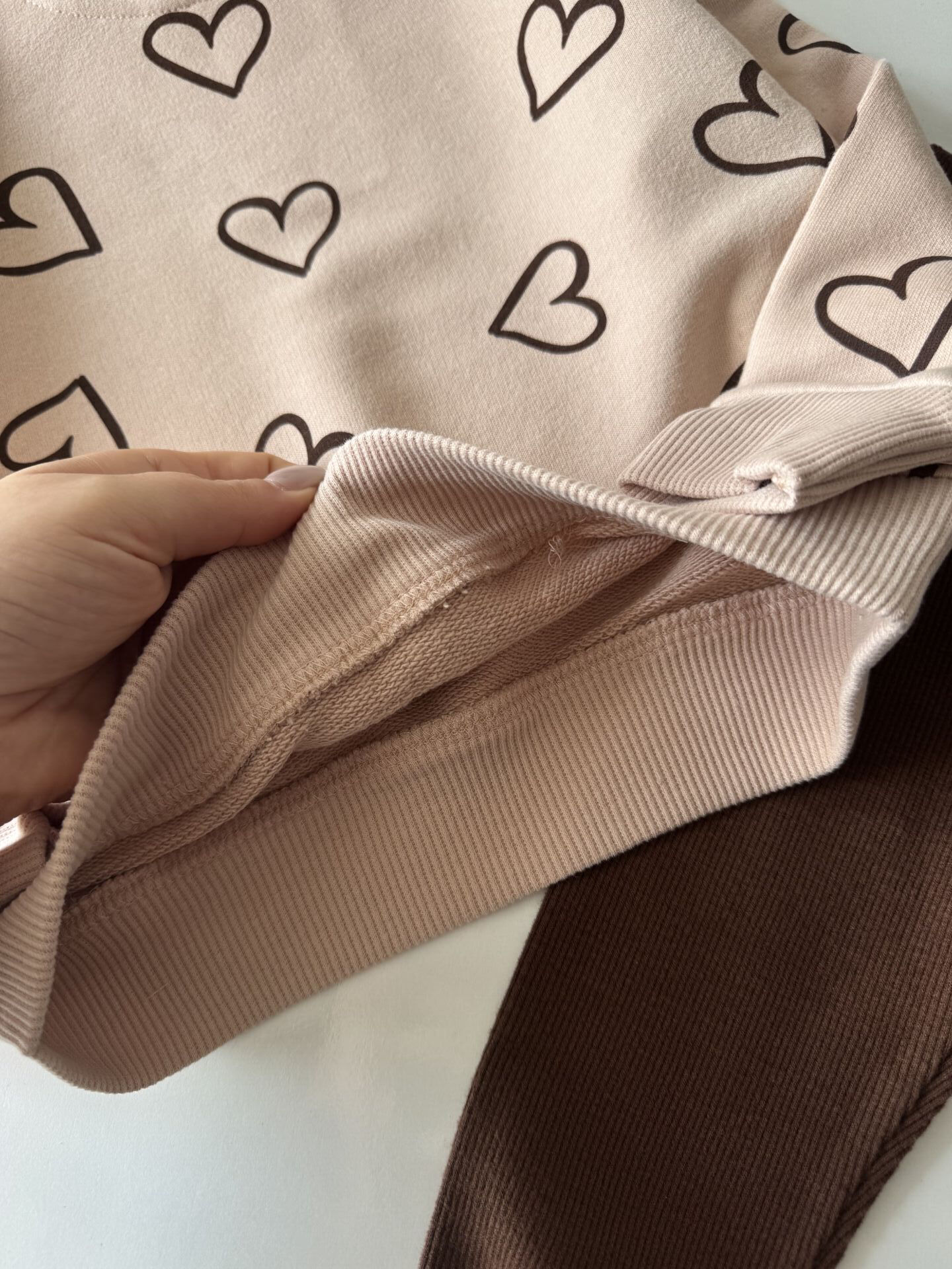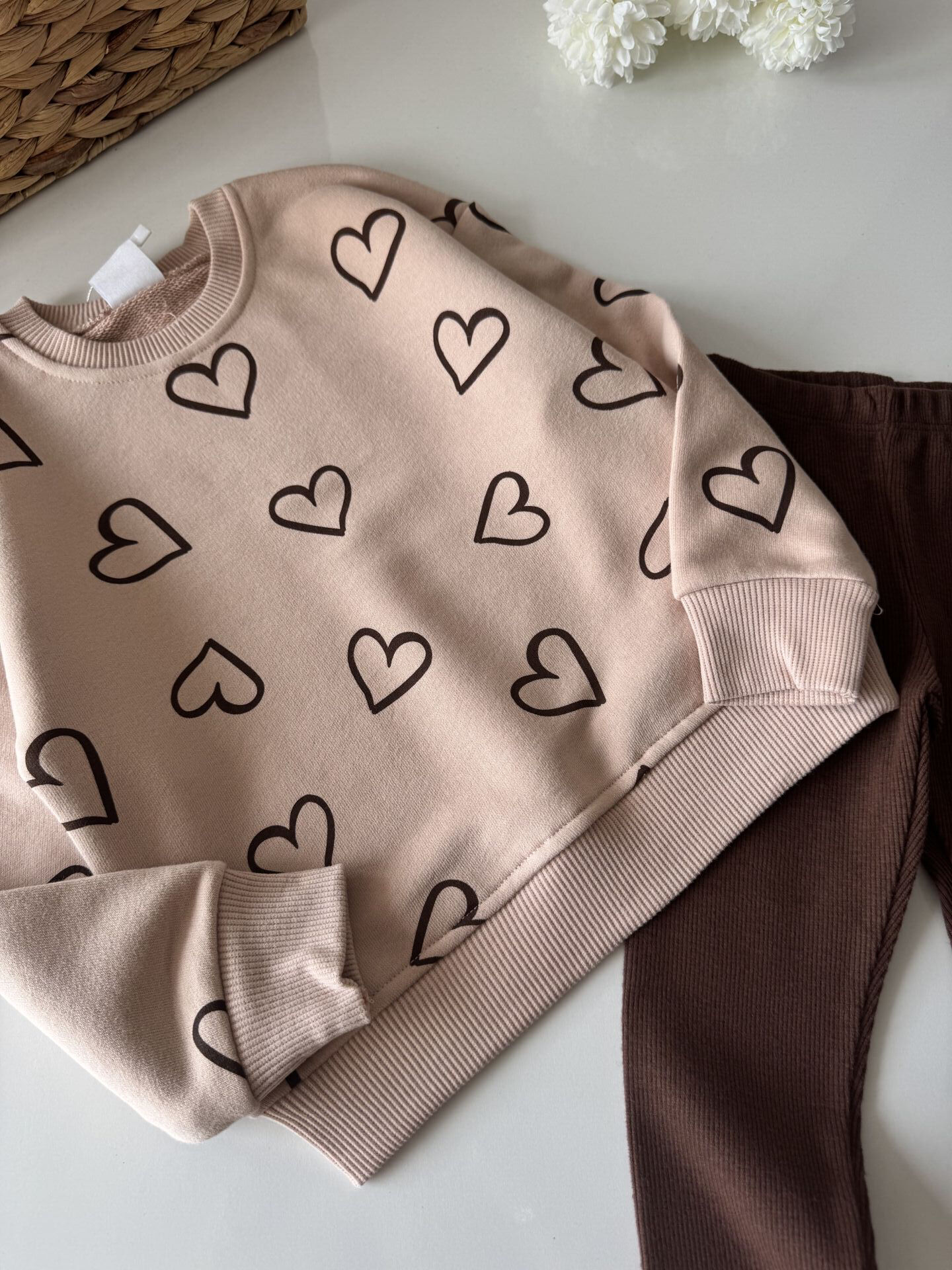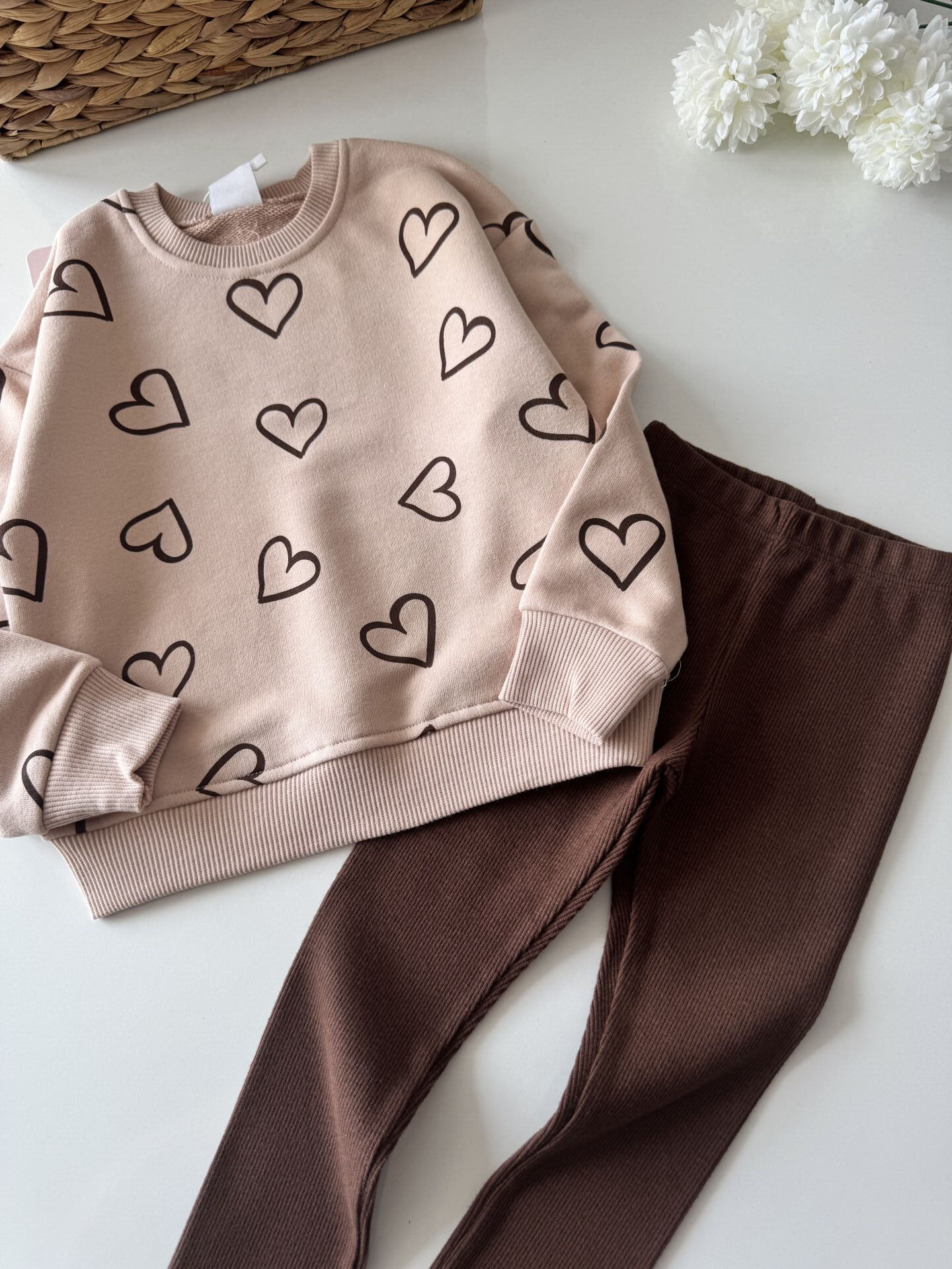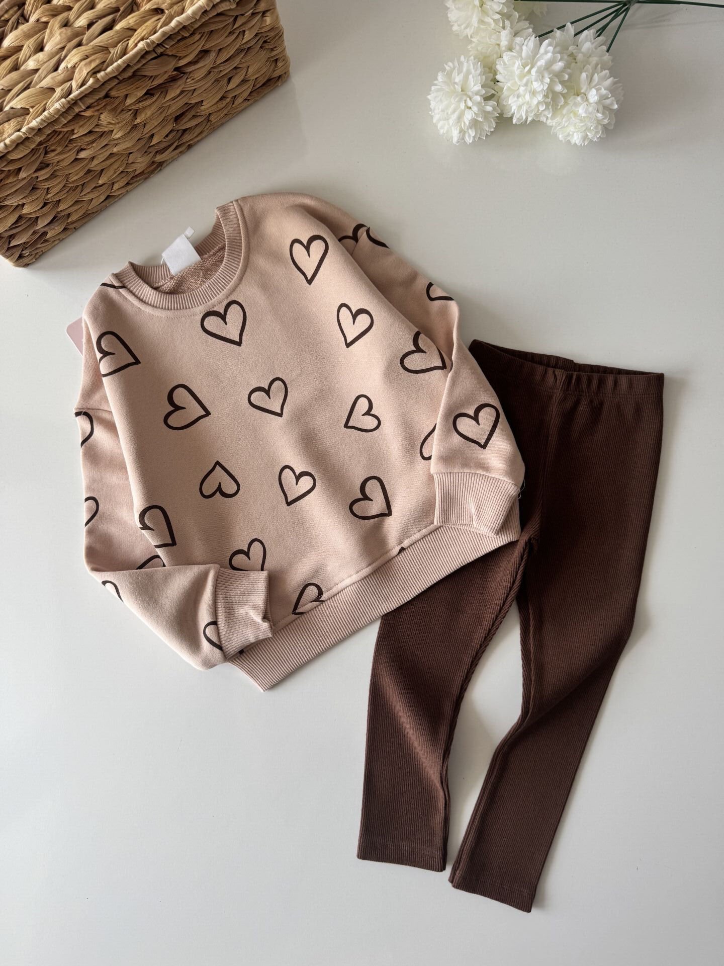 Kalp Baskılı Taytlı Takım - Pudra