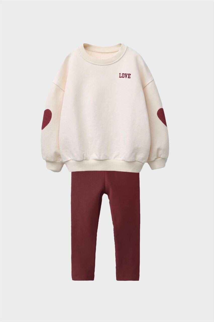 Kalp Desenli Taytlı Takım - Krem Bordo