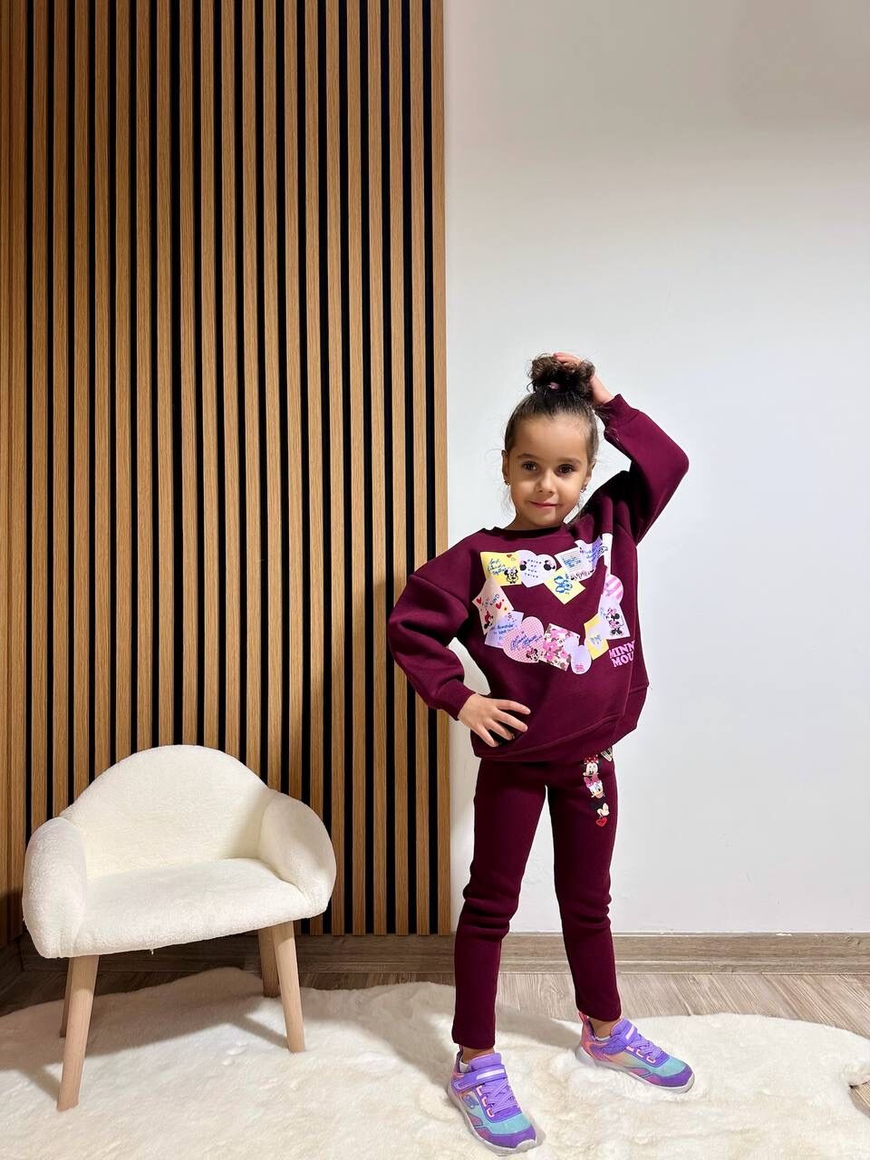 Kalp Post-it Baskılı Taytlı Şardonlu Takım - Mürdüm