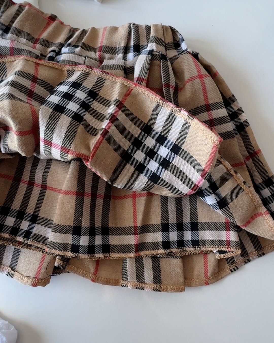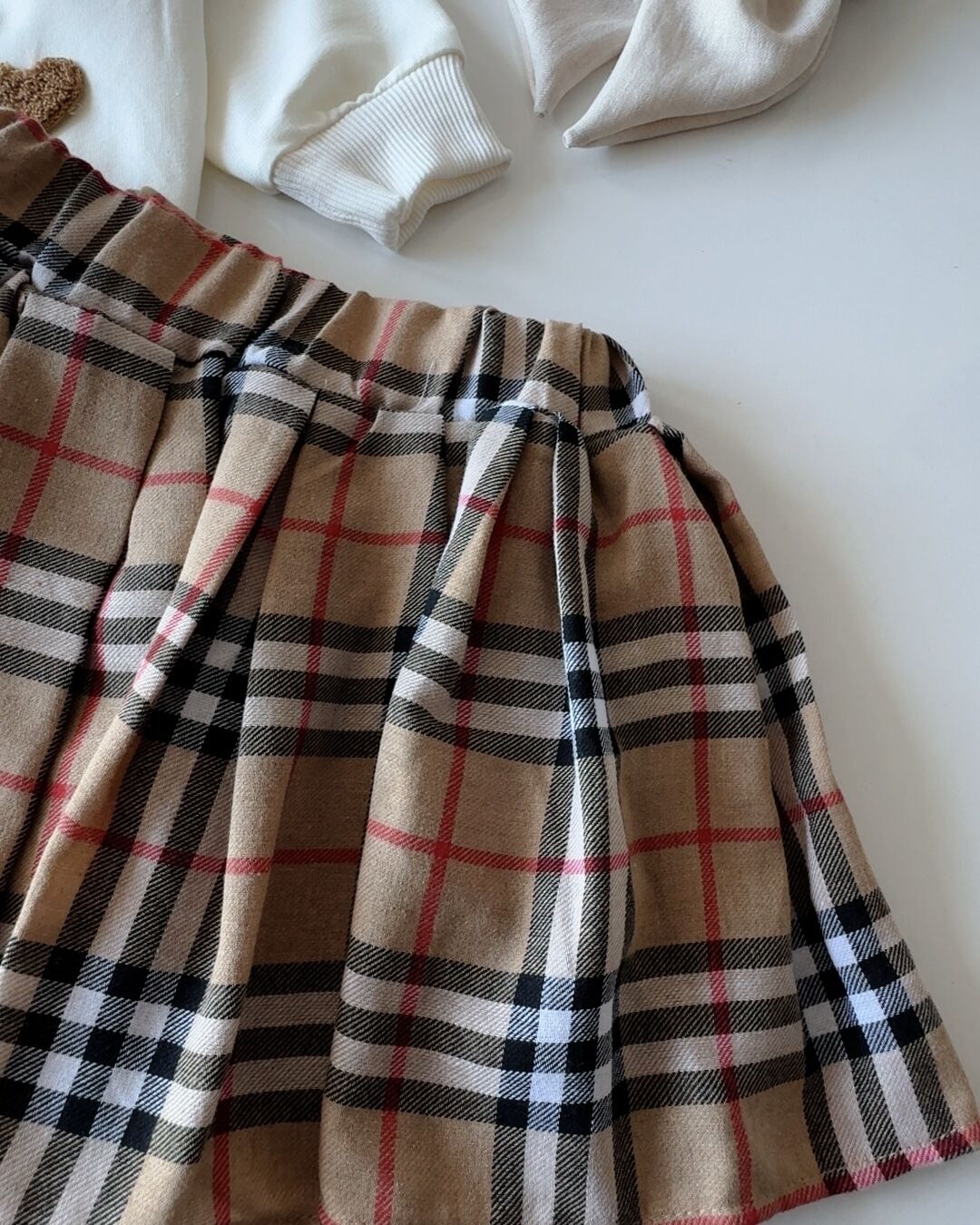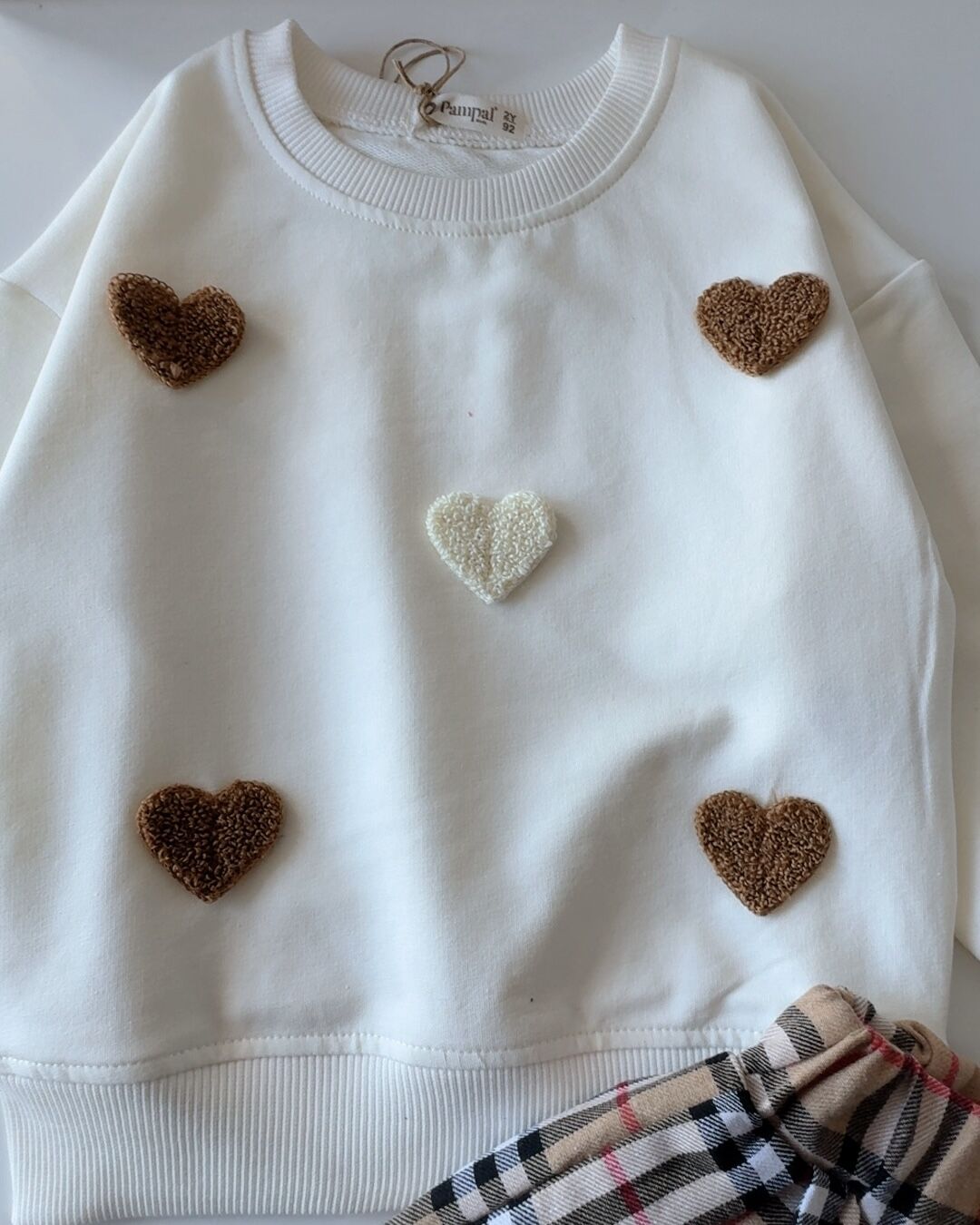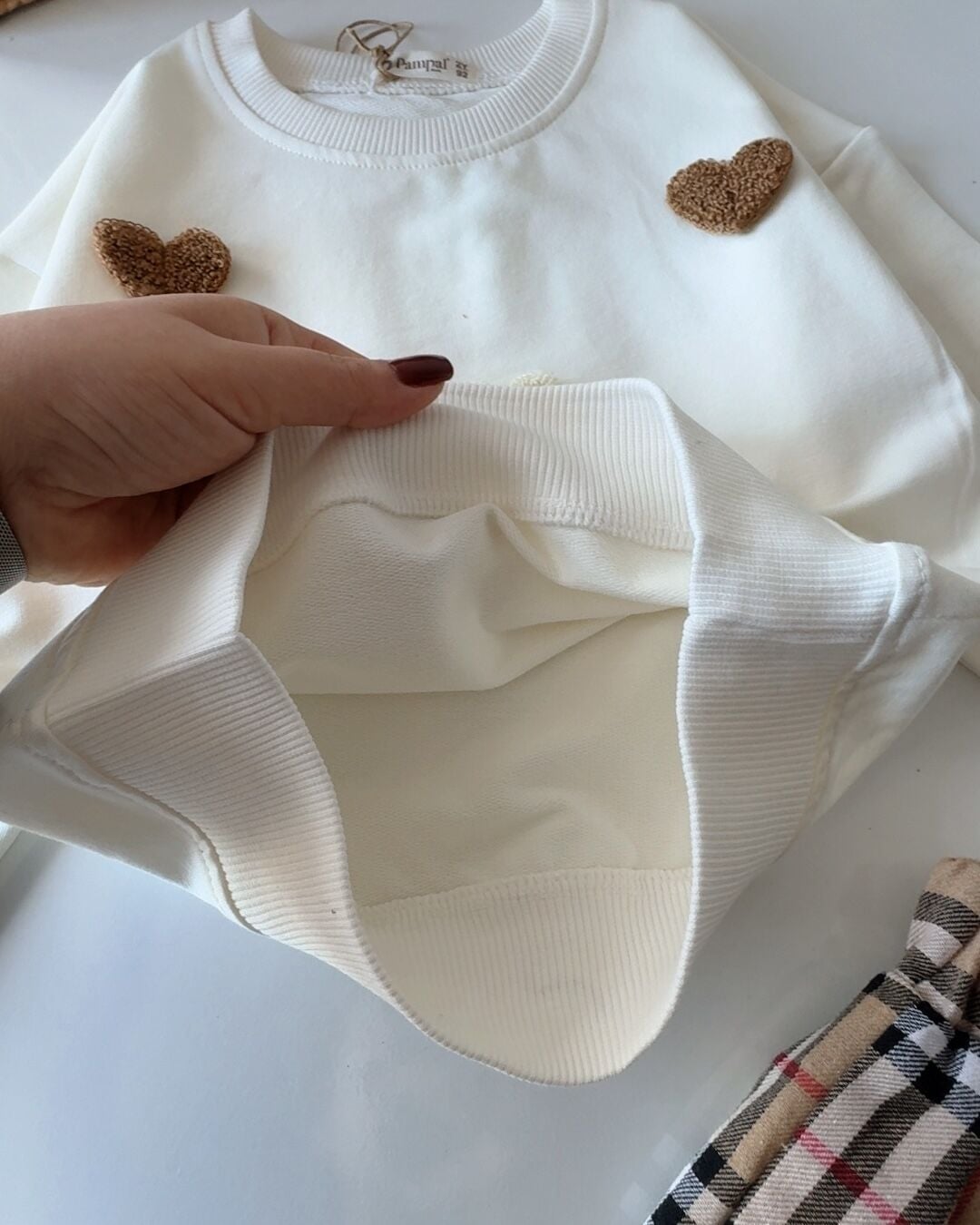 Kalp Punch Nakışlı Kareli Etekli Takım - Kahve