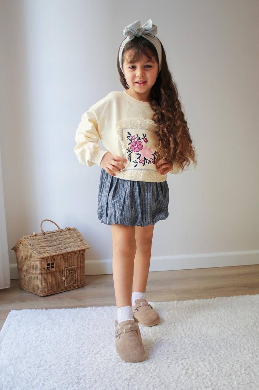 Ürün Bilgisi : 2 iplik kumaş Üstü Kalp Aplikelidir. Eteği Balon olup Simli Dokuma Kumşatır.