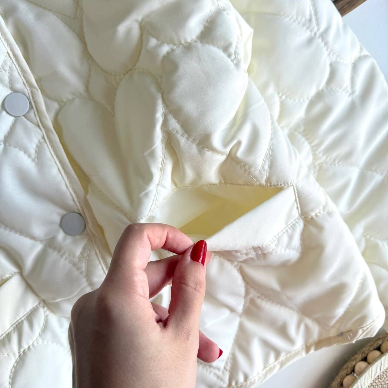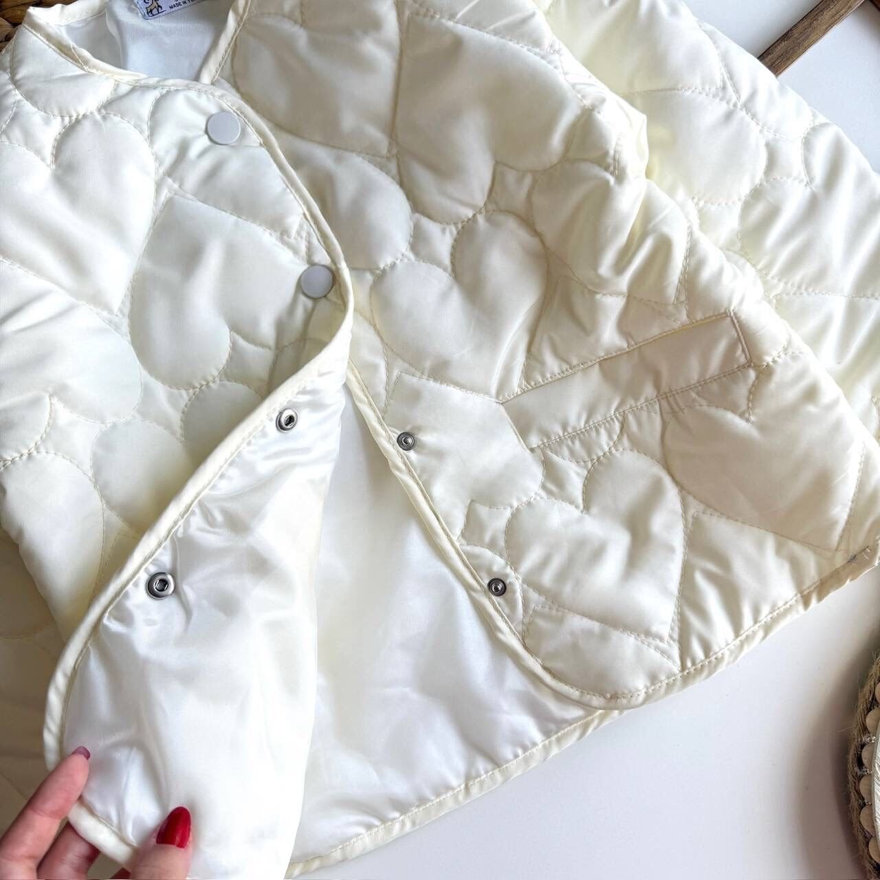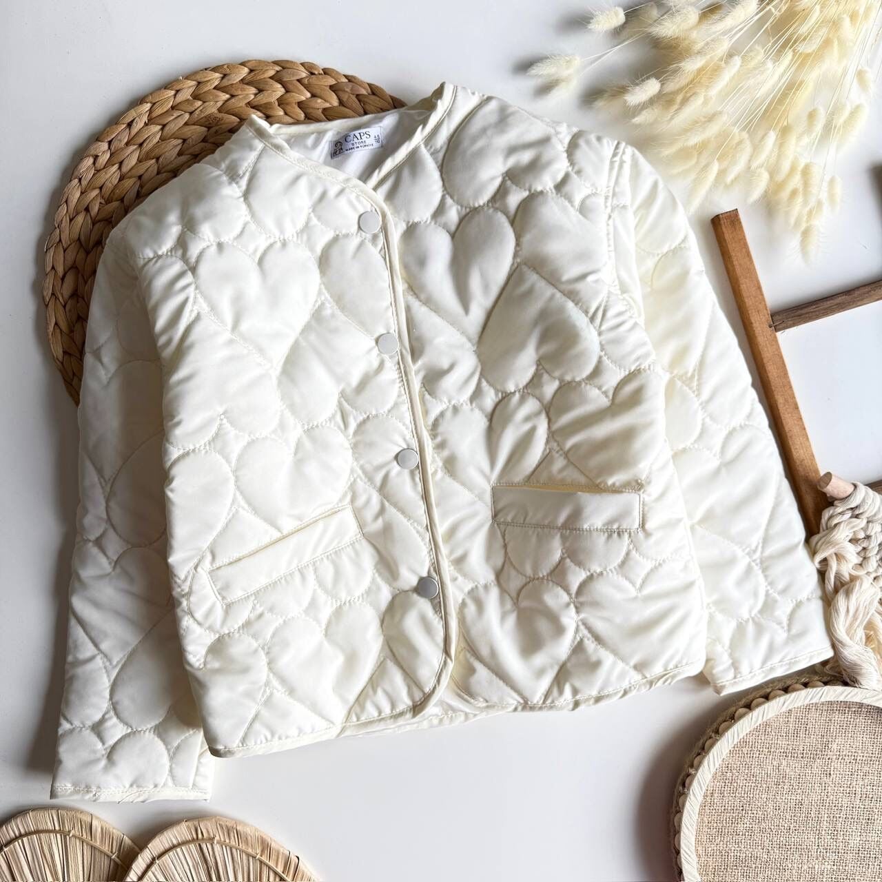 Kapitone Kalp Nakışlı Ceket - Krem