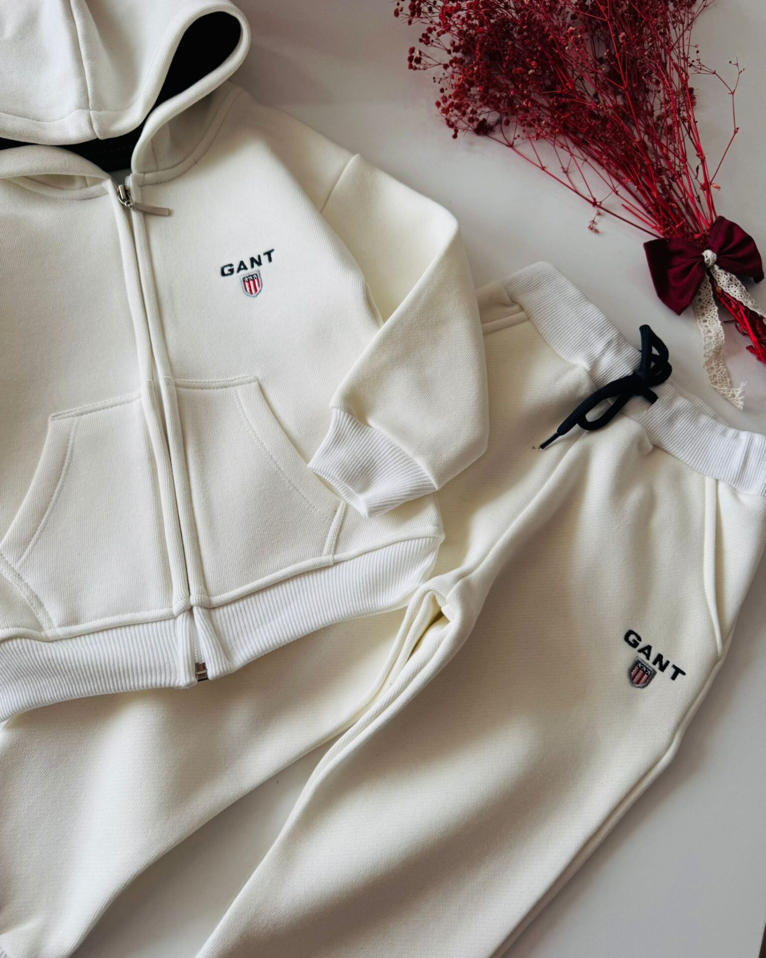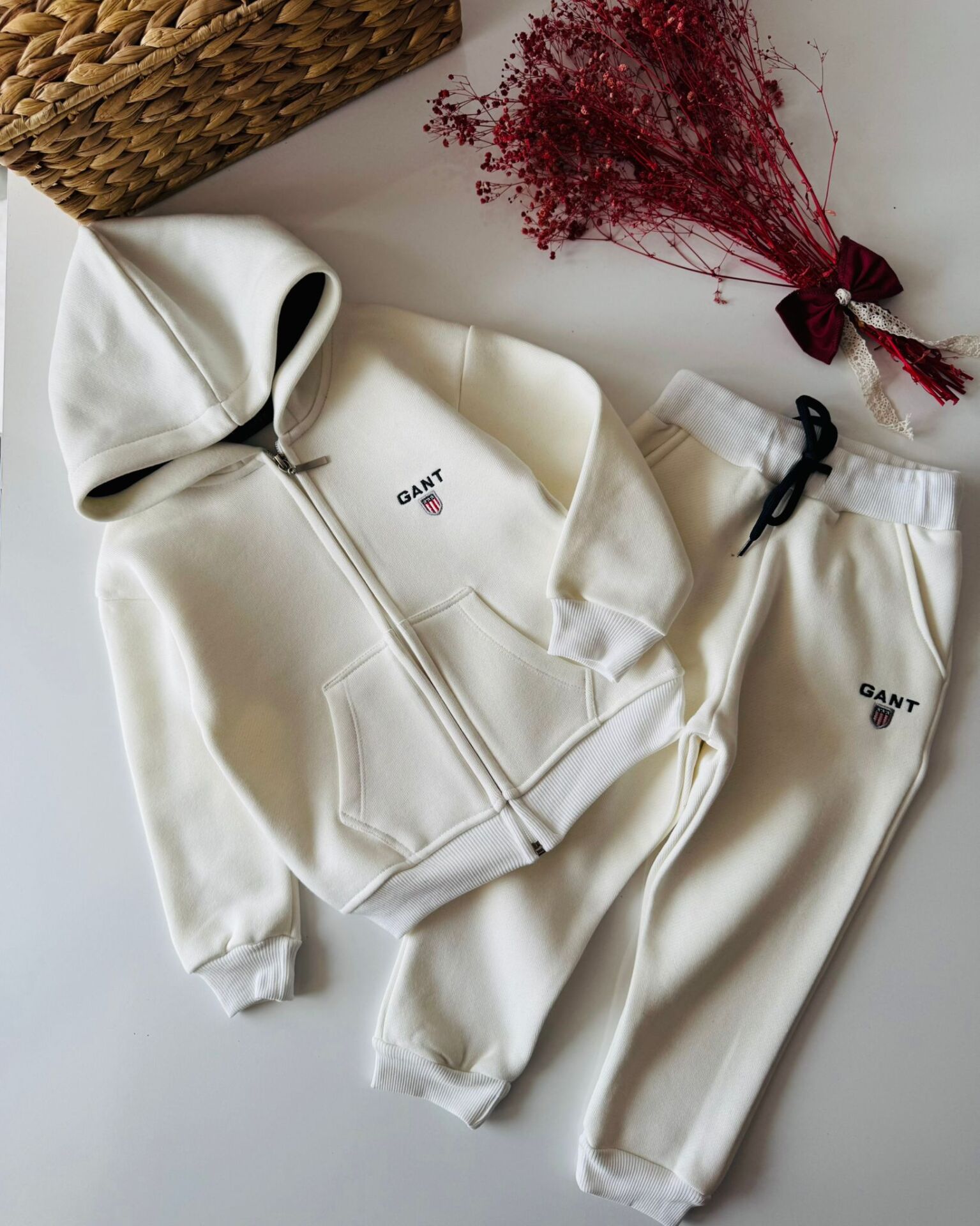 Kapüşonlu Fermuarlı Eşofman Takımı - Beyaz