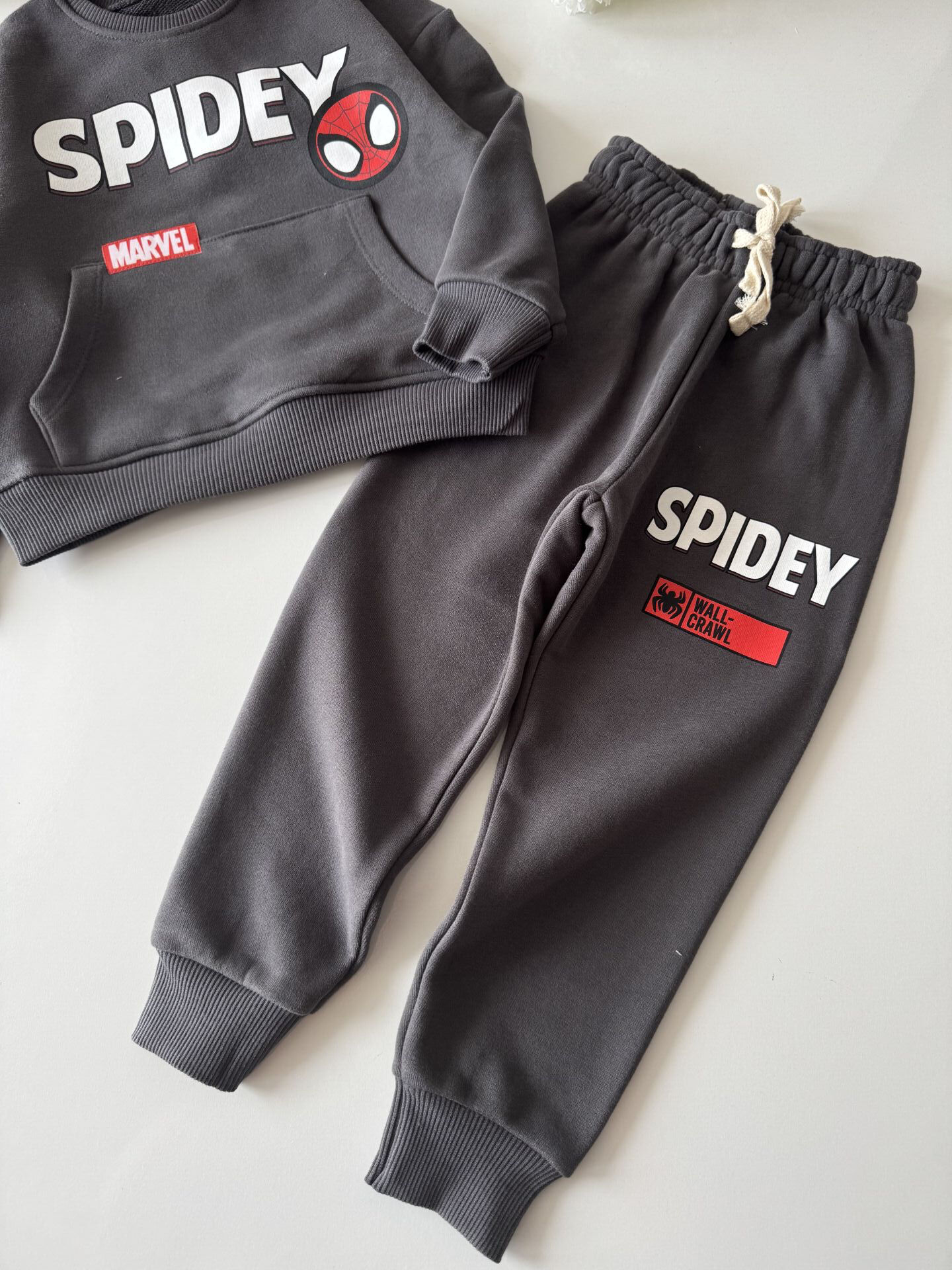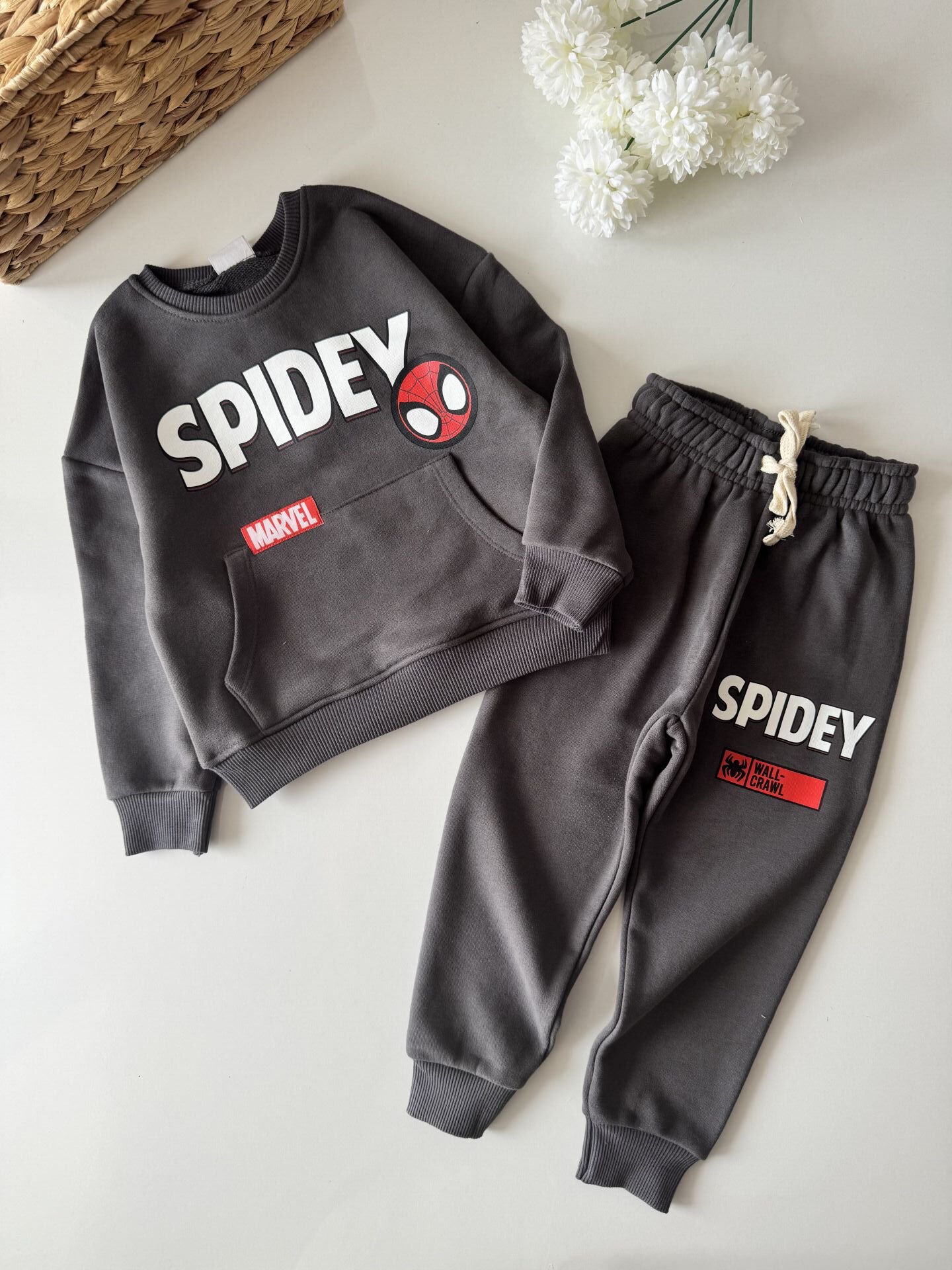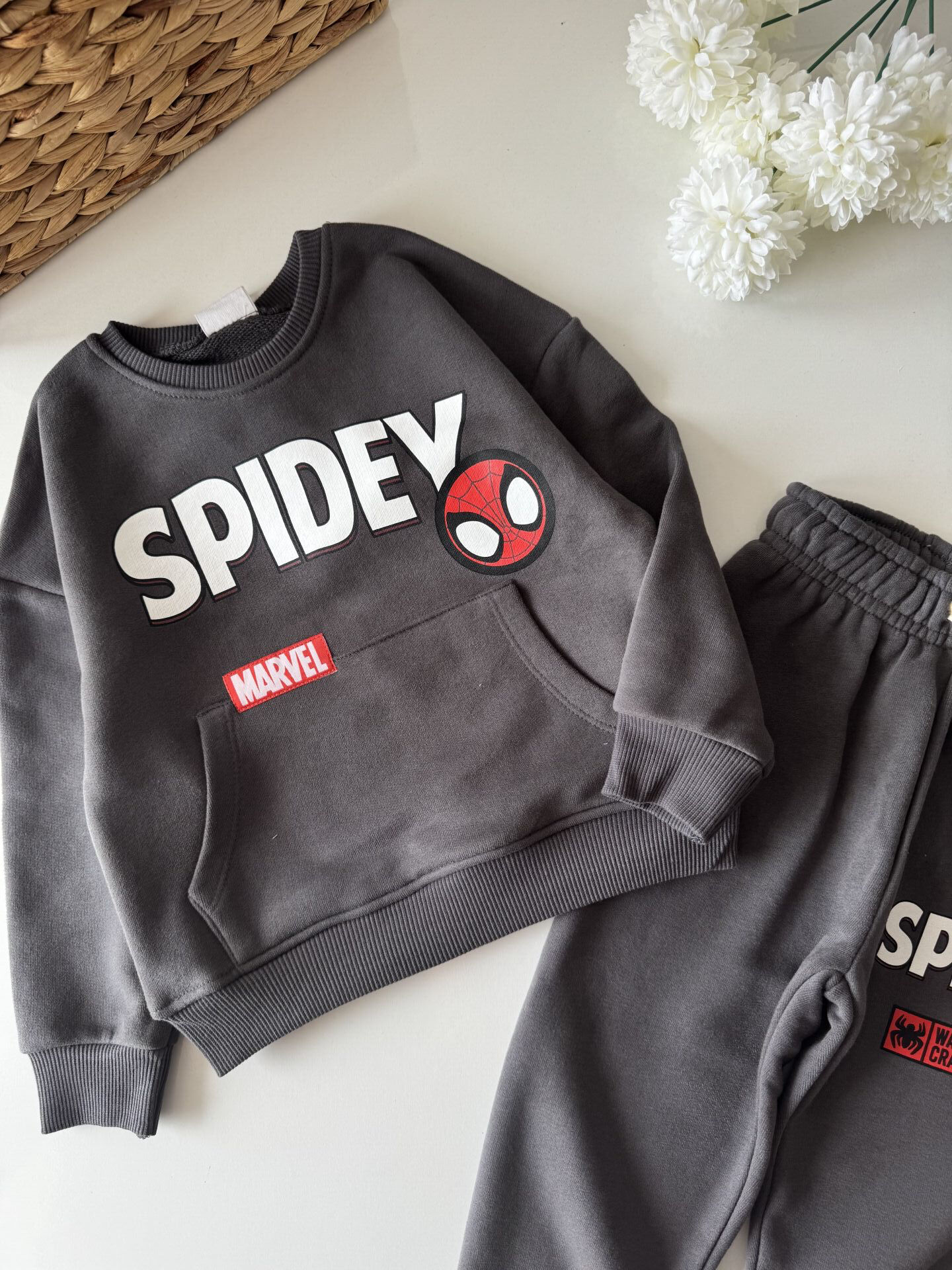 Karakter Baskılı Kanguru Cepli Eşofman Takımı - Füme