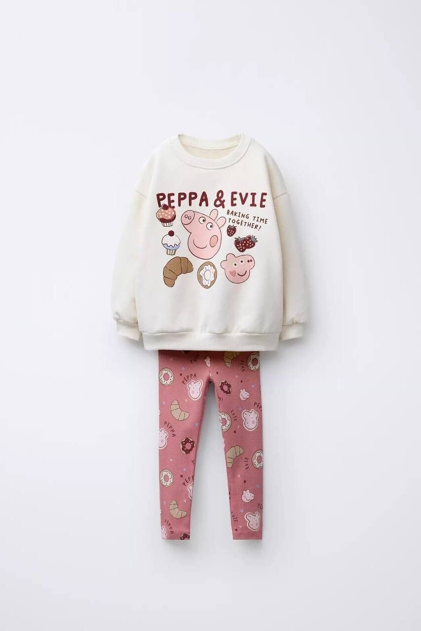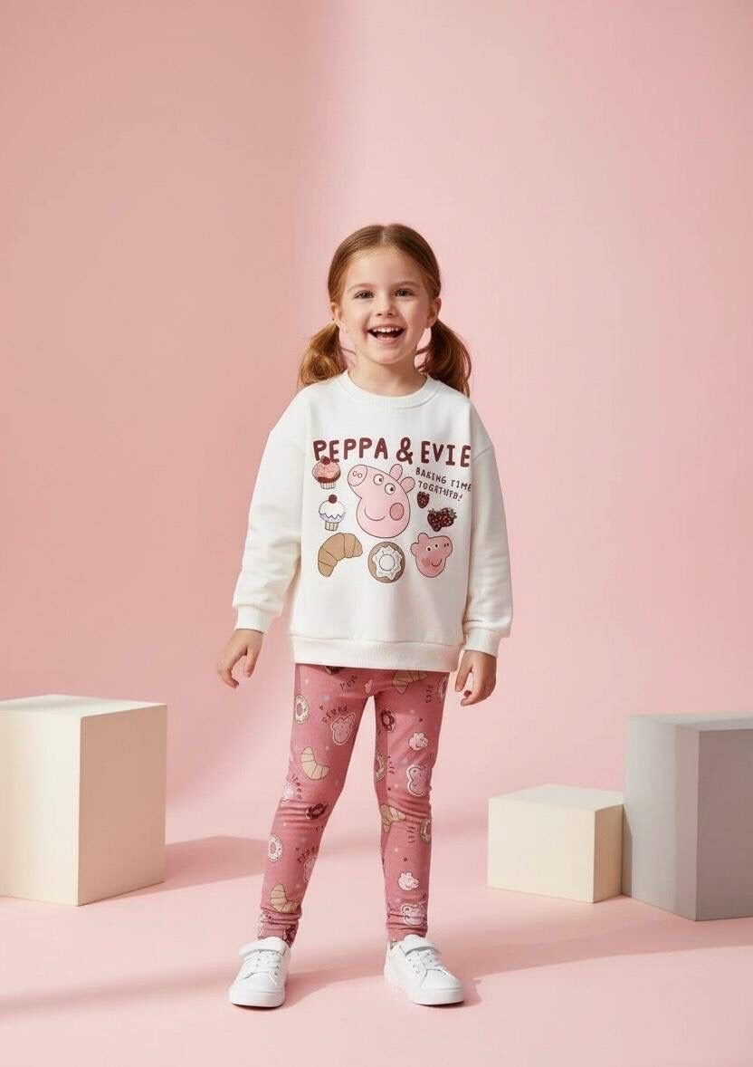 Karakter Baskılı Taytlı Takım - Gül Kurusu