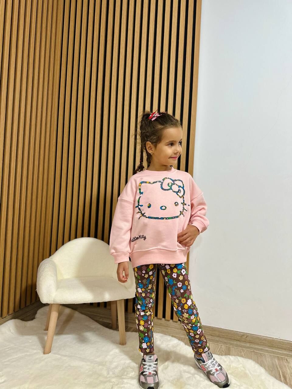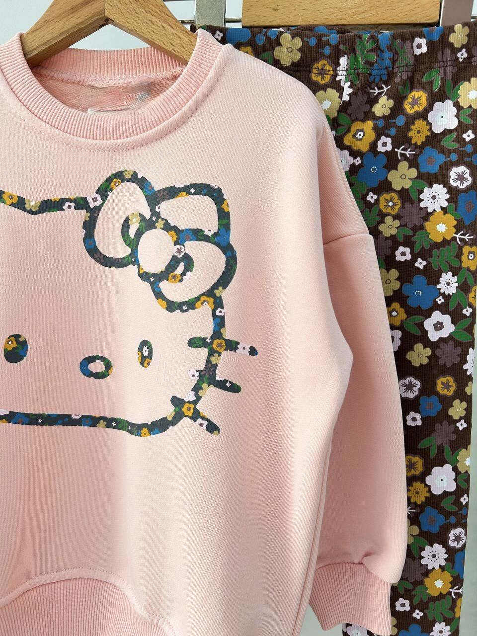 Karakter Desenli Çiçekli Taytlı Takım - Pembe