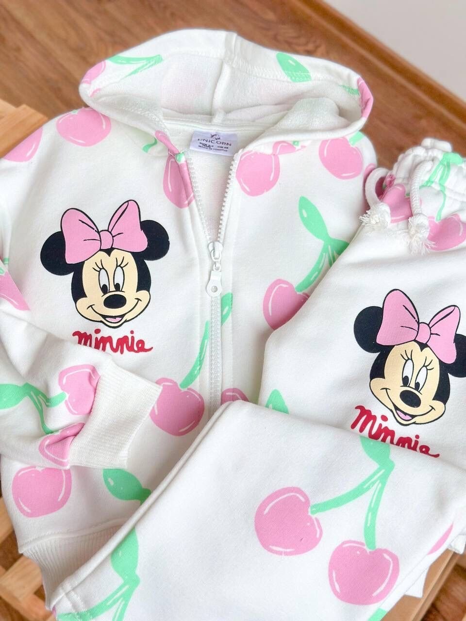 Karakterli Fermuarlı Eşofman Takımı - Beyaz Pembe
