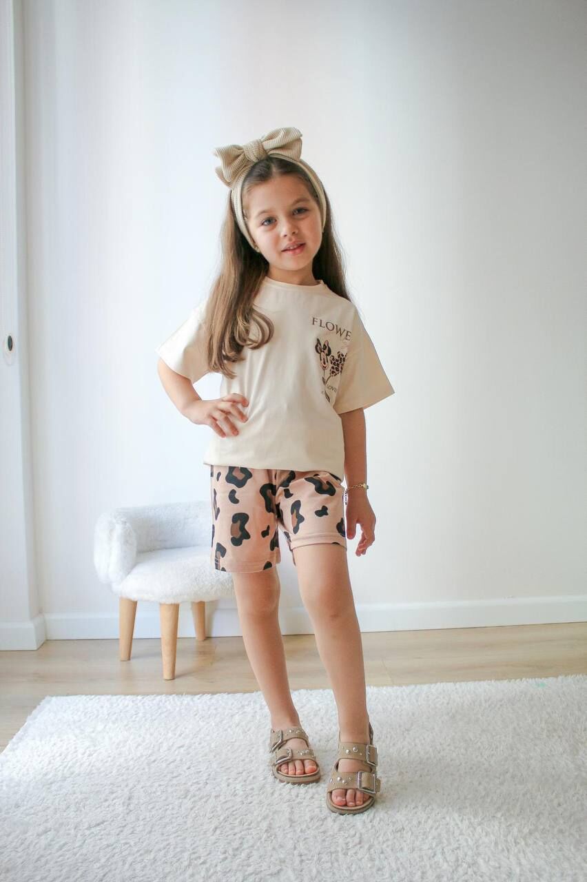 Karakterli Leoparlı Deniz Takım - Krem