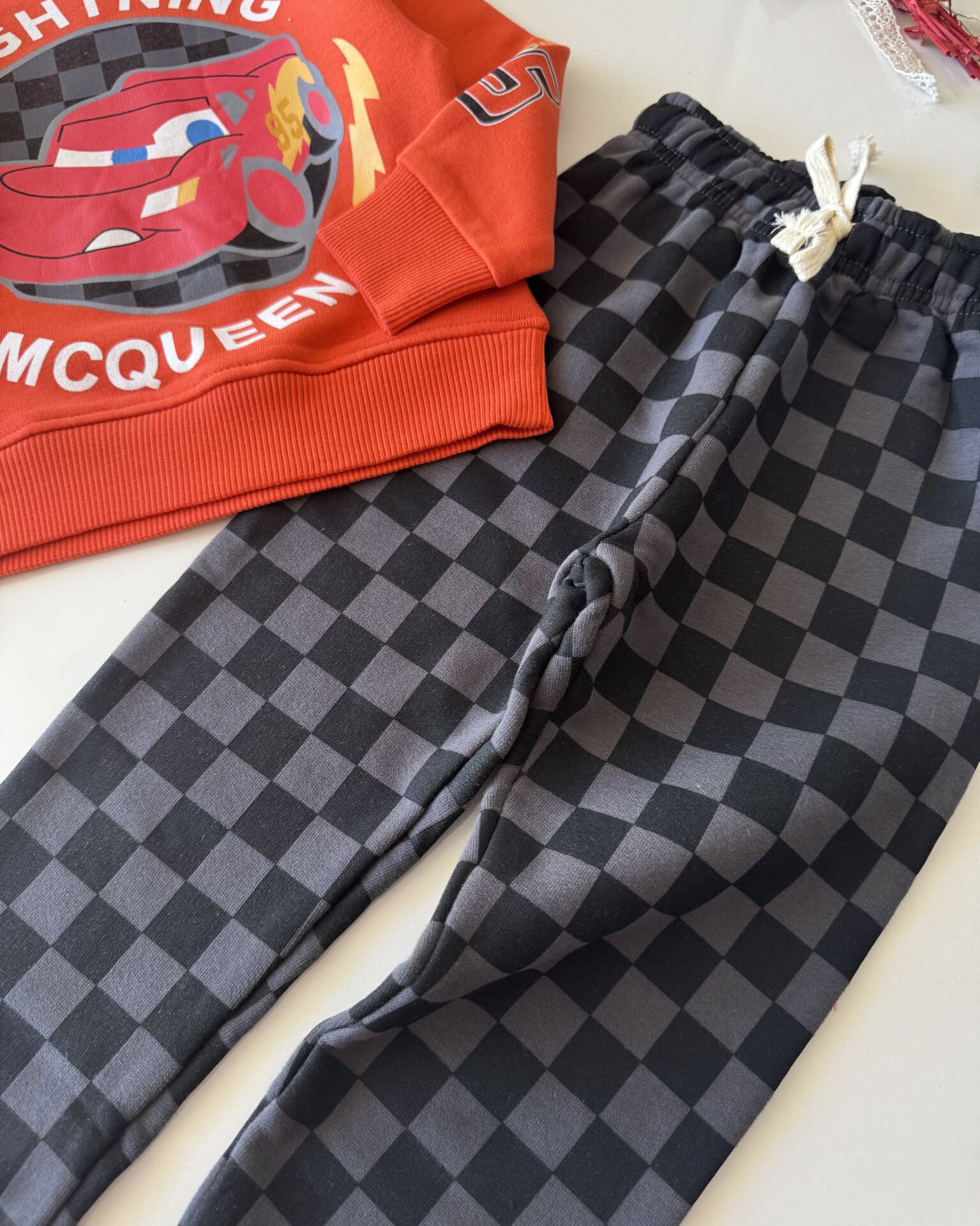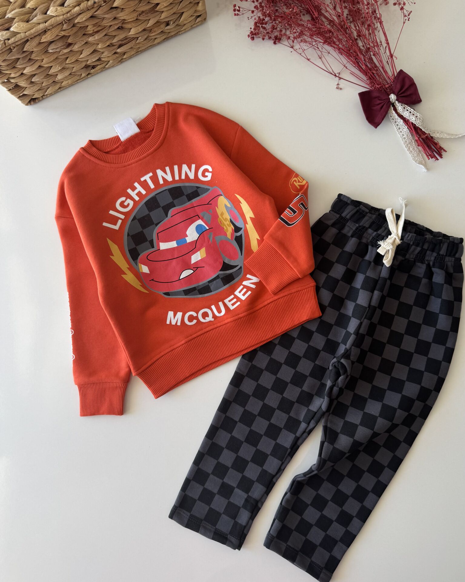 Kareli Pantolonlu Karakterli Deniz Takım - Kırmızı