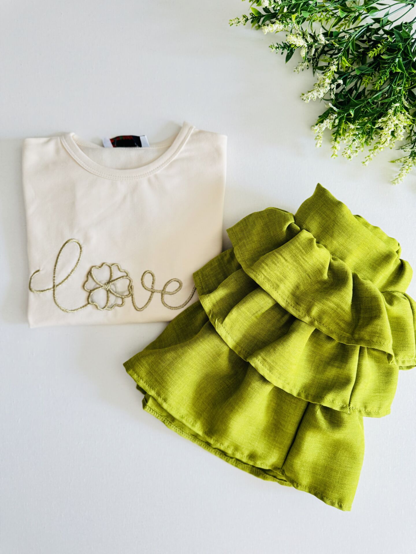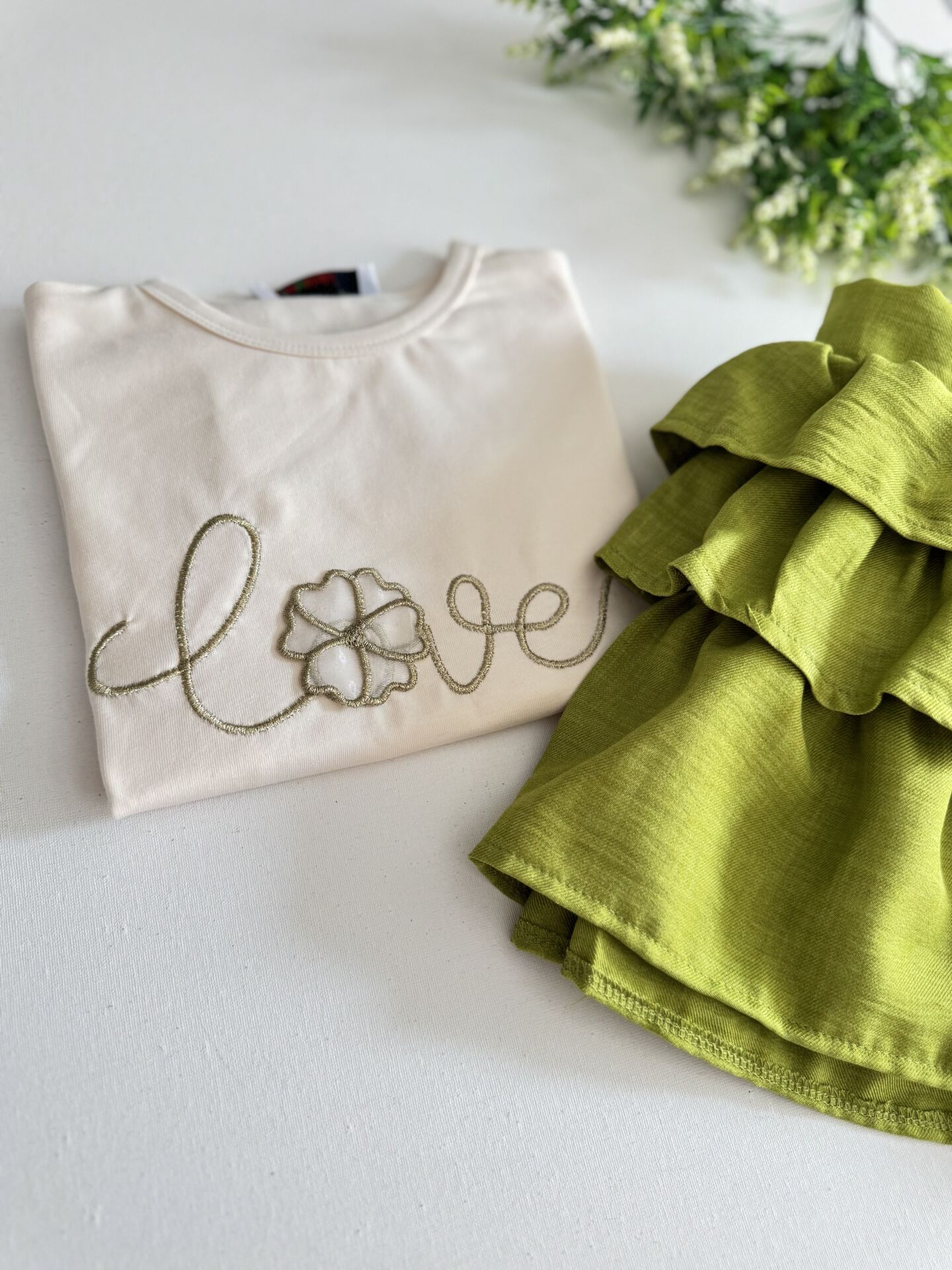 Ürün Bilgisi : Pamuklu penye kumaş üzrine taşlı love yazısı.. Alt tam prenseslere göre kat kat ..