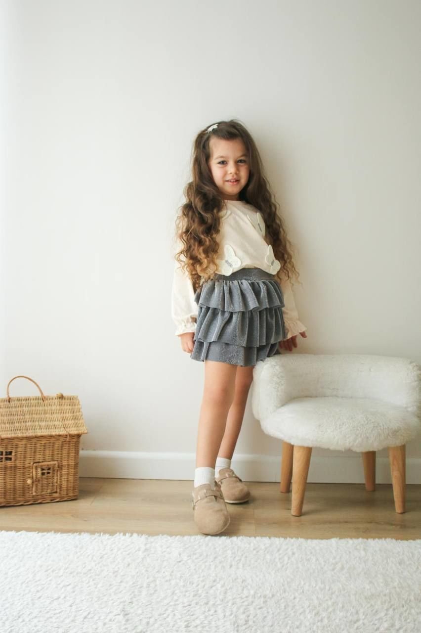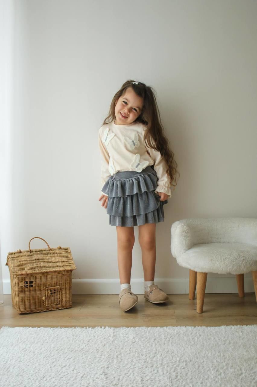 Ürün Bilgisi : Pamuklu likralı esnek penye üzerine kelebek aplikeli etekli takım