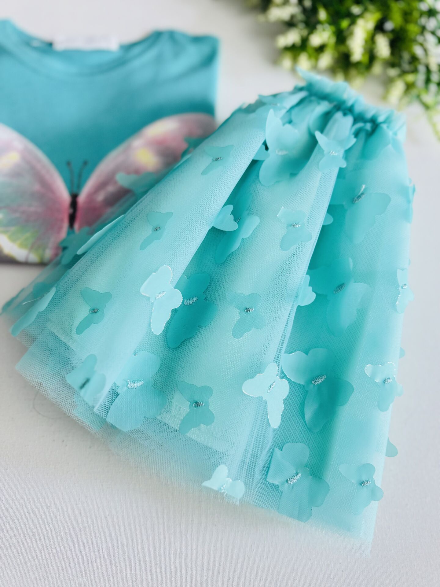 Kelebek Aplikeli Etekli Vanessa Takım - Mavi