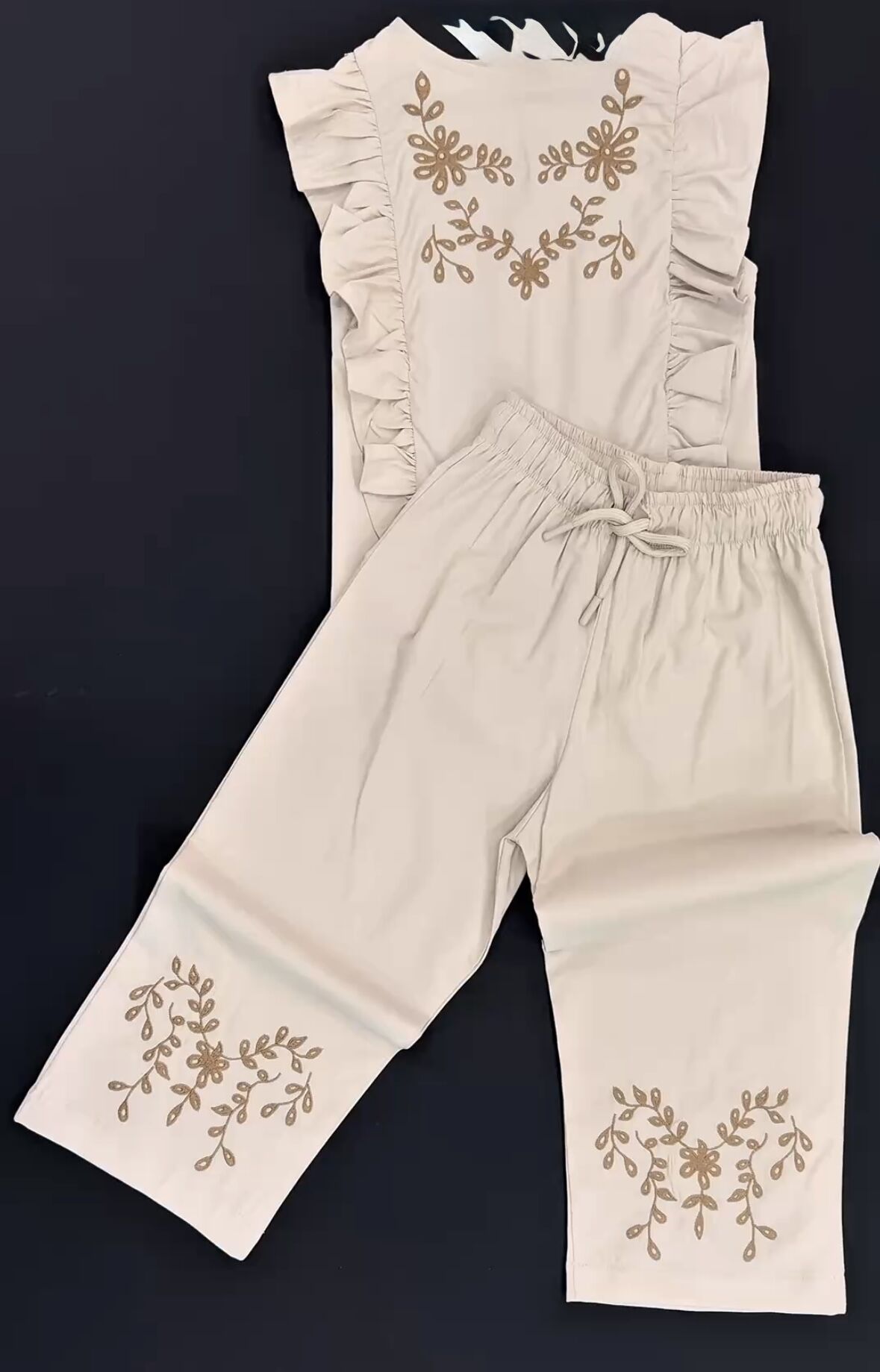 Ürün Bilgisi : Keten Takım üzerine nakışlı nehir tam boy pantolonlu takım