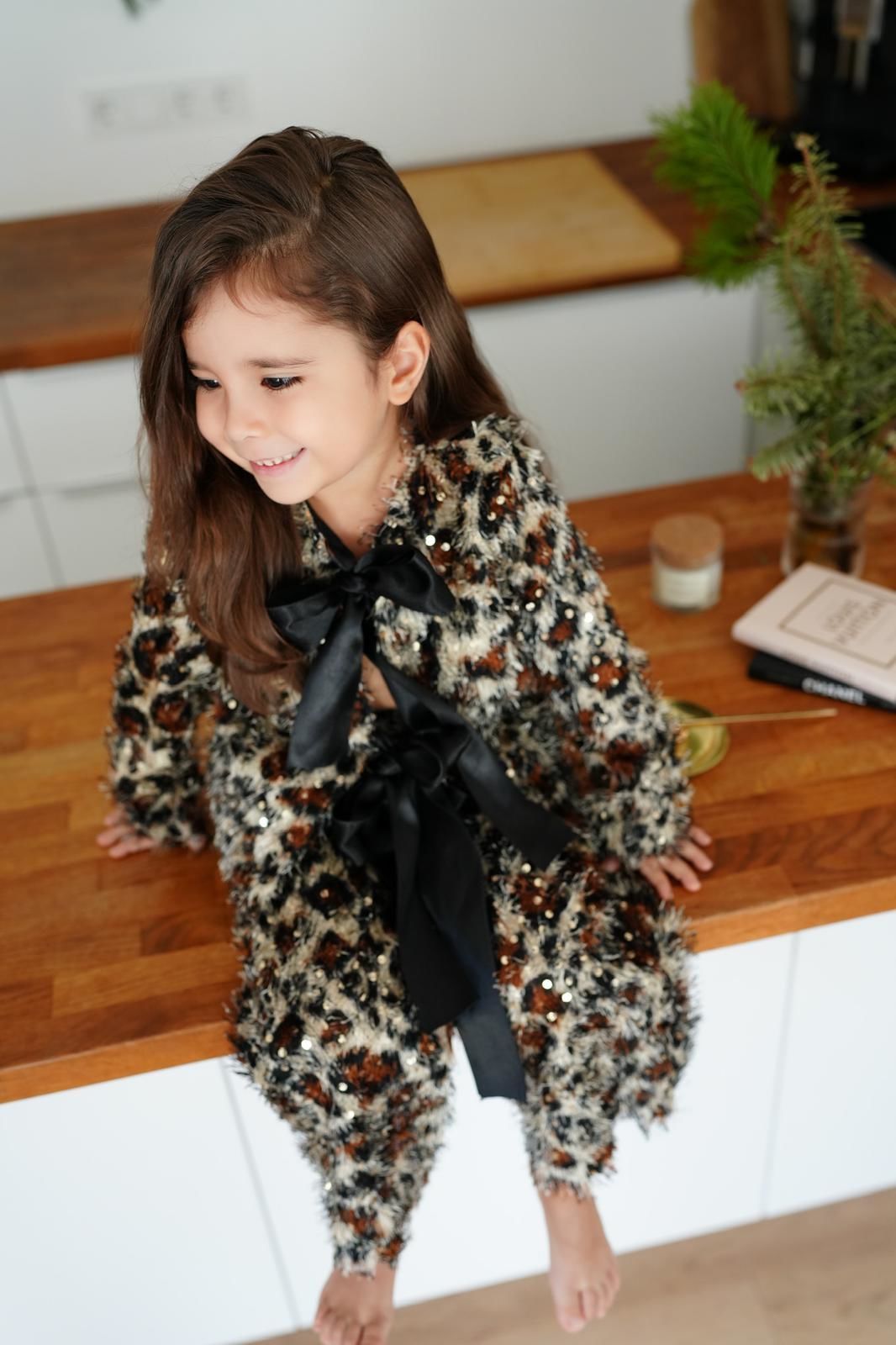 Kırçıllı Leoapar Desenli Pul Detaylı Pantolon - Kahve