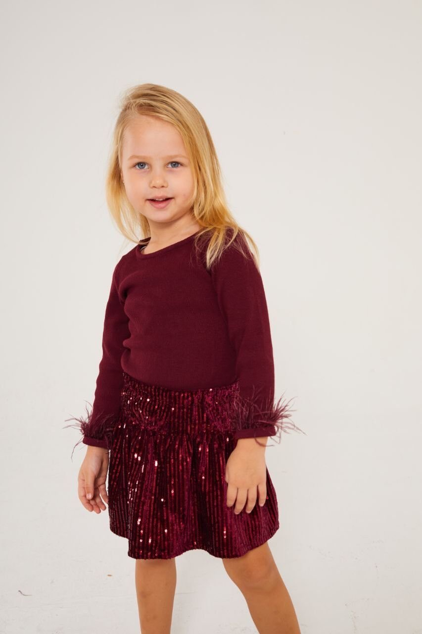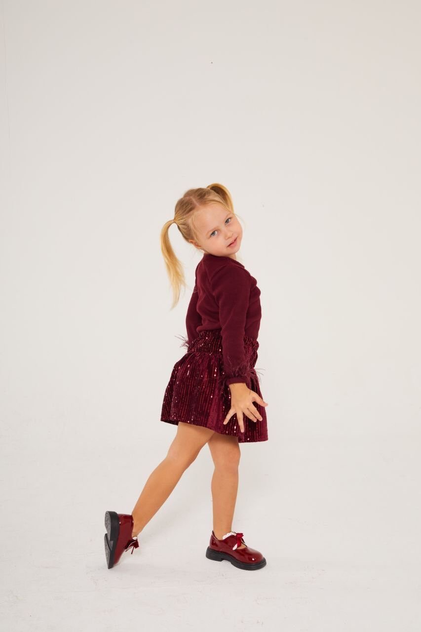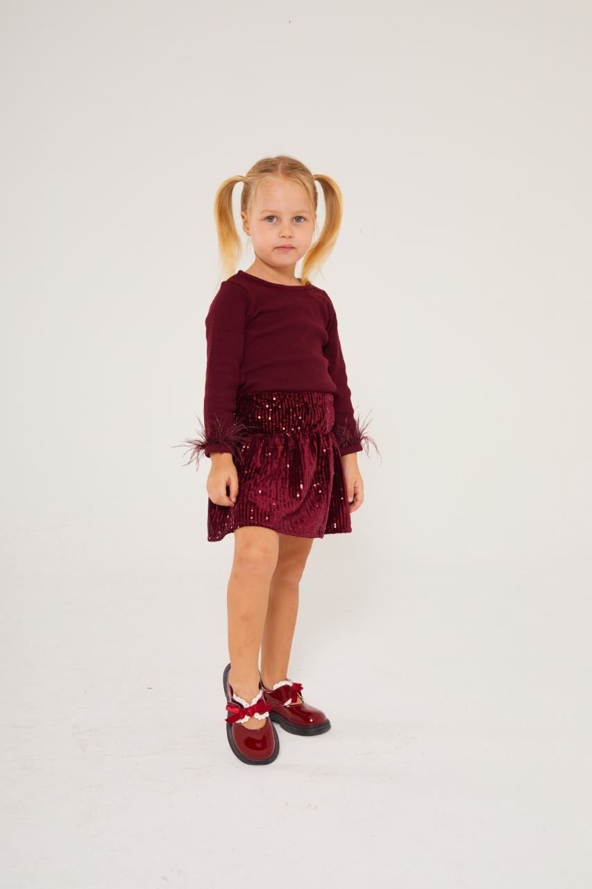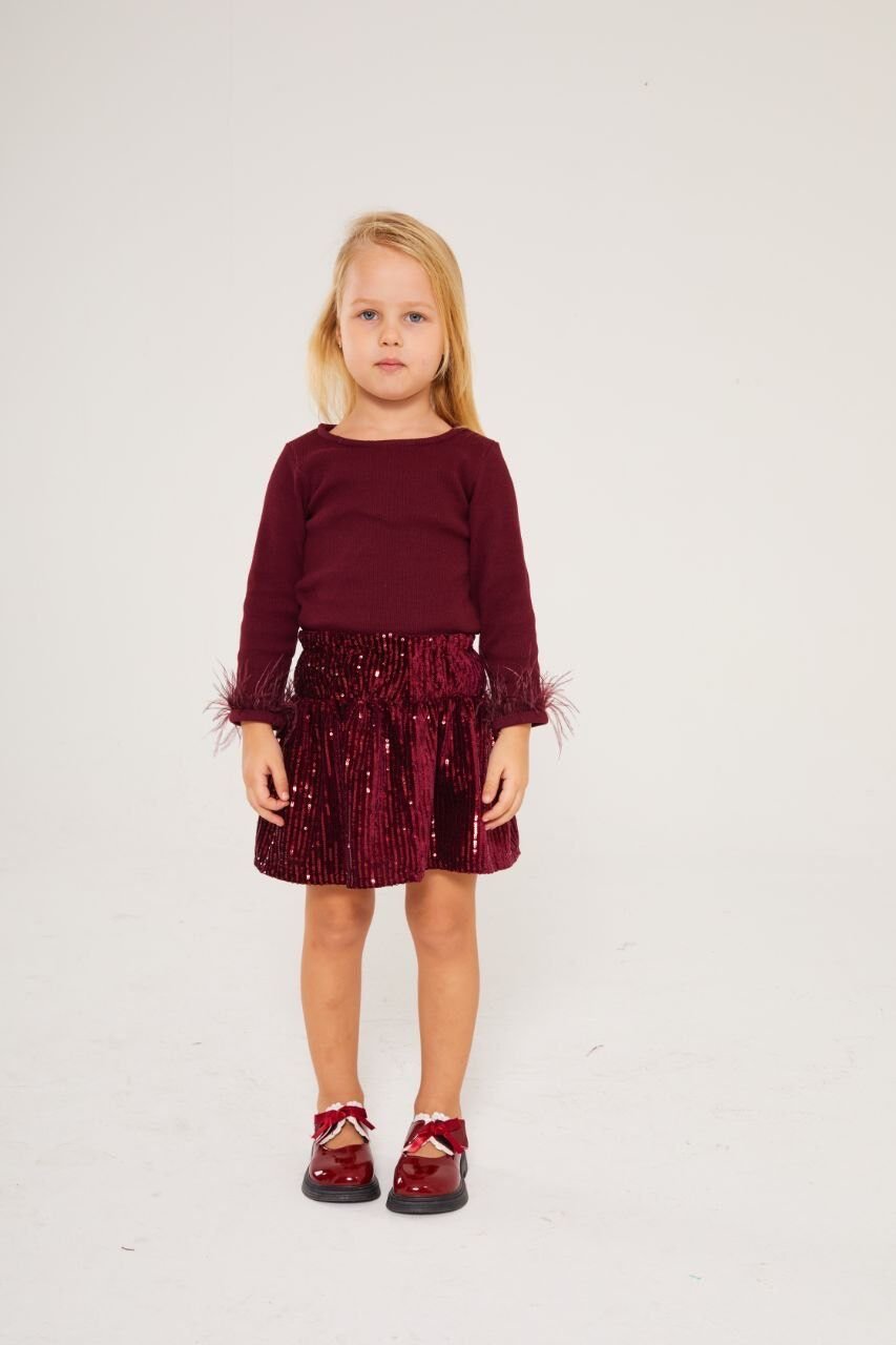 Kol Ucu Tüylü Pul Payet Etekli 2'li Takım - Bordo