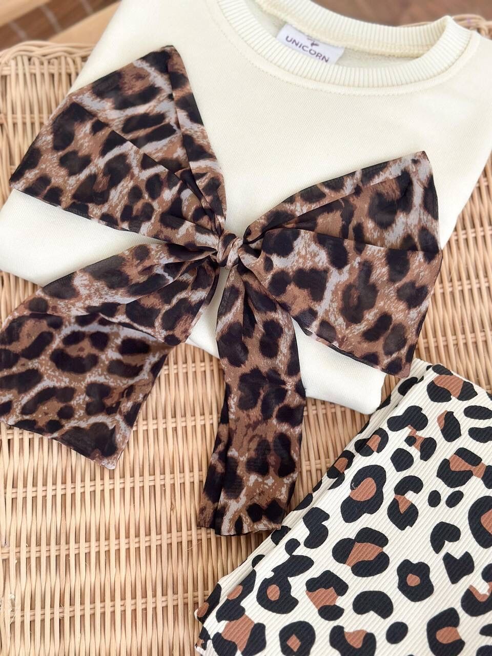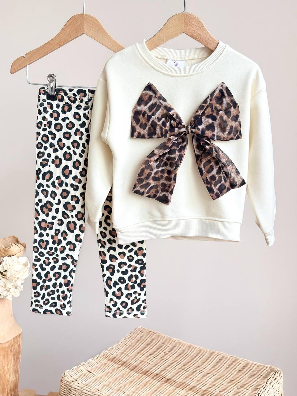 Leopar Desenli Fiyonk Aplikeli Taytlı Takım - Kahve Krem