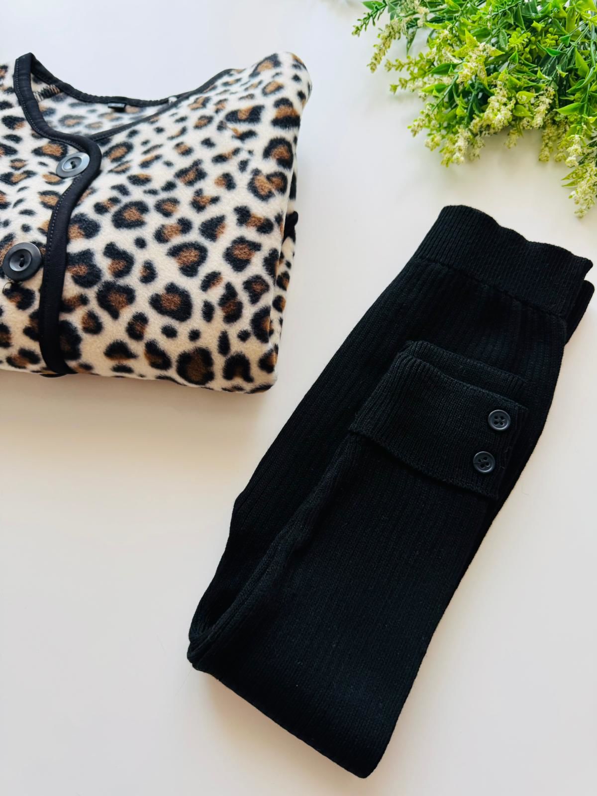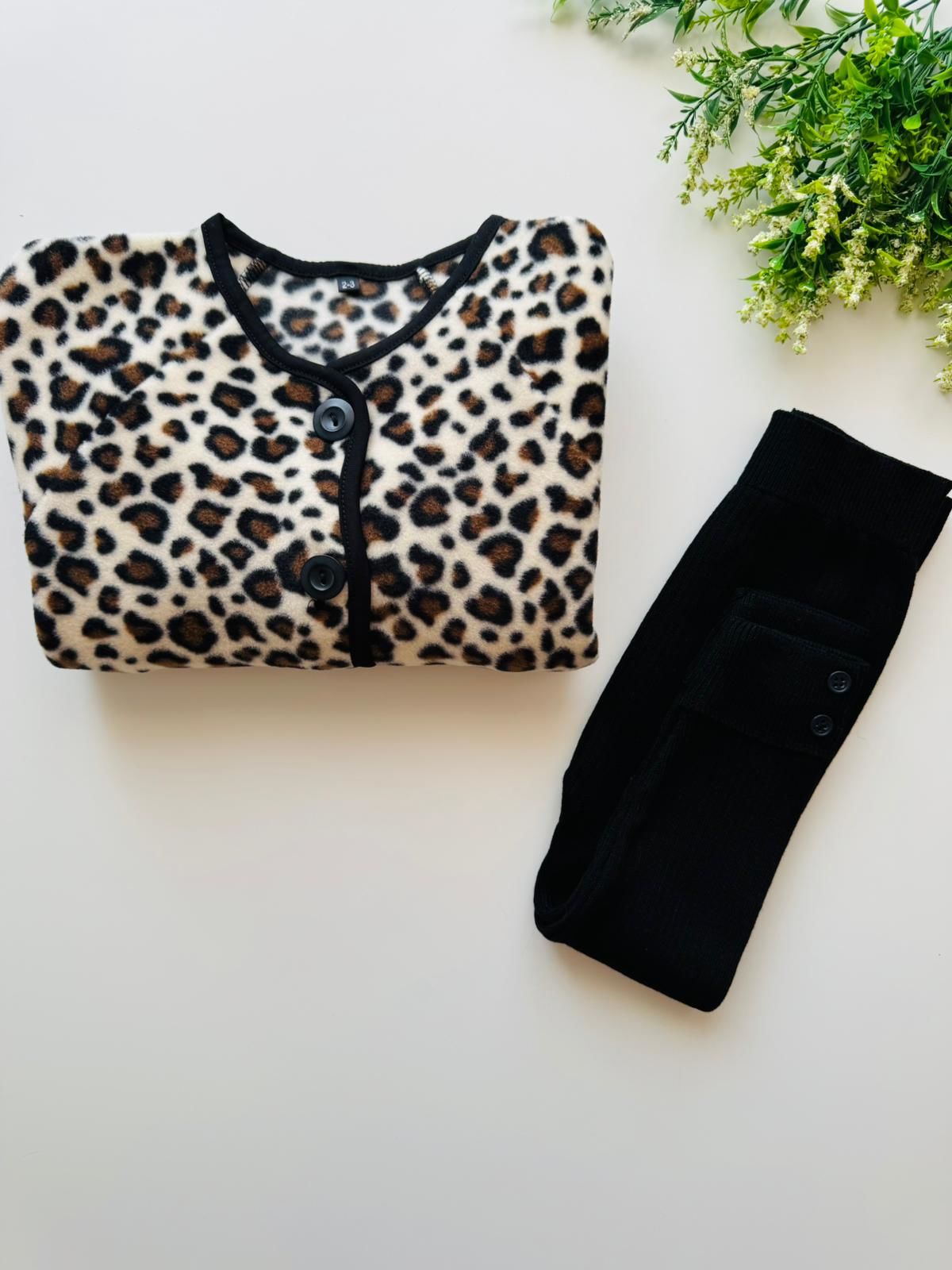 Ürün Bilgisi : Üst polar leopar ceket alt triko tayt