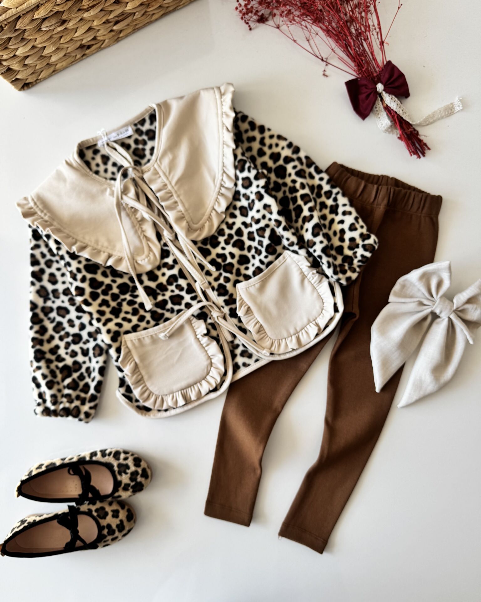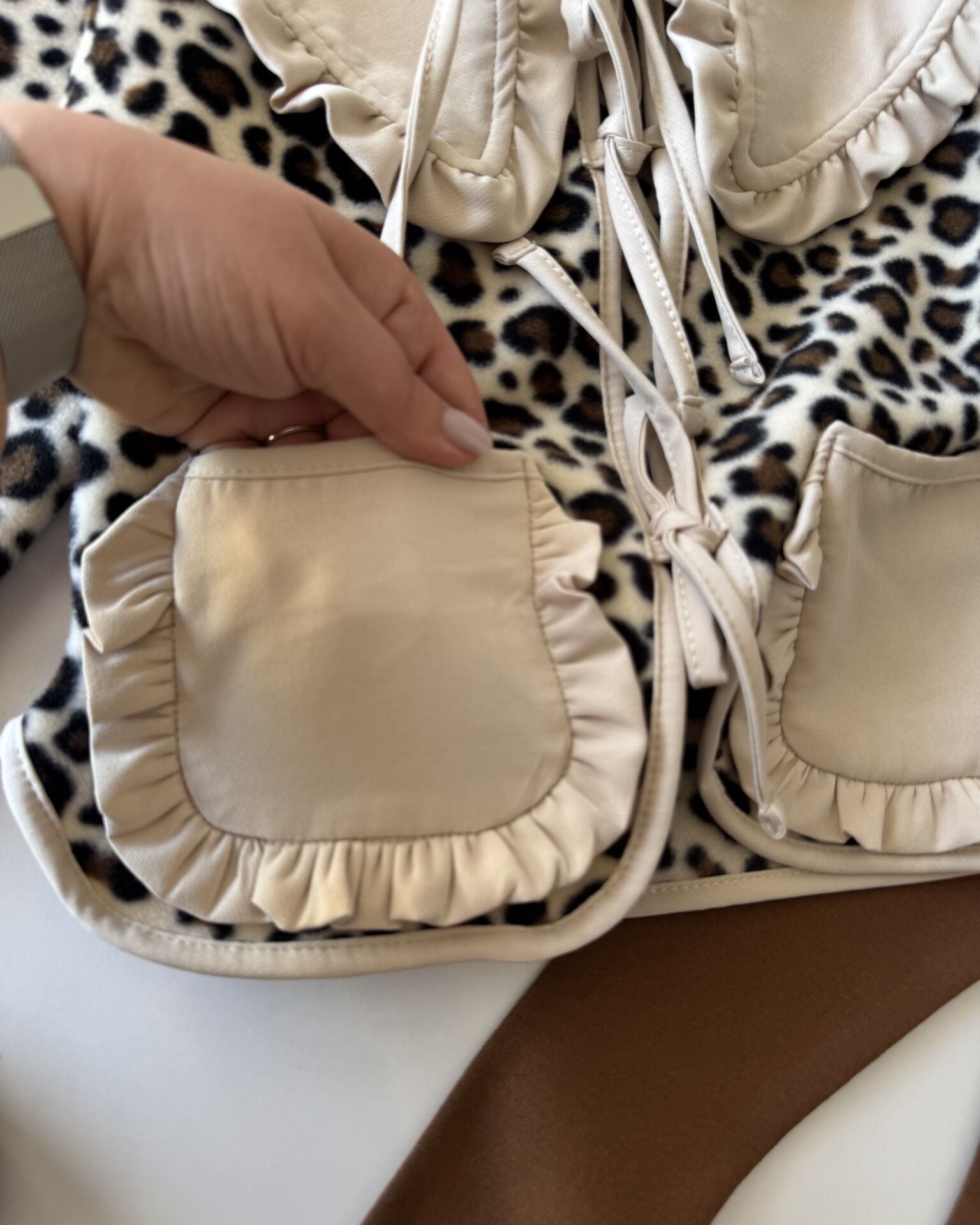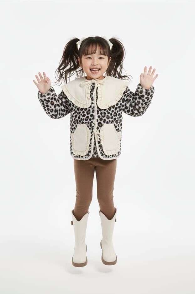 Leopar Desenli Yakalı Polar Cekeli Tayt Takım - Kahve