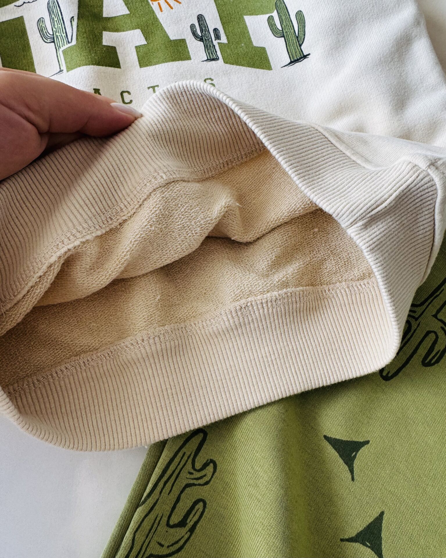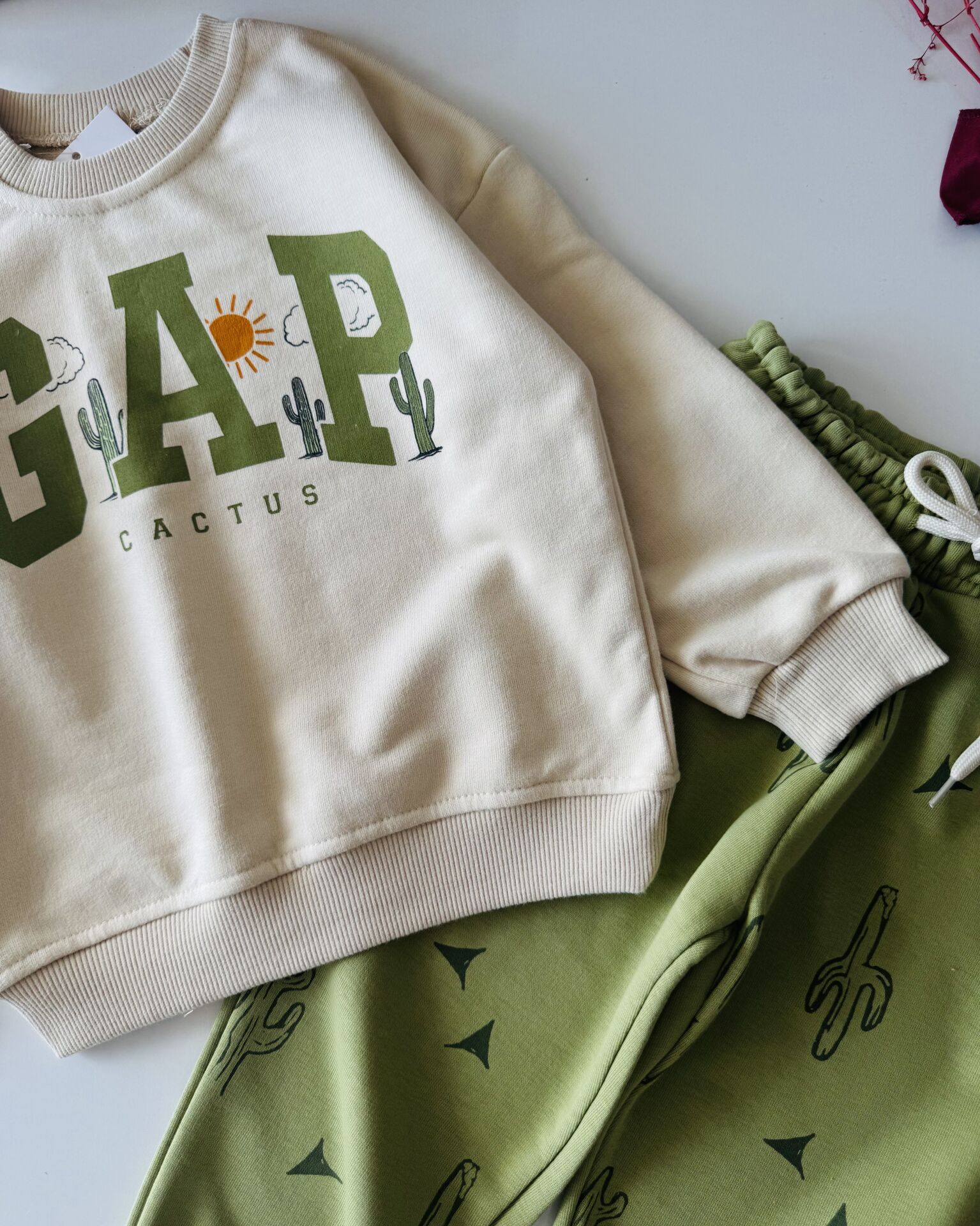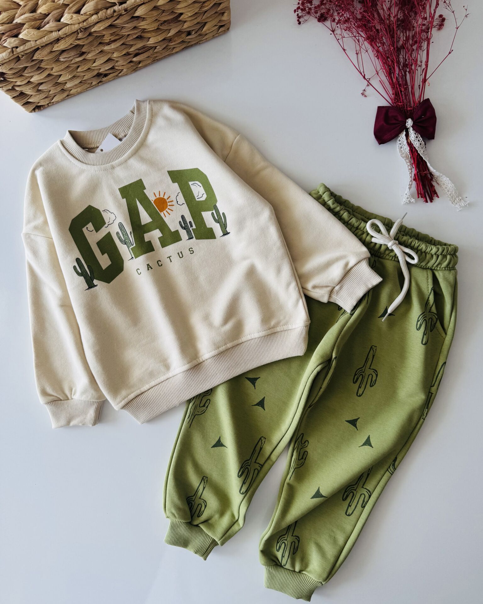 Logolu Kaktüs Baskılı Takım - Yeşil