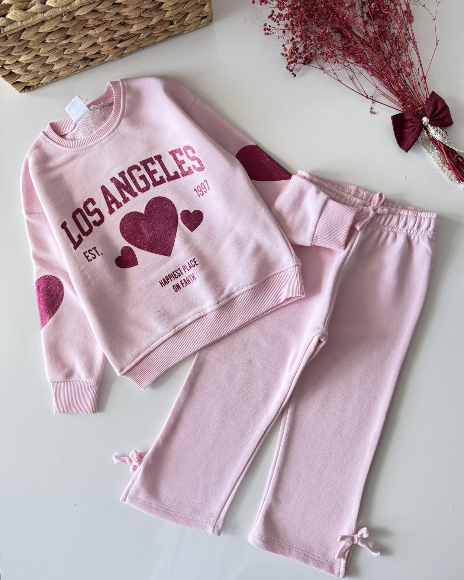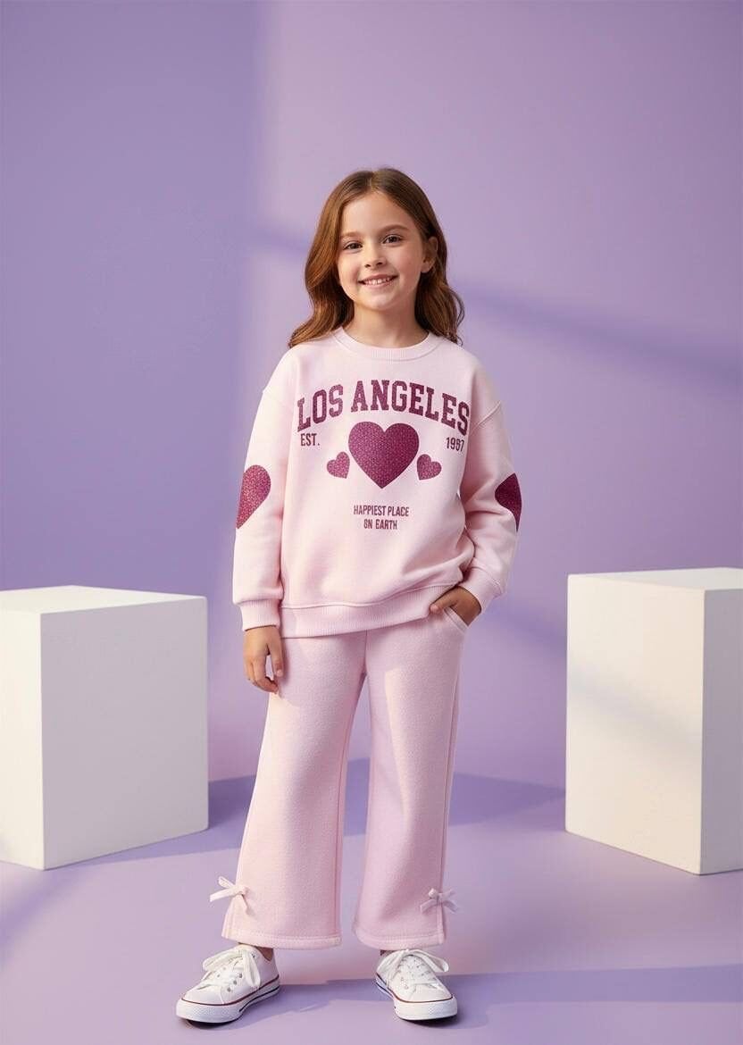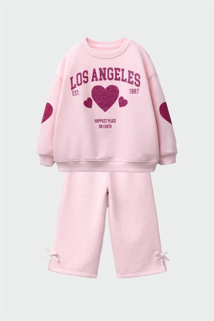 Los Angeles Baskılı Bol Paça Takım - Pembe