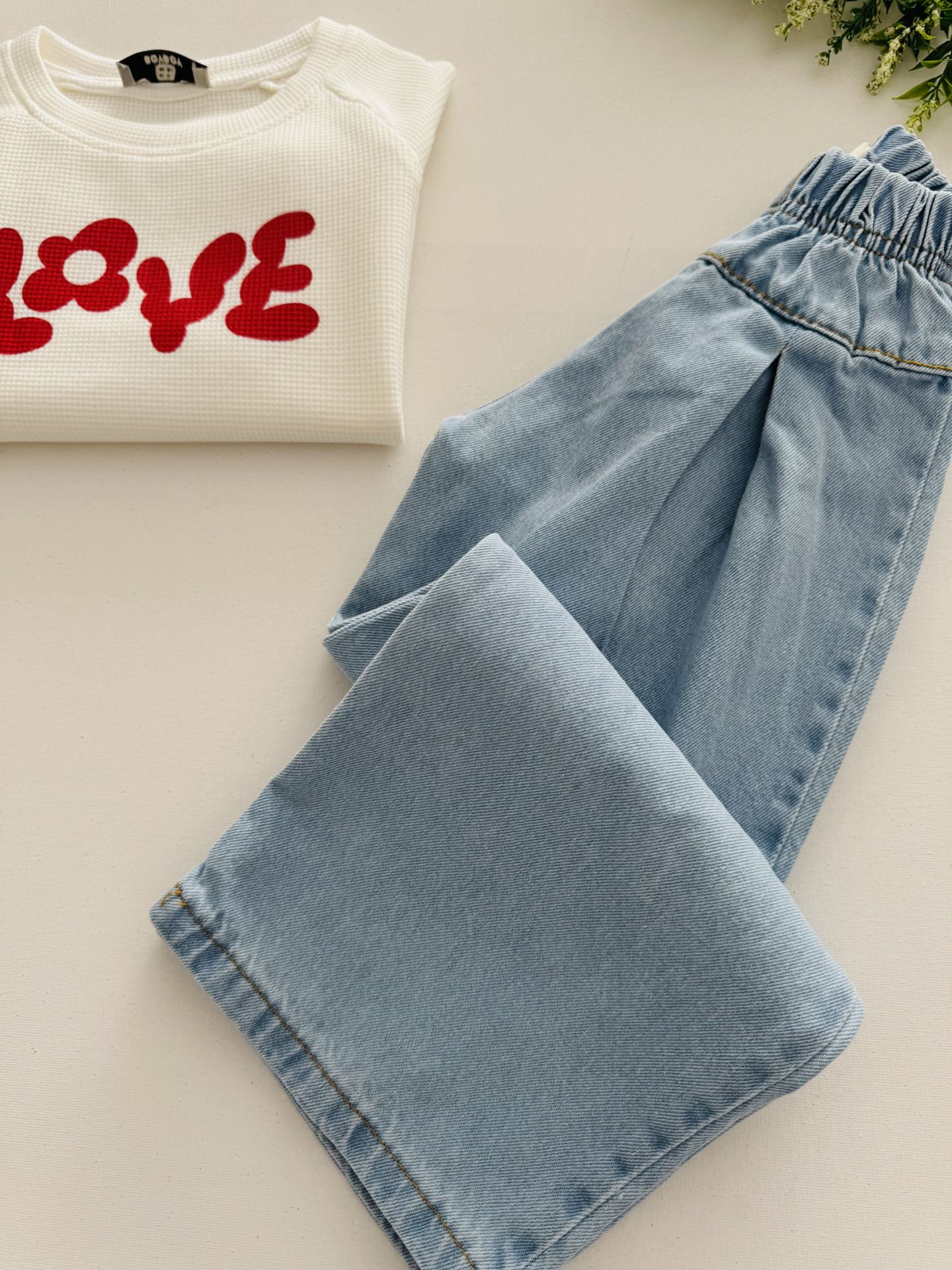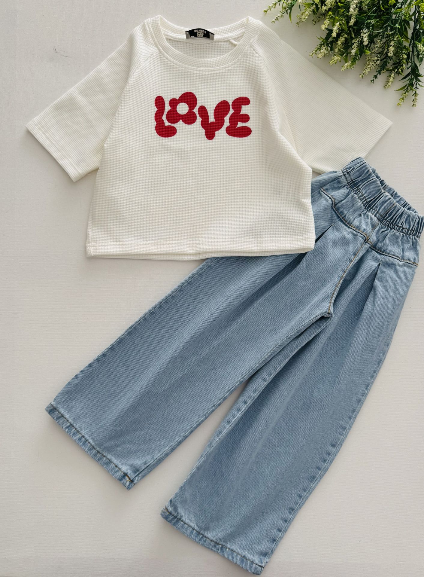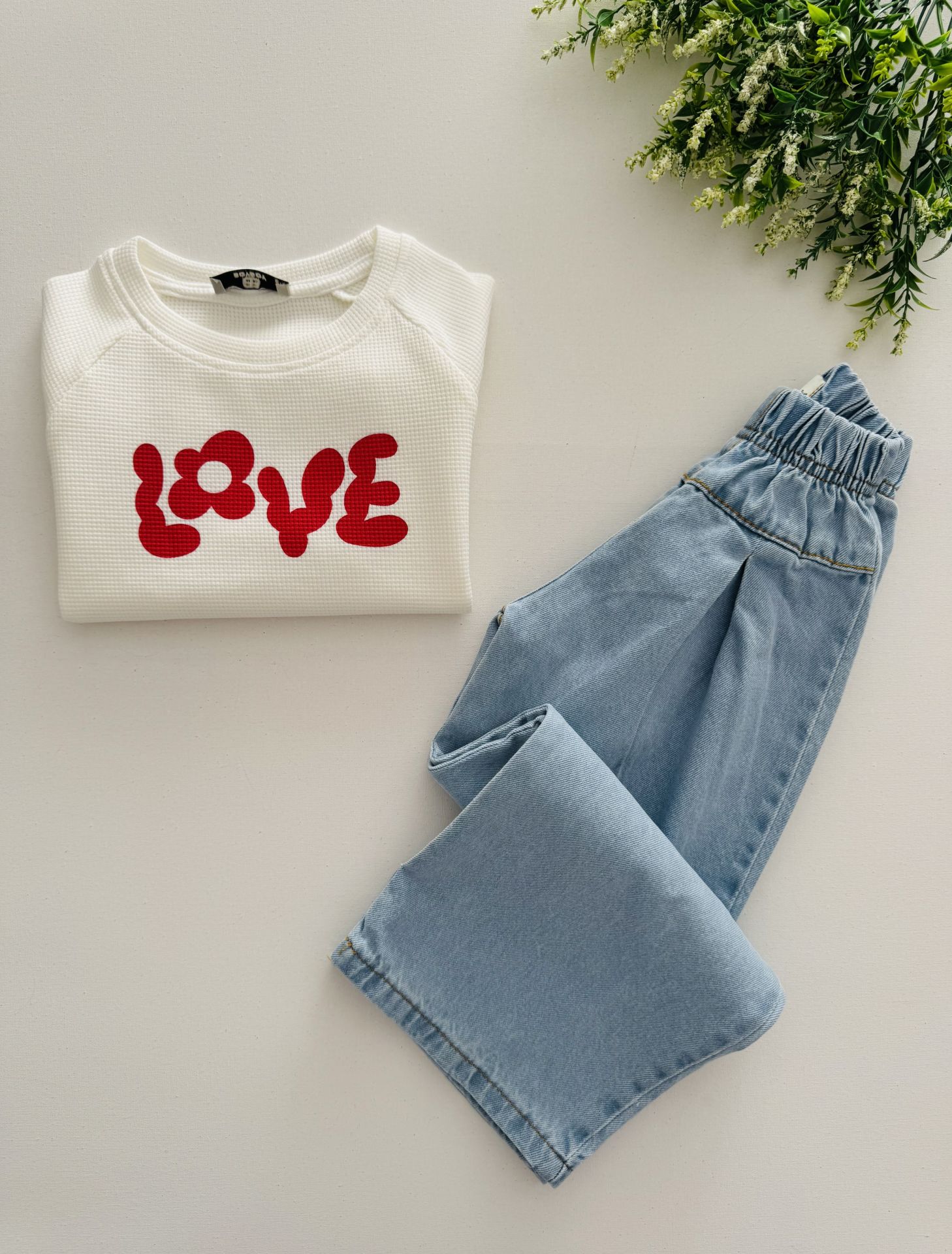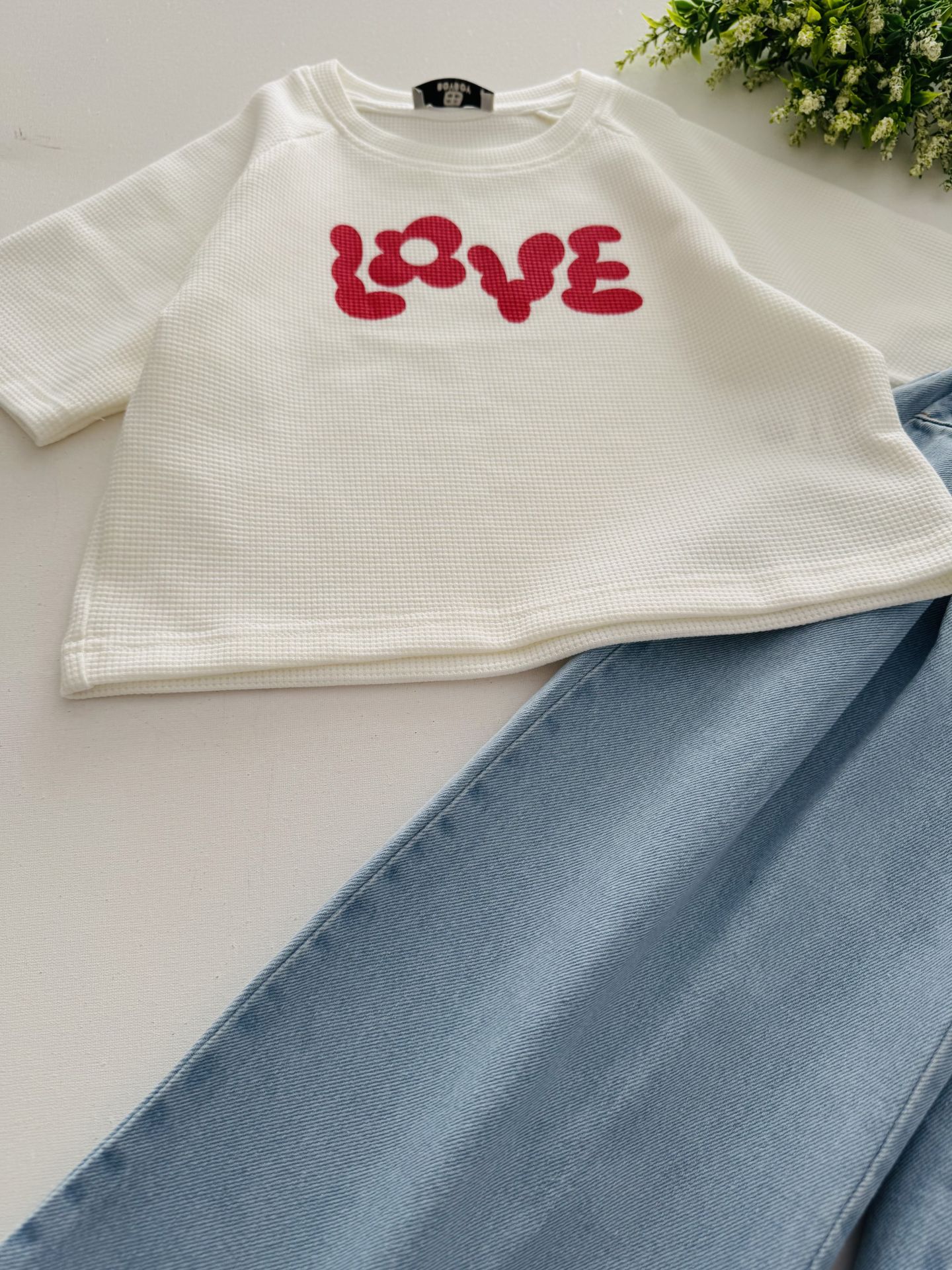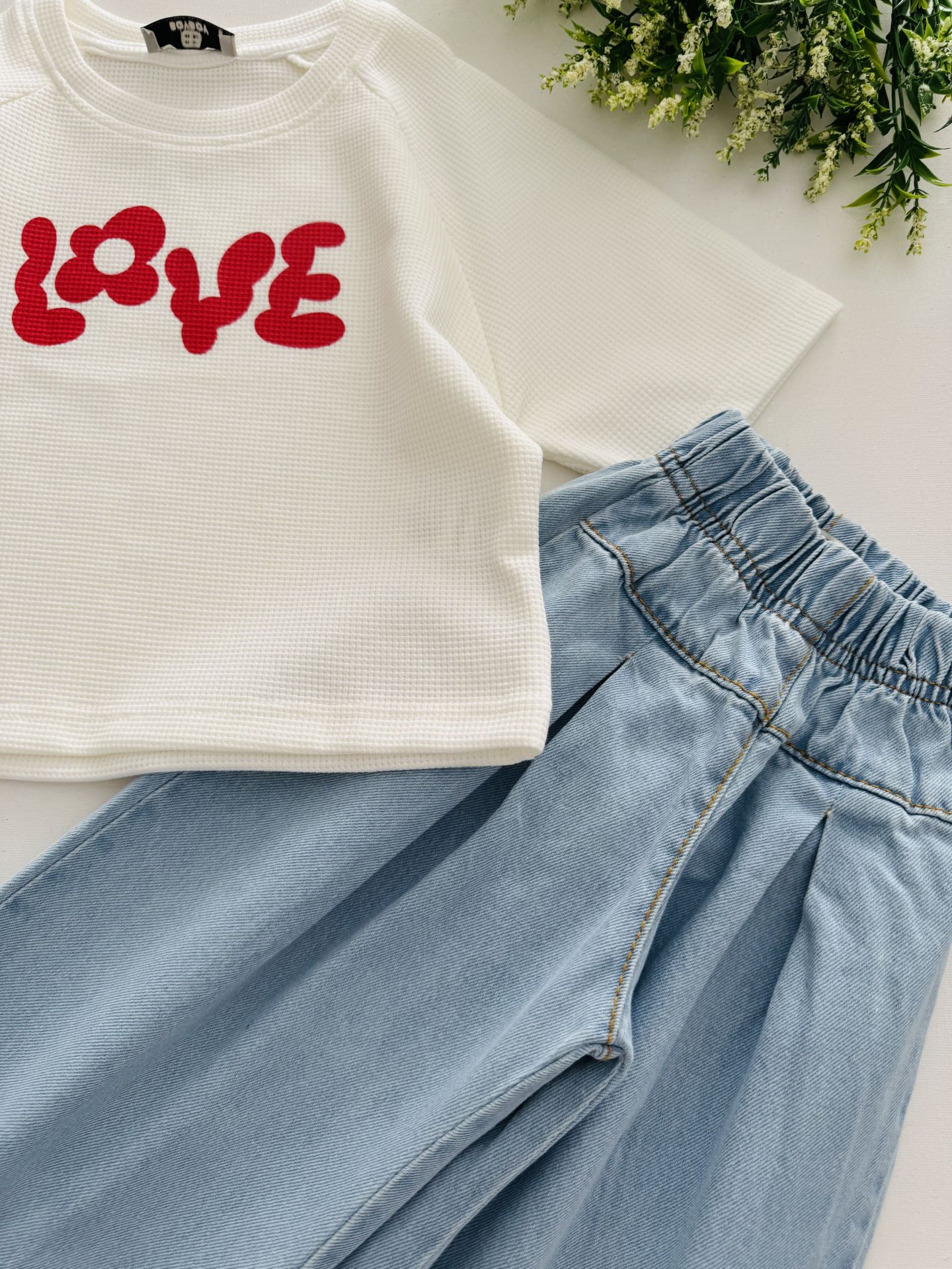 Love Baskılı Denim 2’li Set Duru - Beyaz
