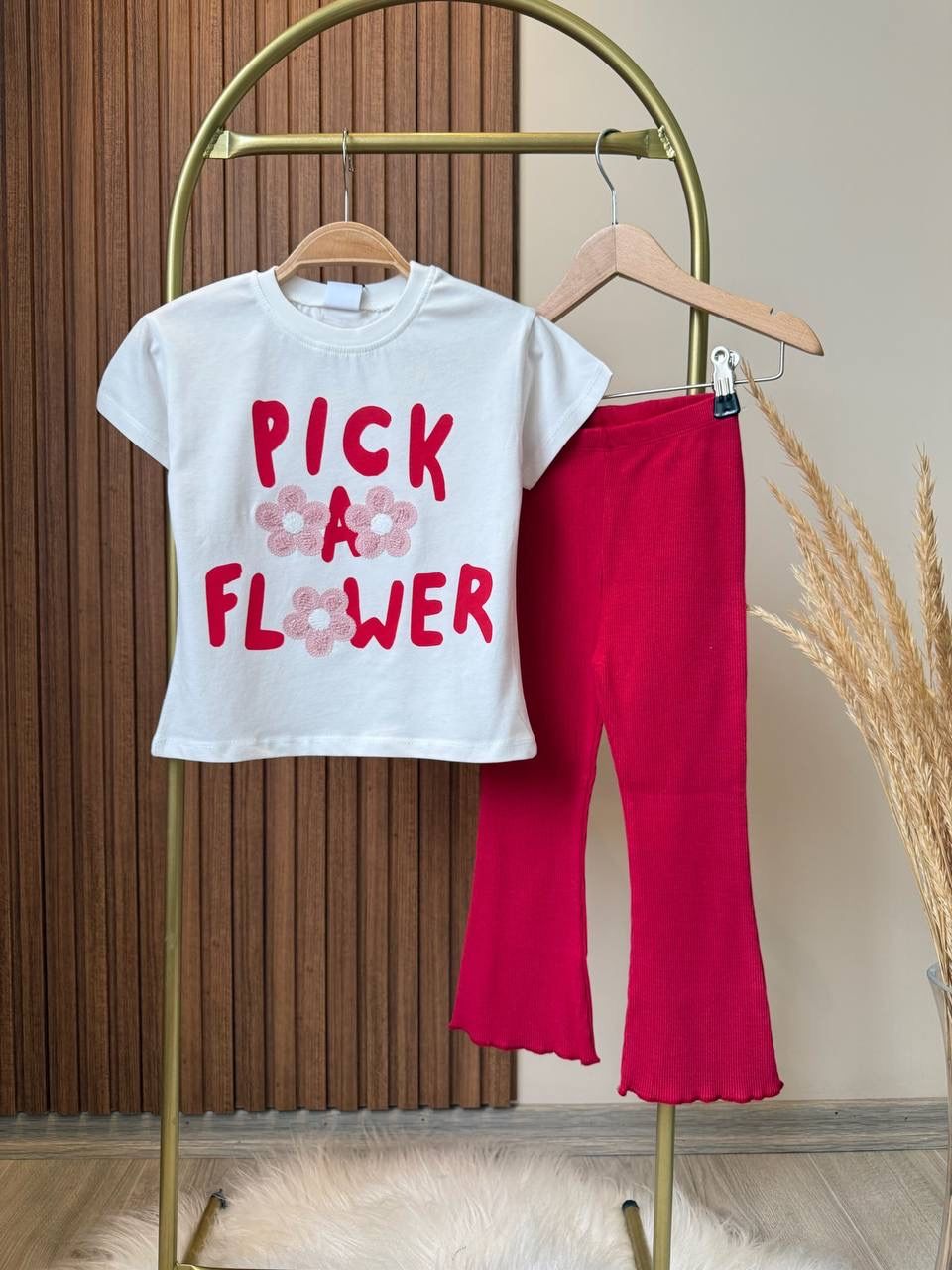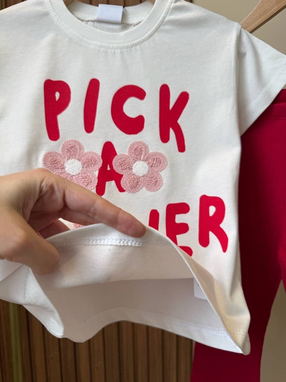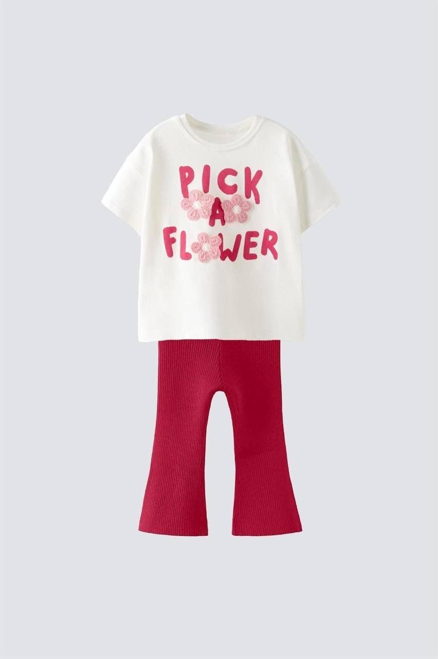 Ürün Bilgisi : Pamuklu likralı esnek penye üzerine çiçek ve punch baskılı taytlı takım