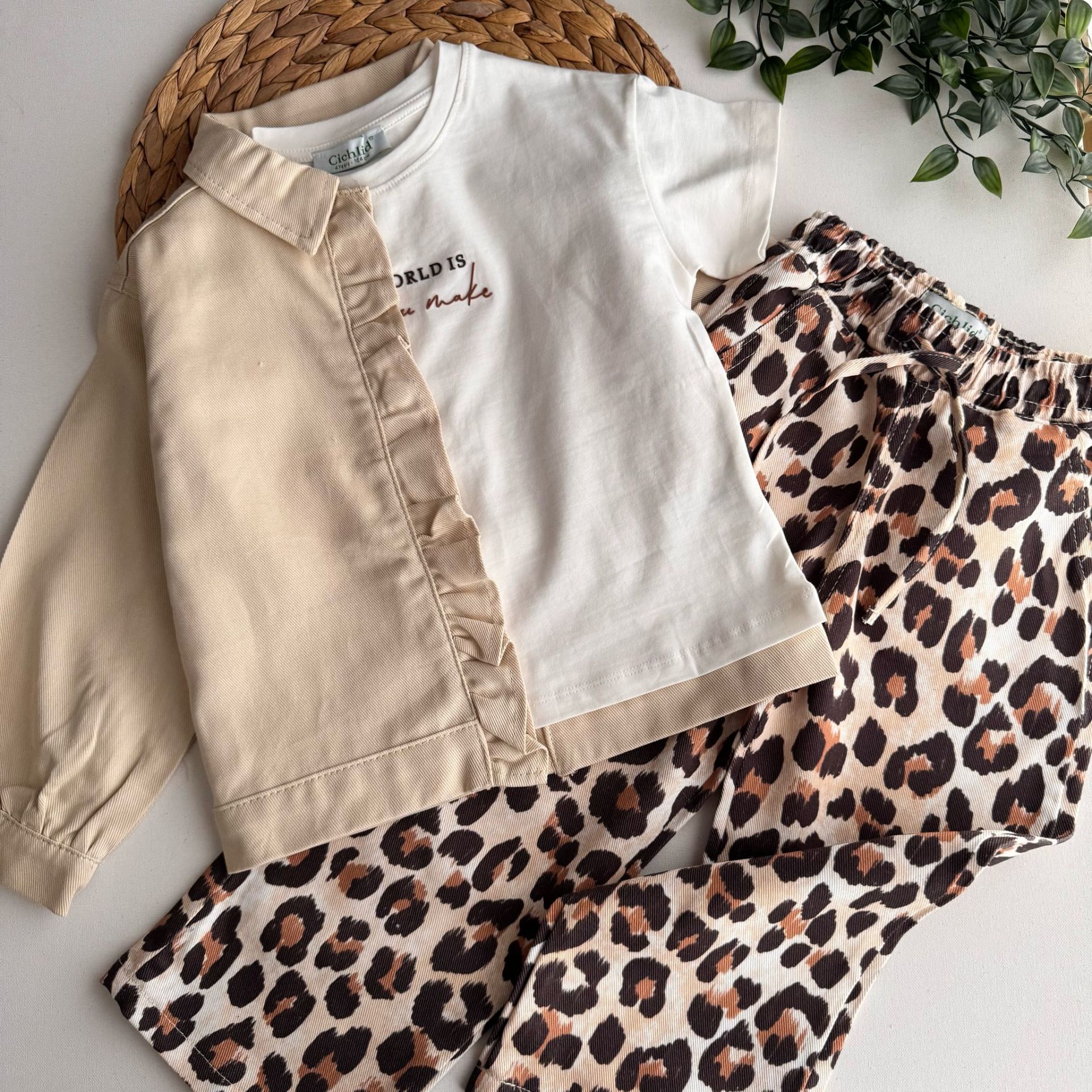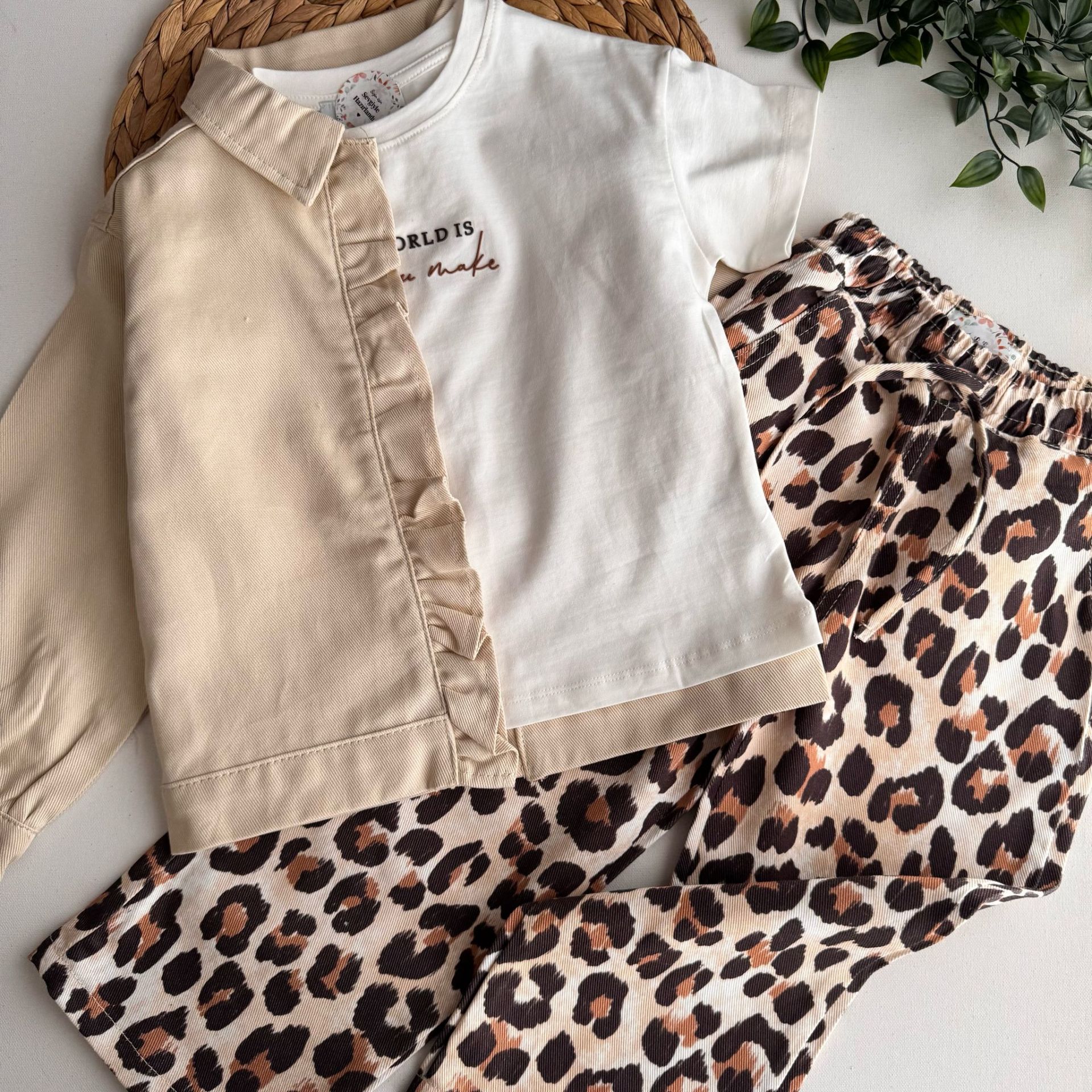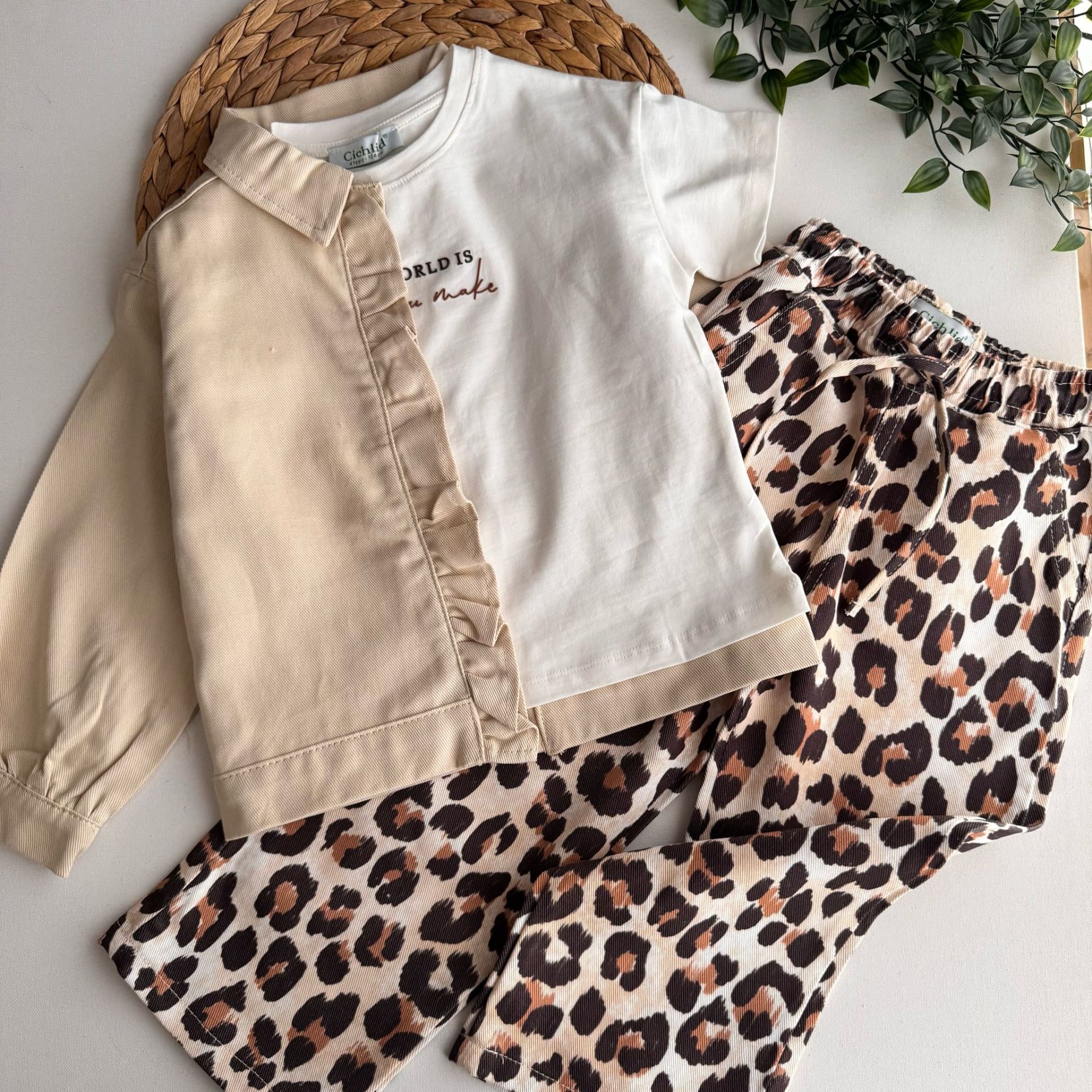 Mina Kız Çocuk Takım 3'lü Set - Leopar Kahve