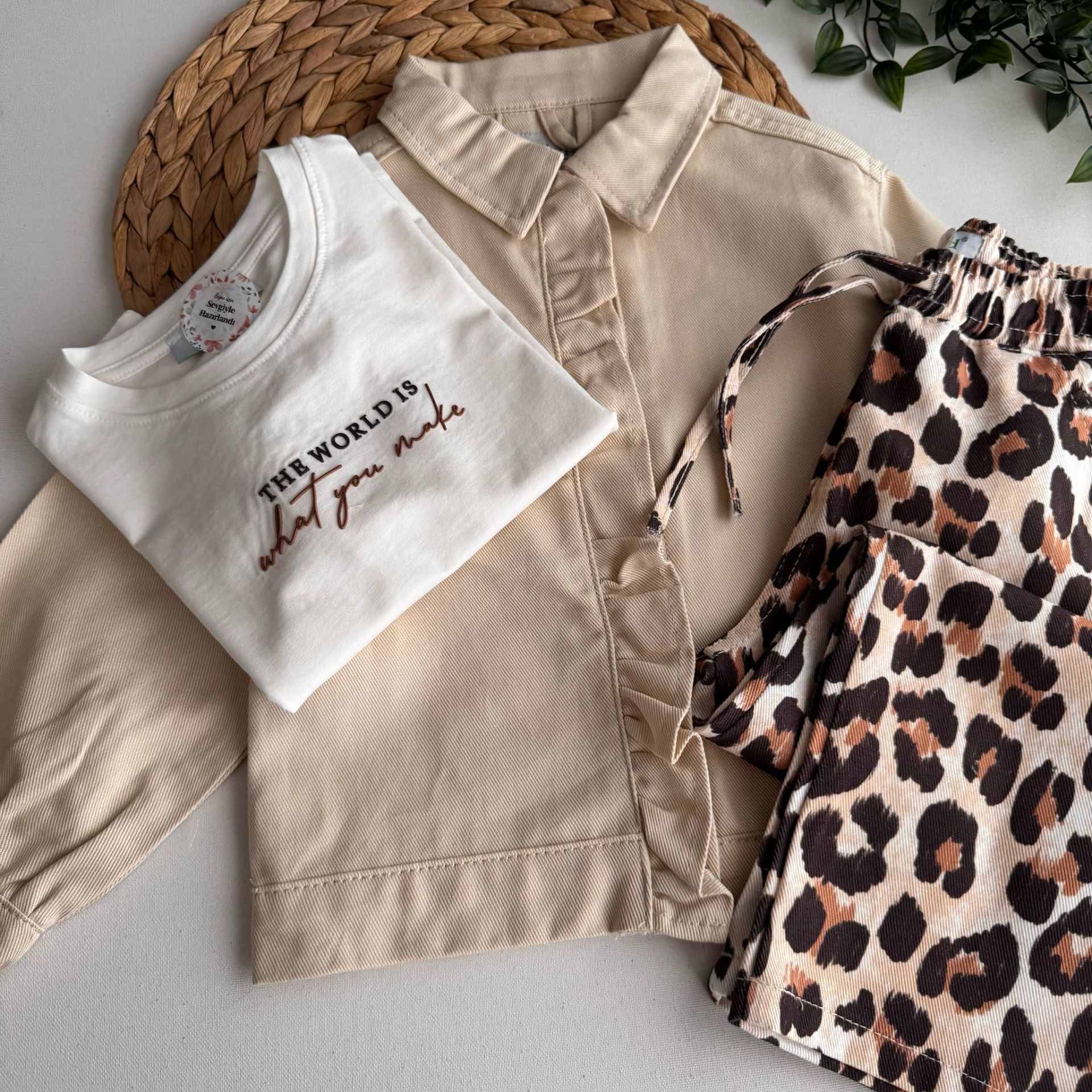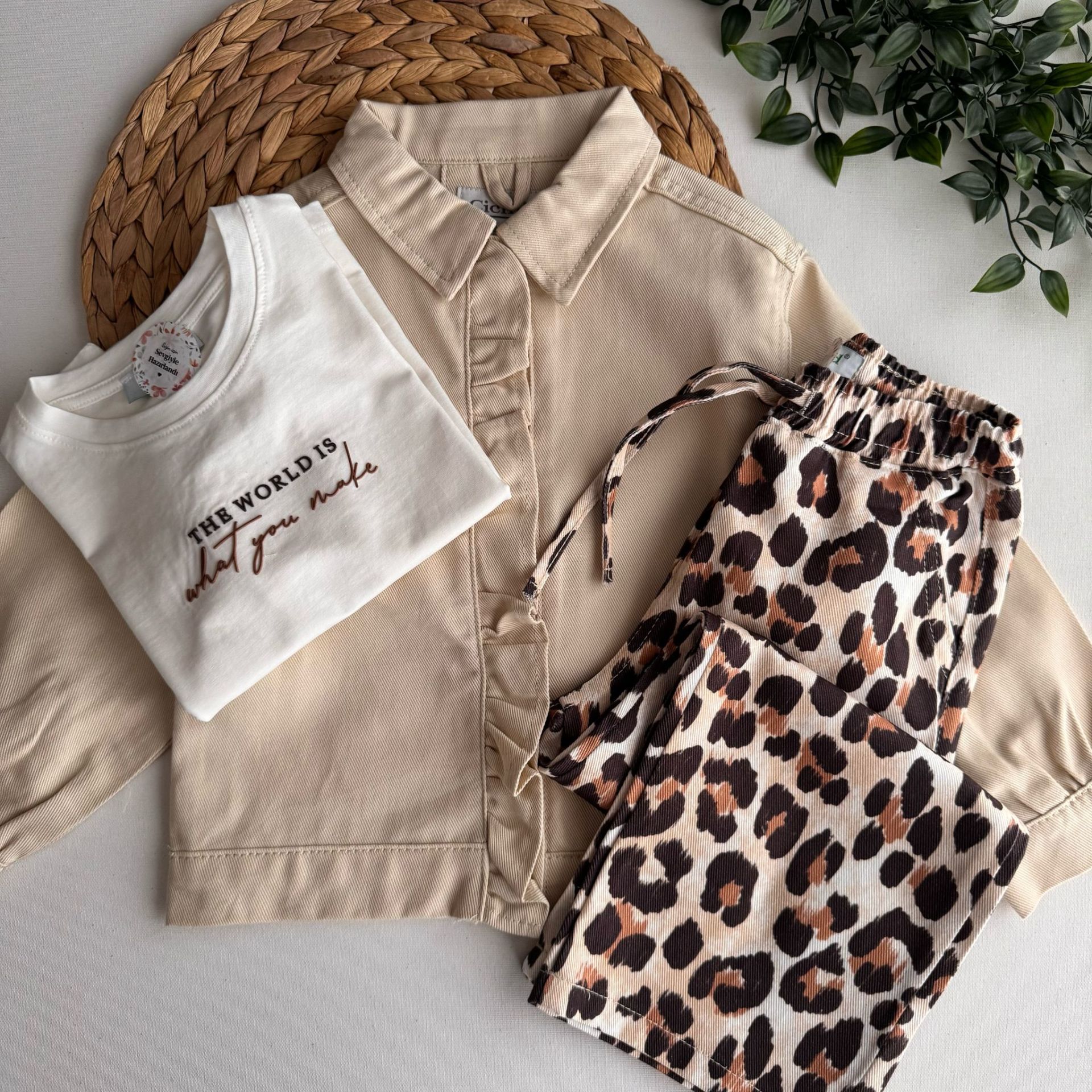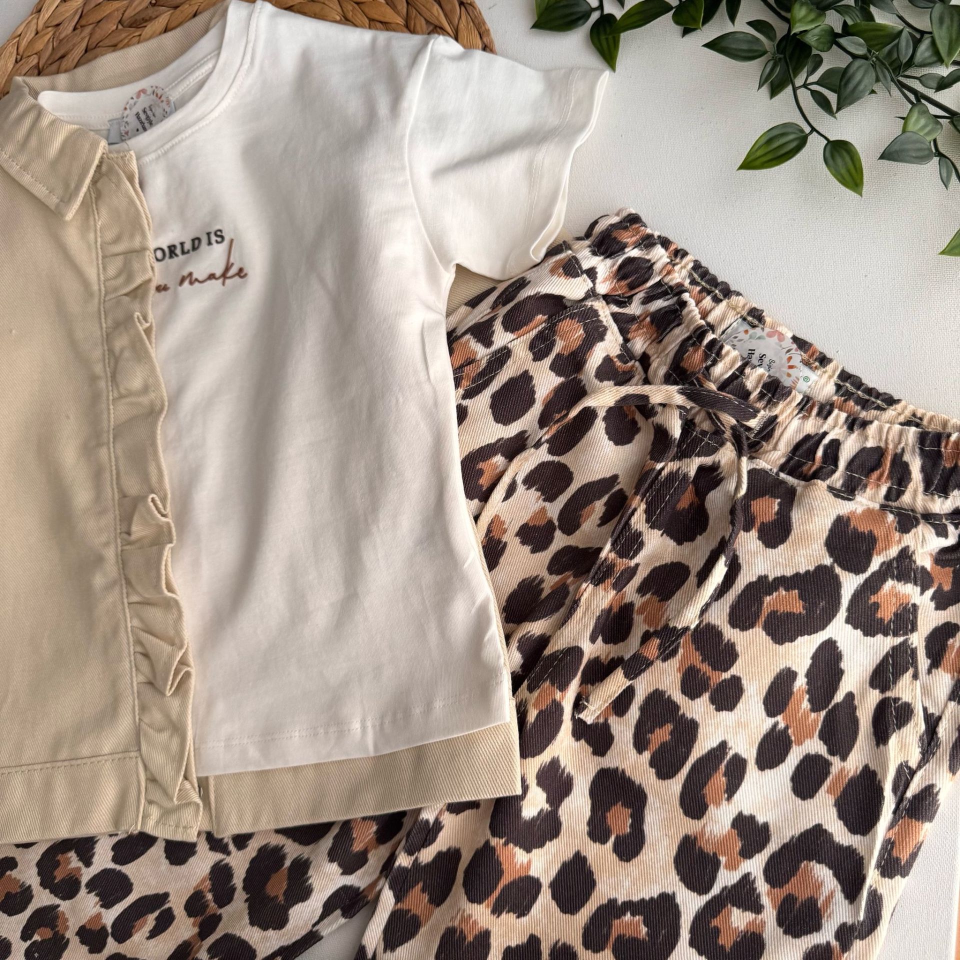 Mina Kız Çocuk Takım 3'lü Set - Leopar Kahve