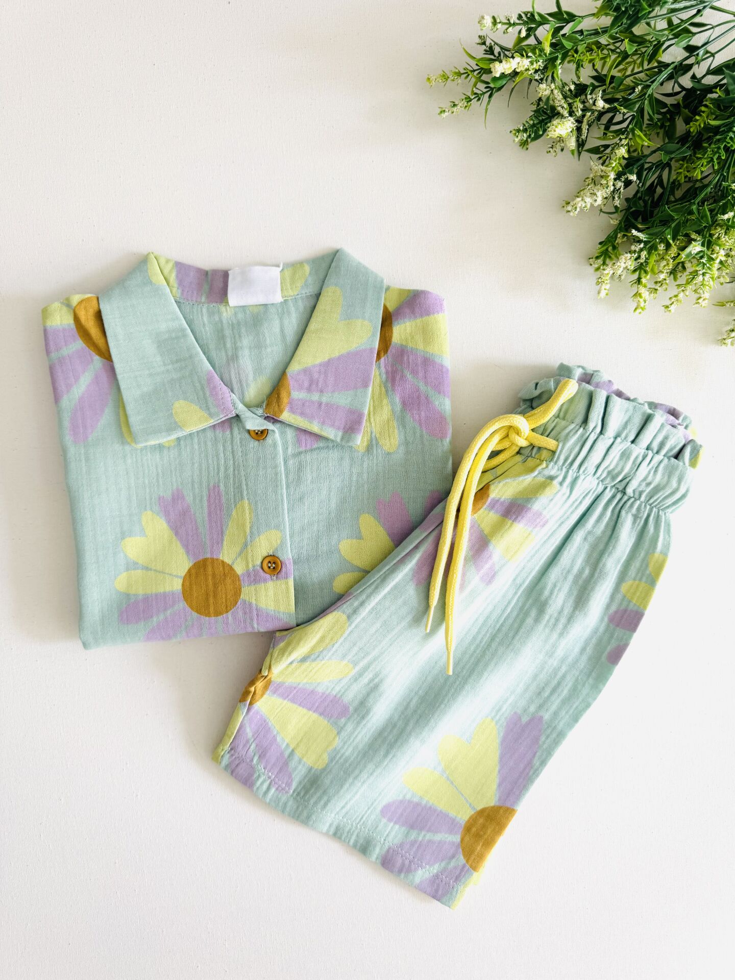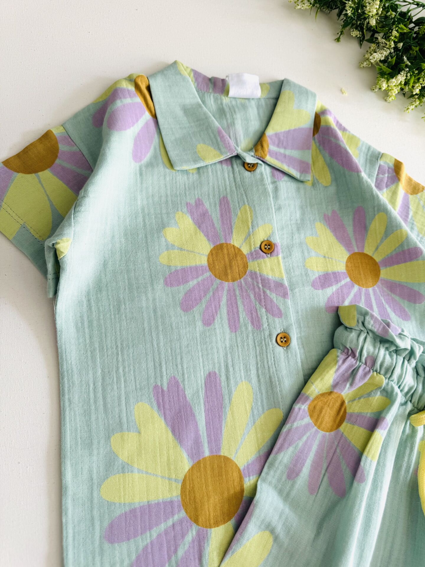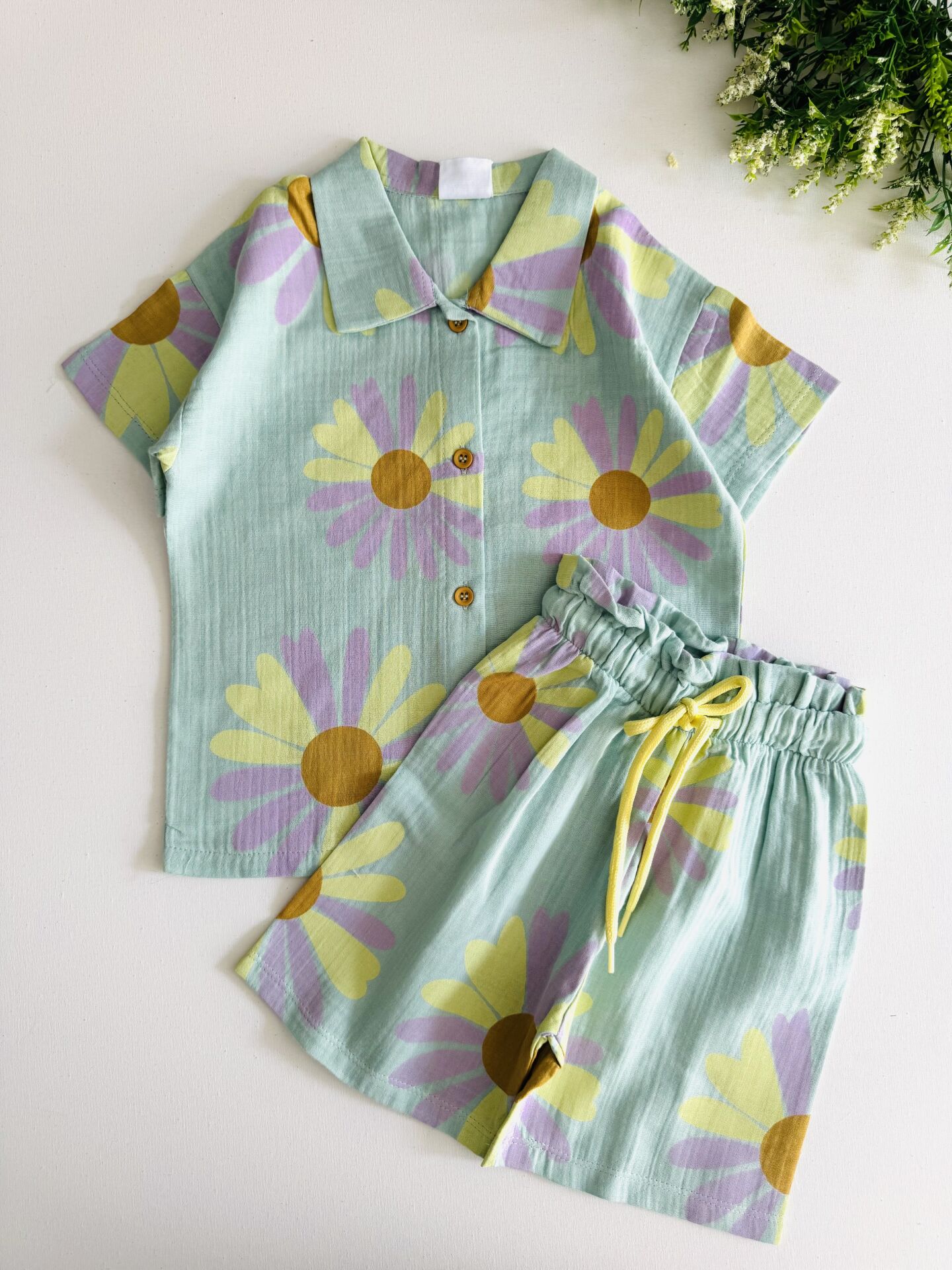 Müslin Çiçekli Zeynep Takım - Yeşil