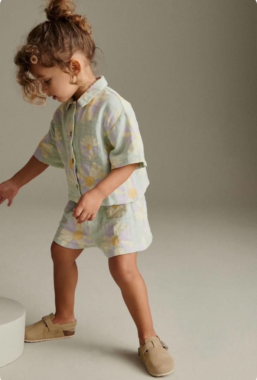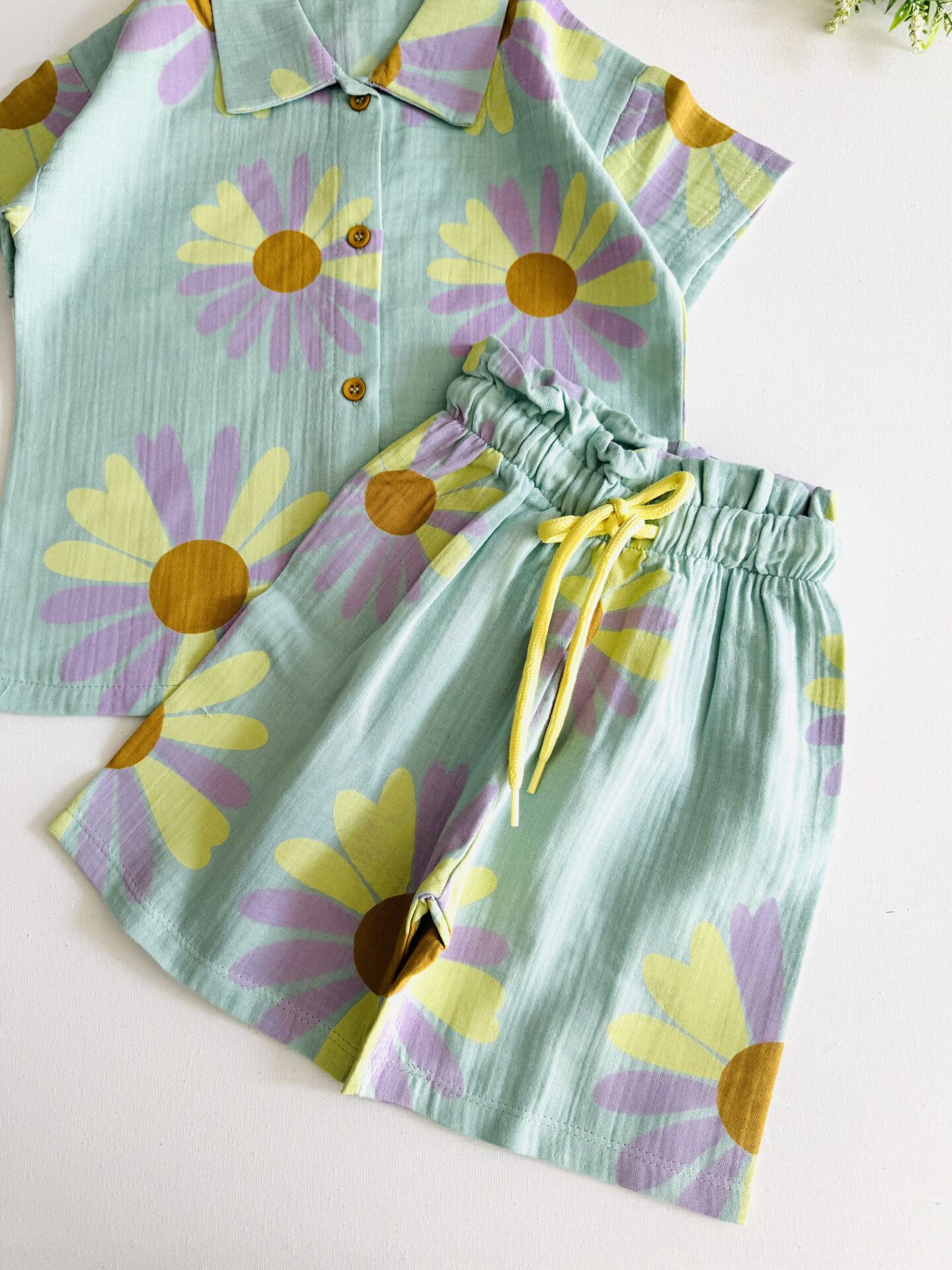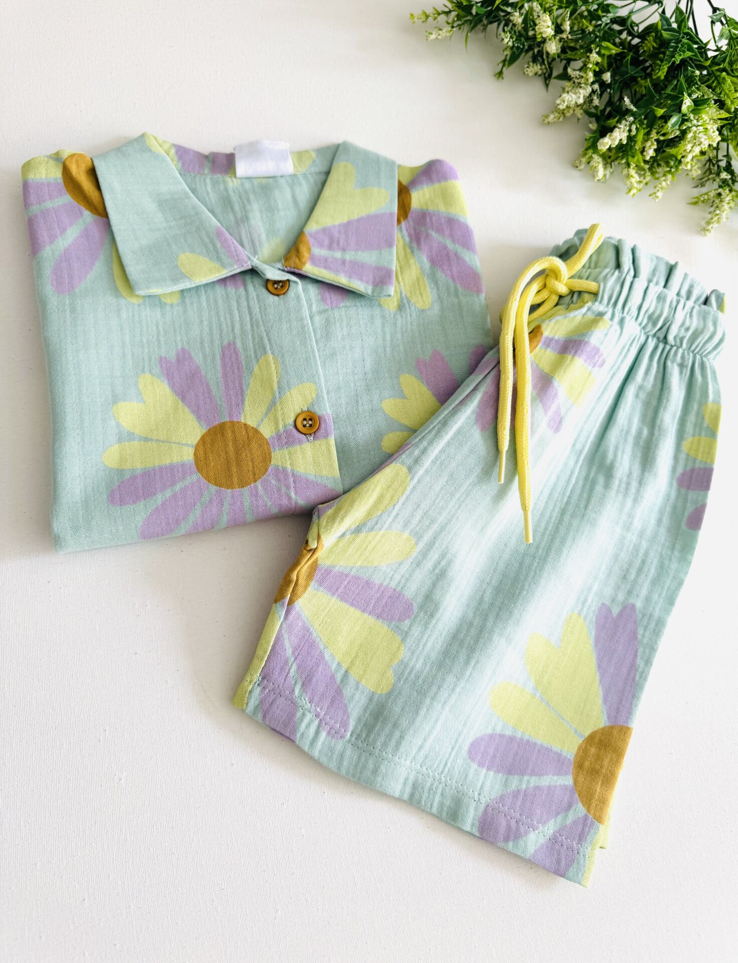 Müslin Çiçekli Zeynep Takım - Yeşil