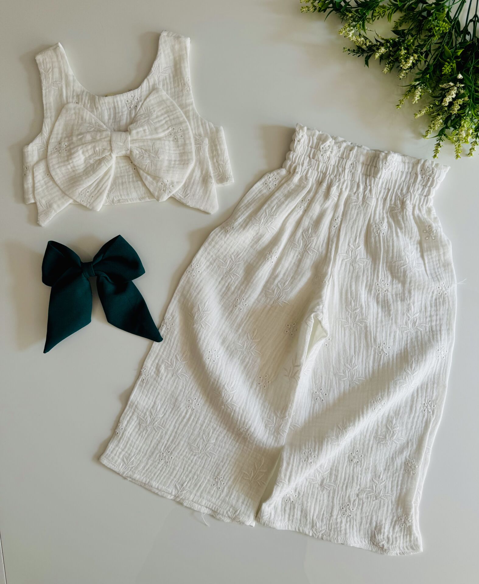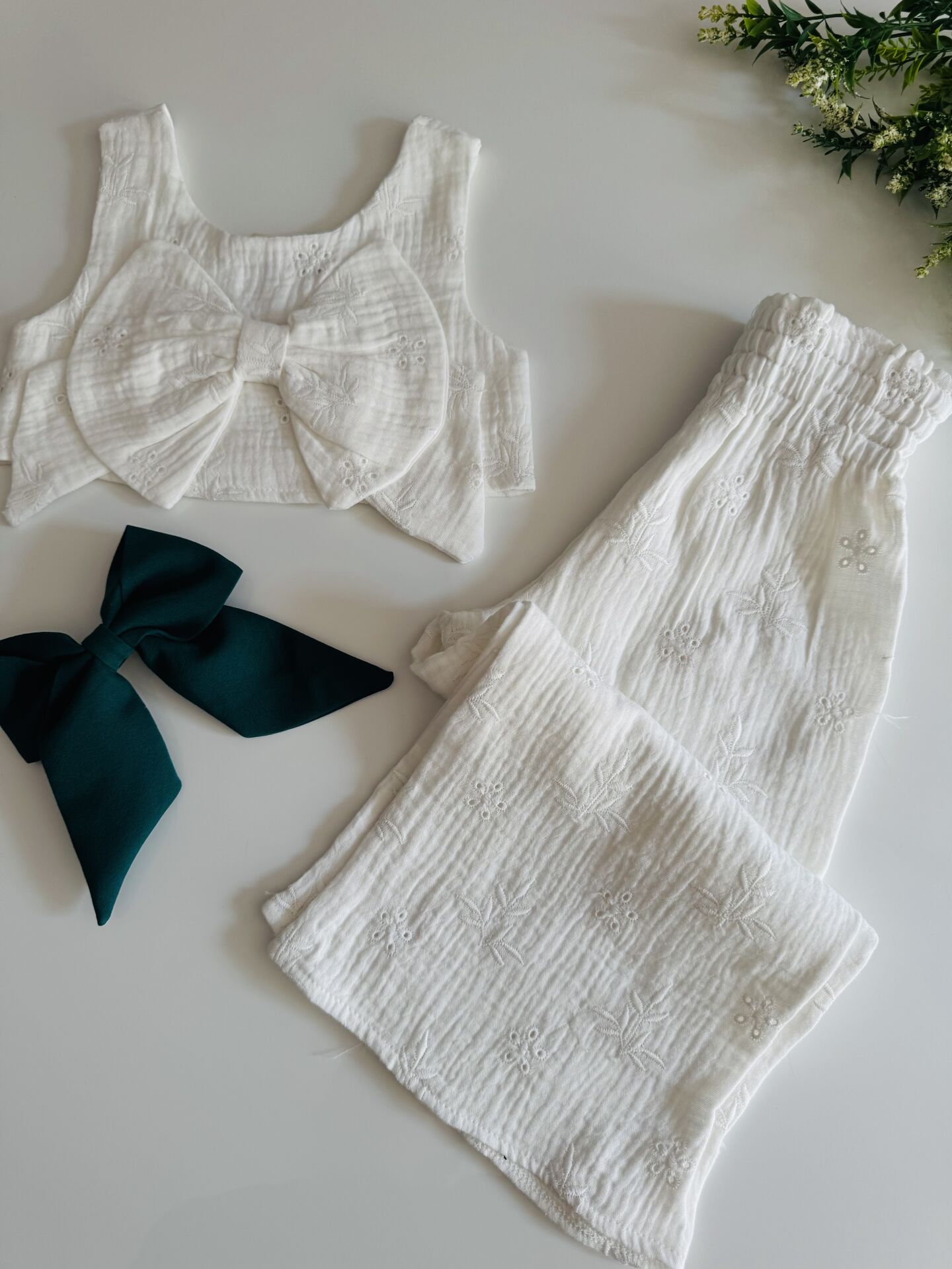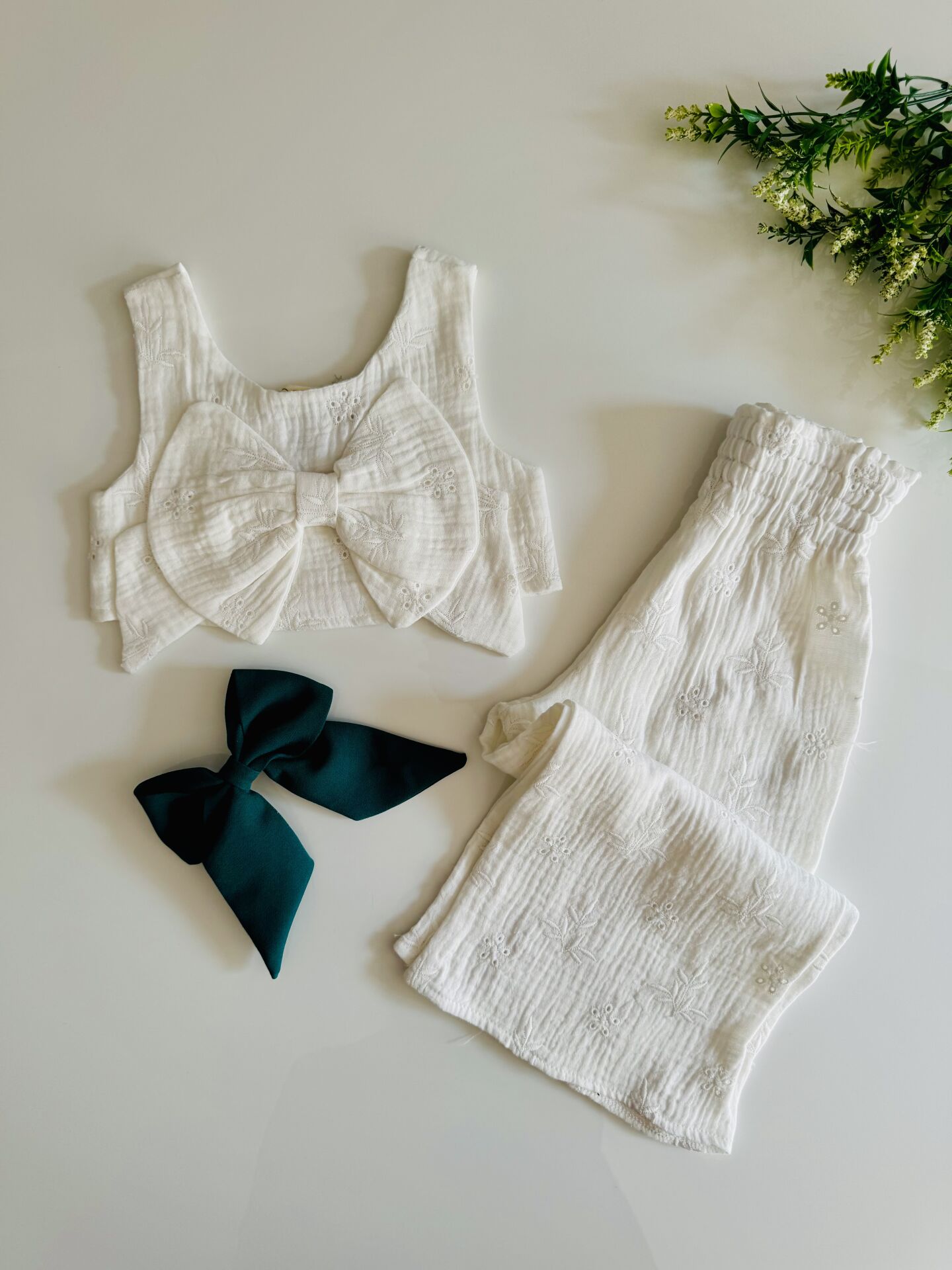 Müslin Fiyonk Detaylı Zeynep Takım - Beyaz