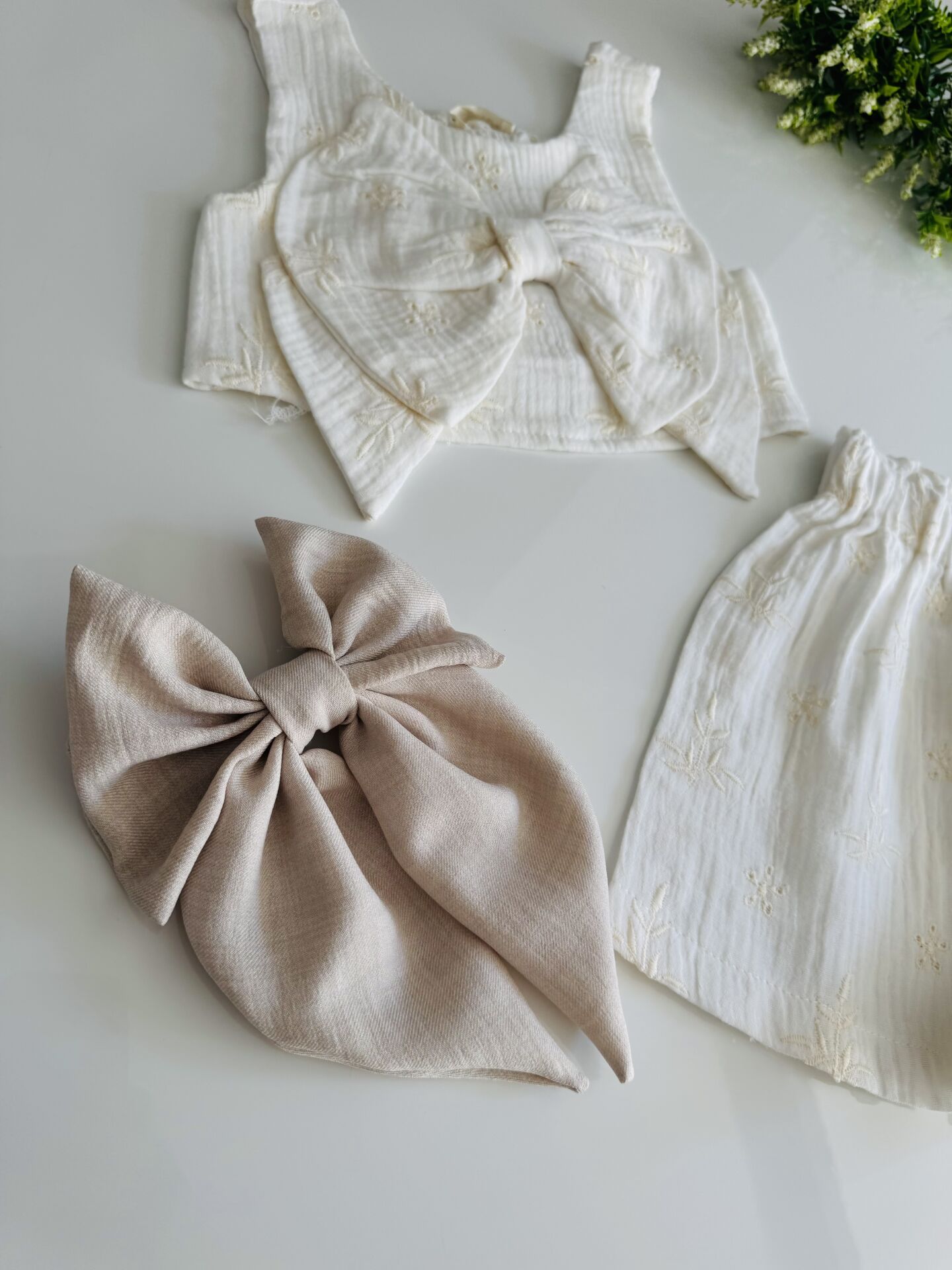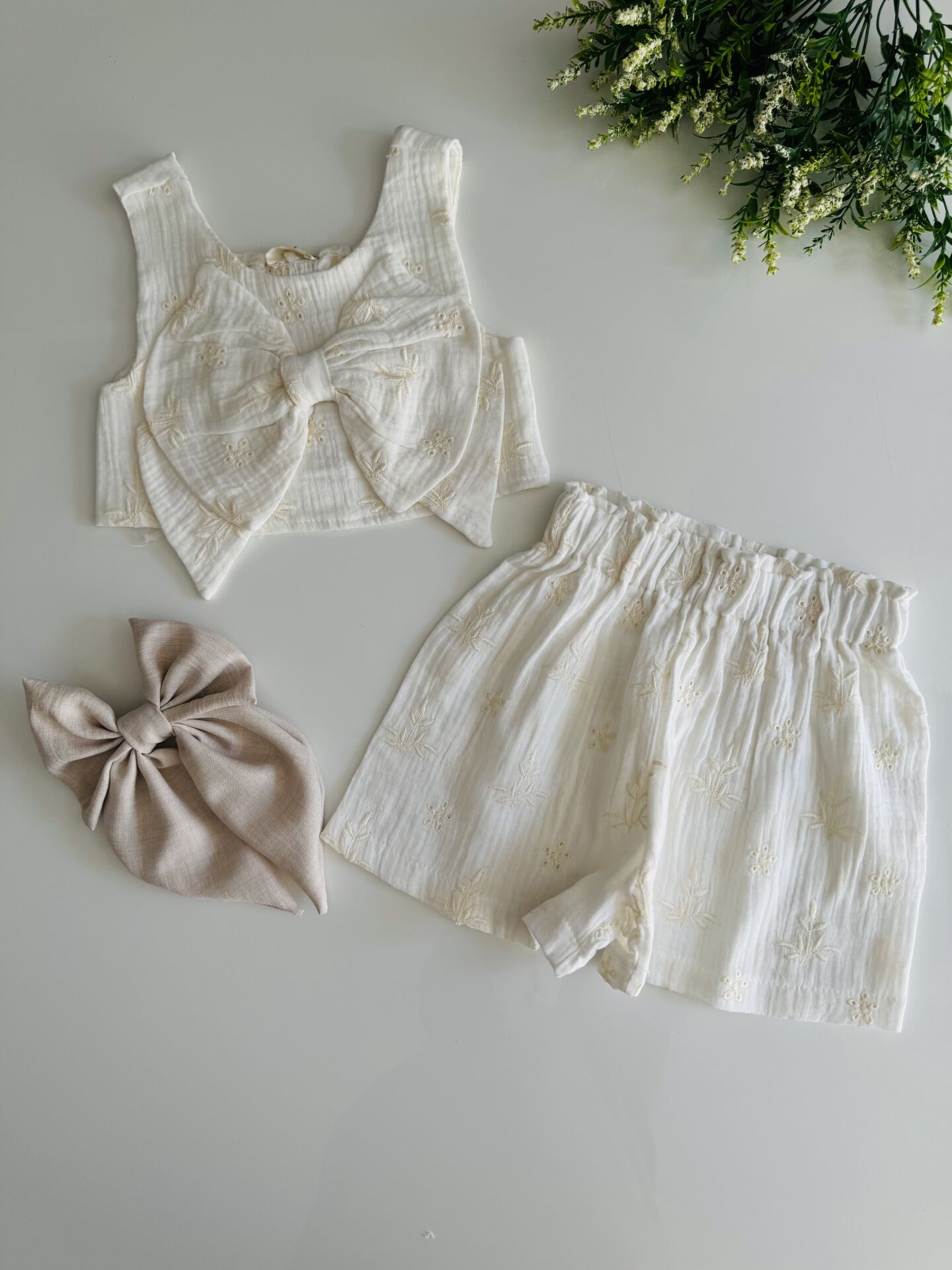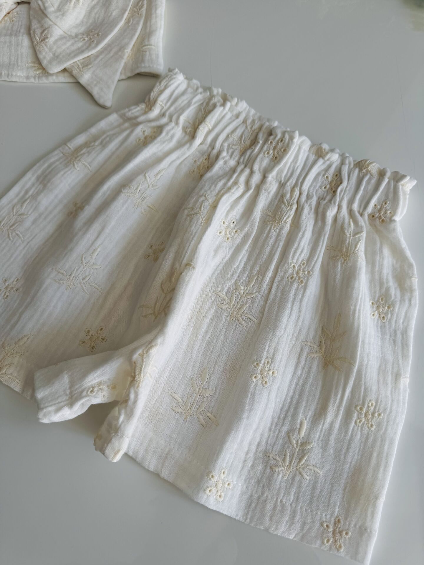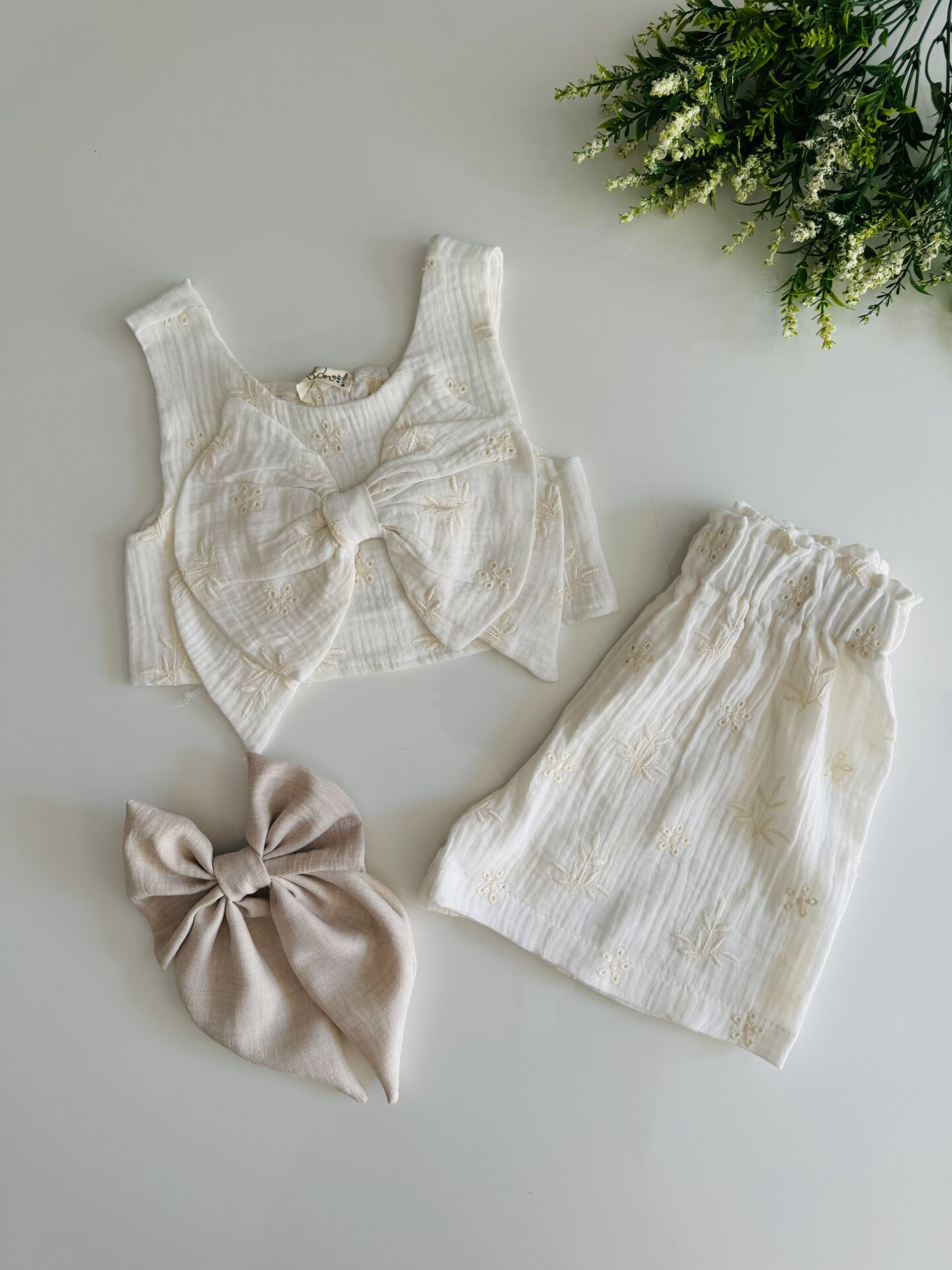 Müslin Fiyonk Detaylı Zeynep Takım - Ekru
