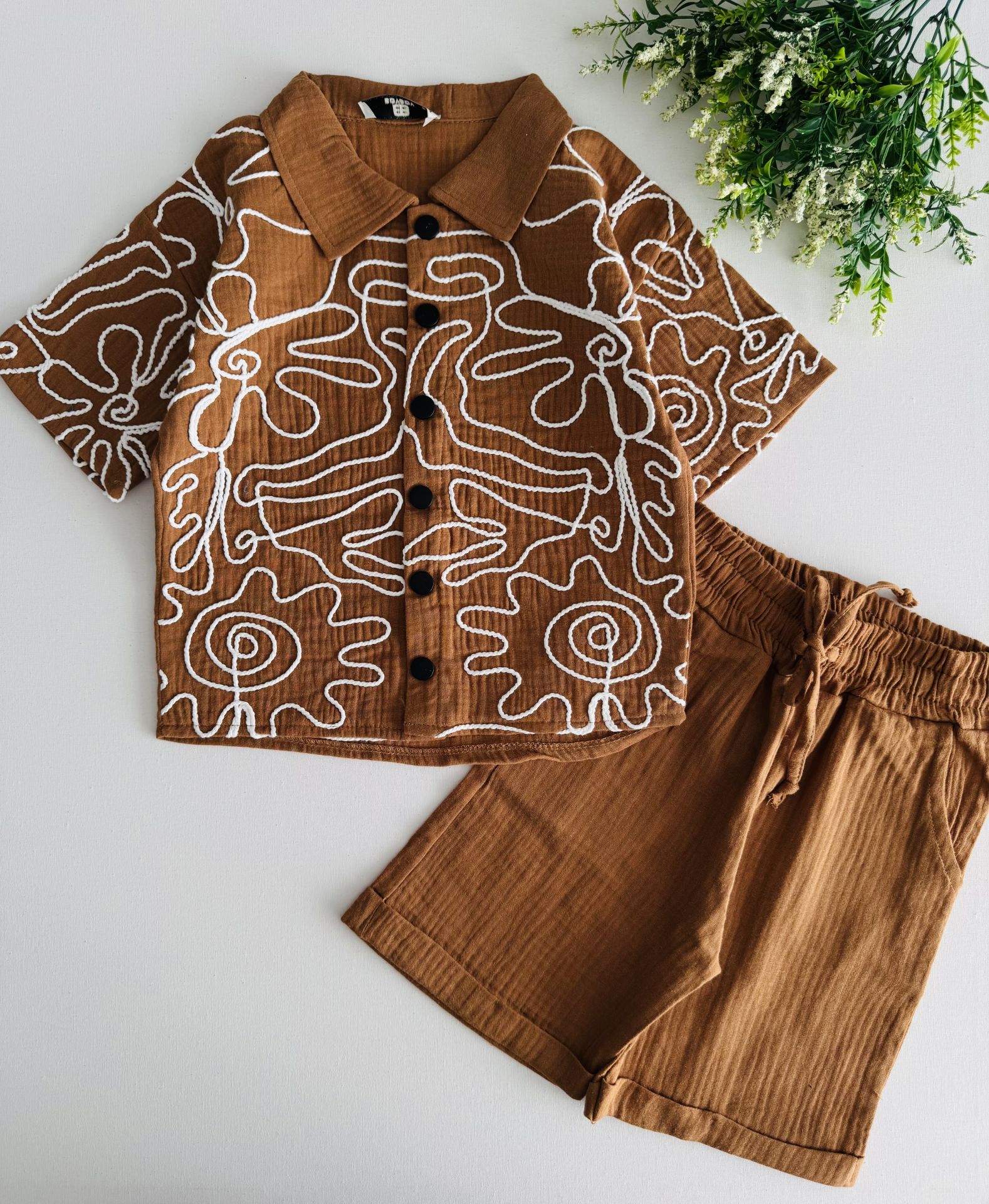 Müslin Kordon Nakışlı Efe Bohem Takım - Kahve