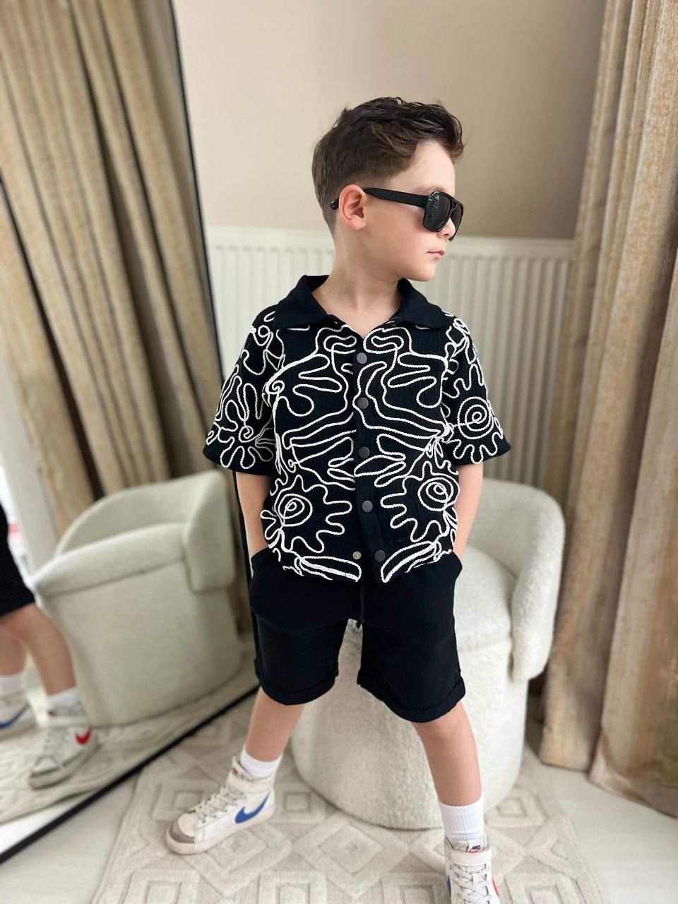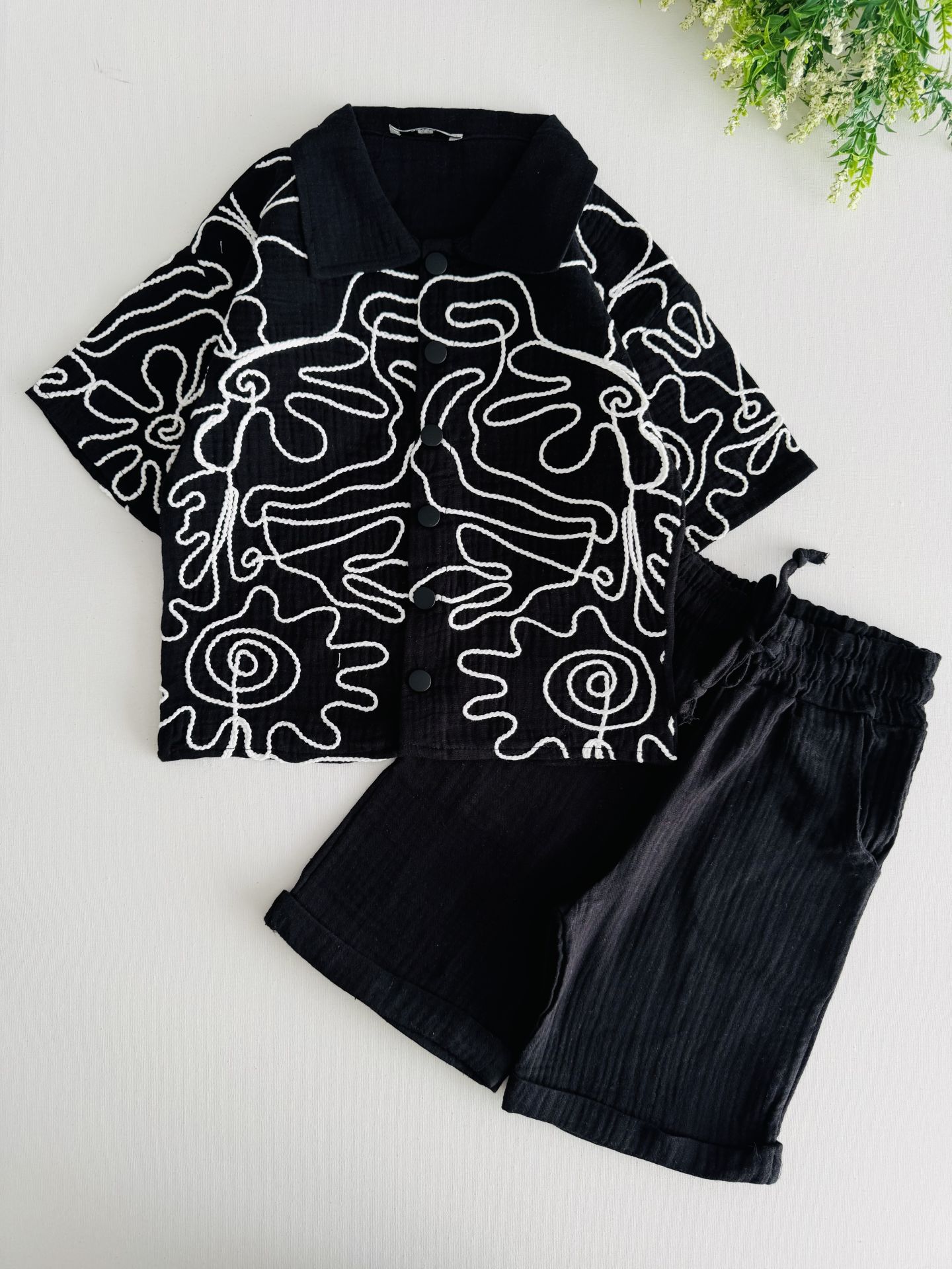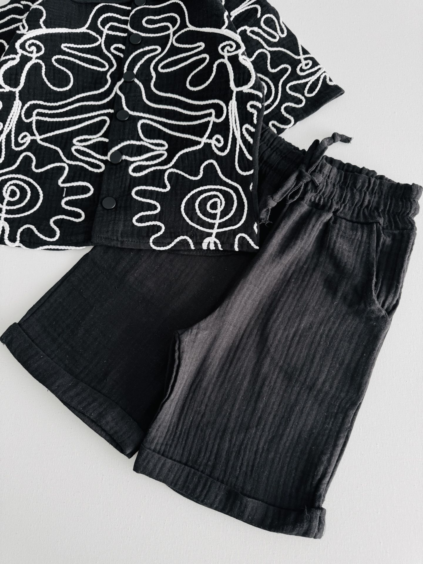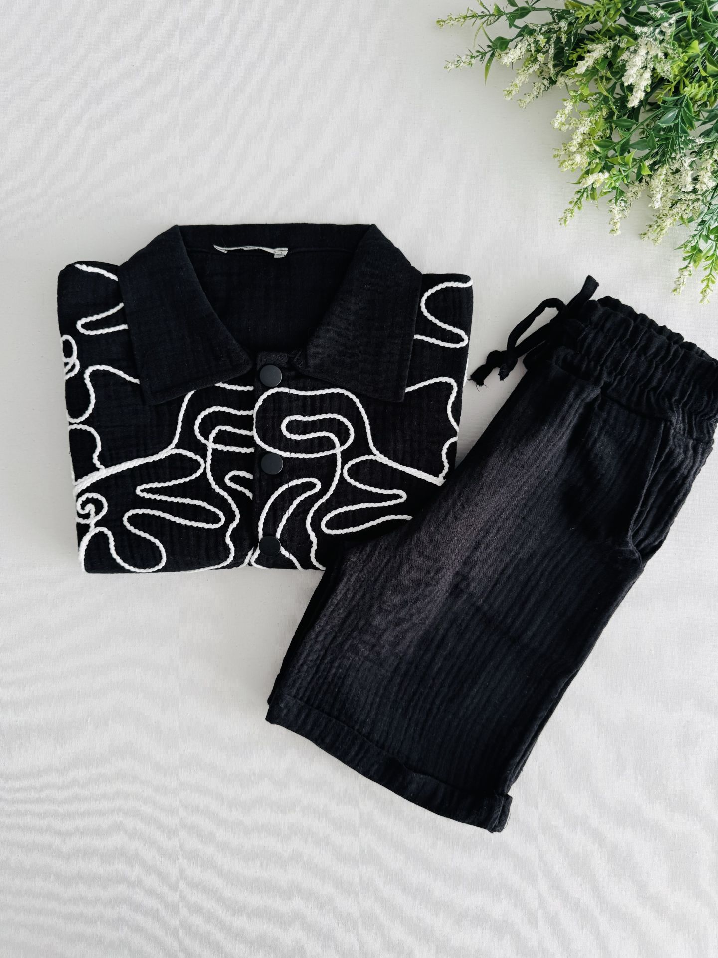 Ürün Bilgisi : Müslin kumaş üzerine kumaş kordon nakışlı şortlu takım