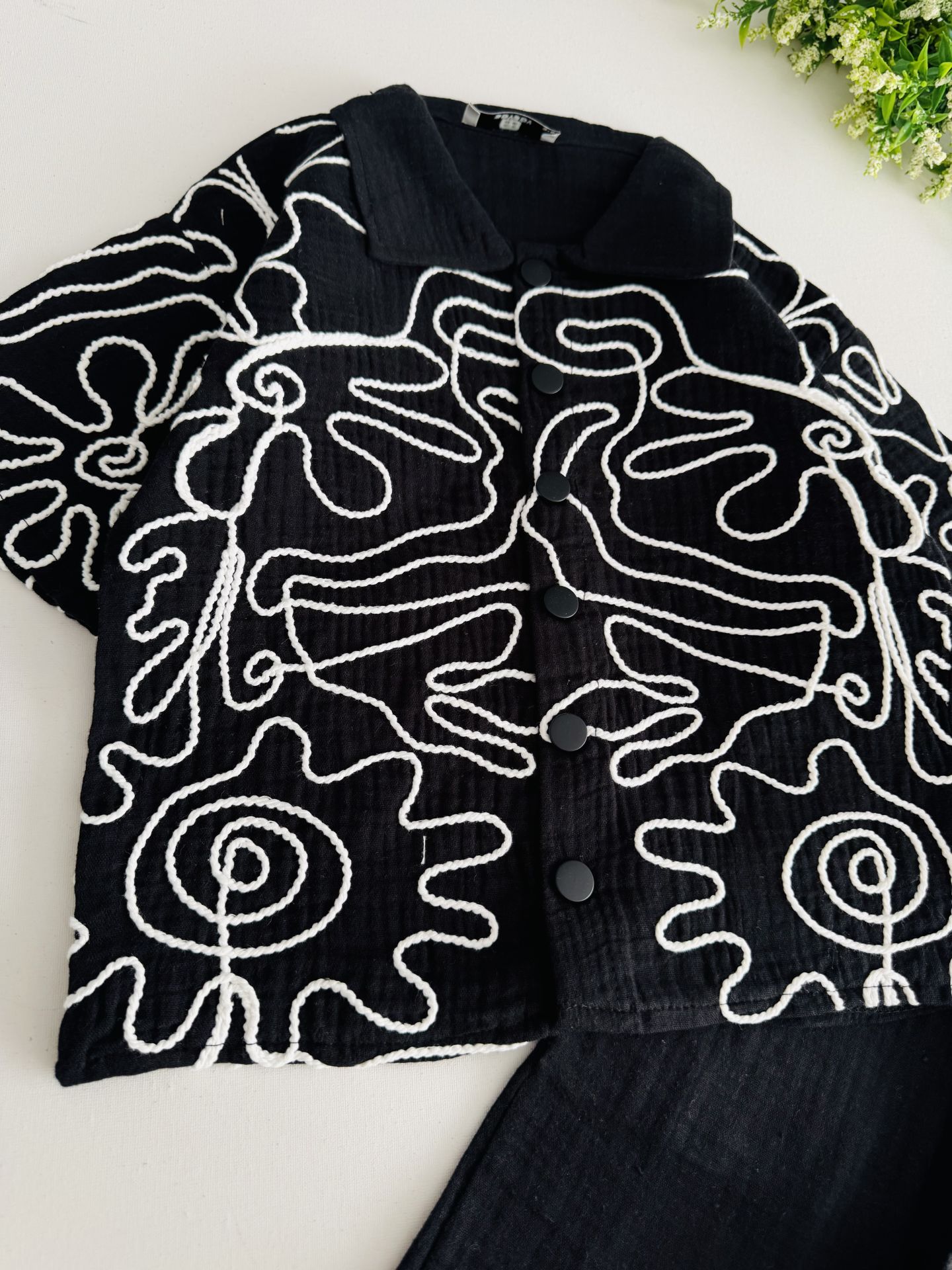 Müslin Kordon Nakışlı Efe Bohem Takım - Siyah