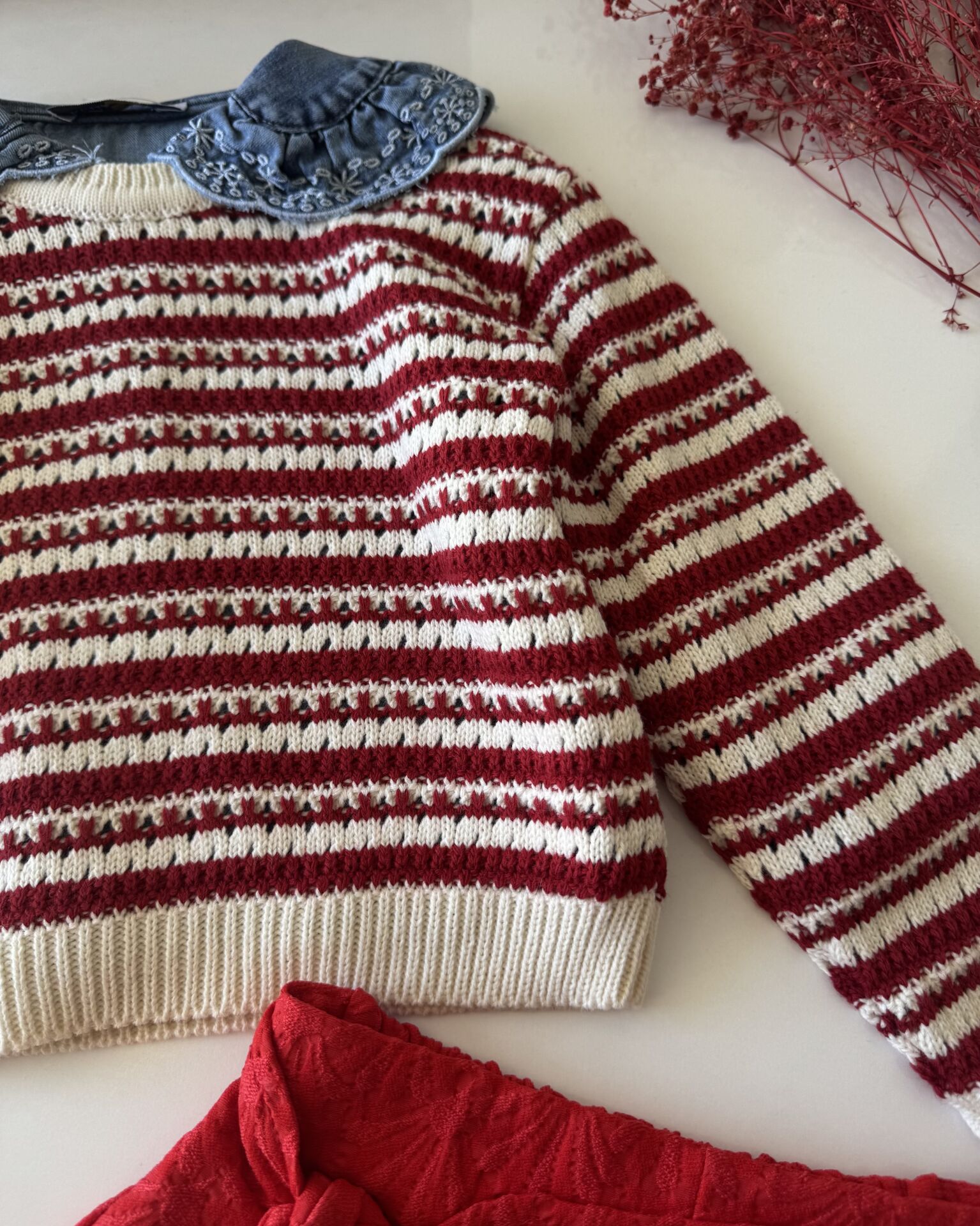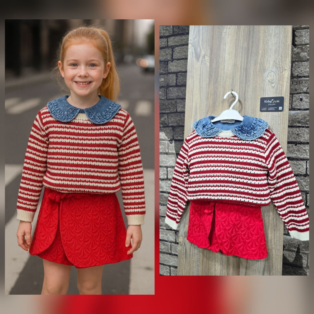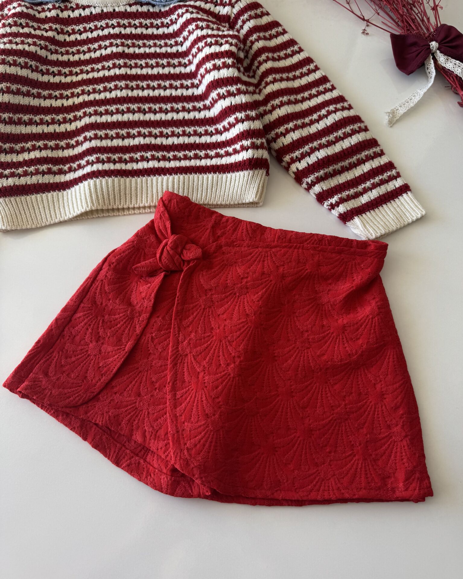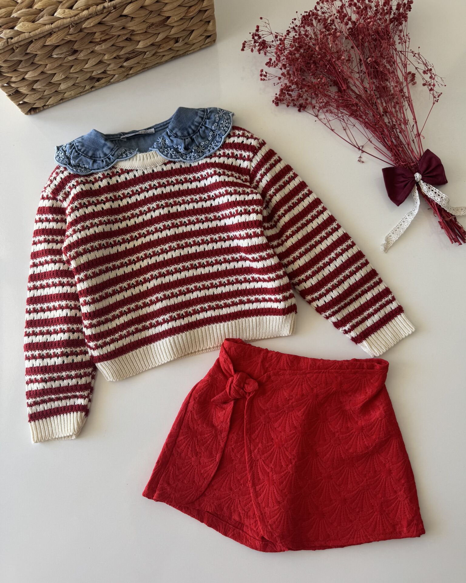 Ürün Bilgisi ; Üst bebe yaka nakışlı, alt şort etek