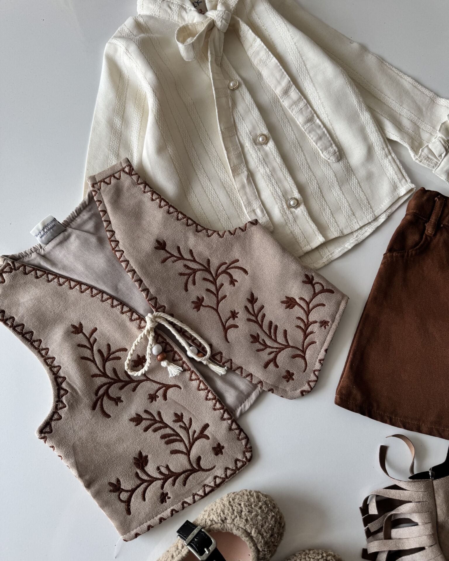 Nakışlı Yelekli 4'lü Set - Bej Yelekli
