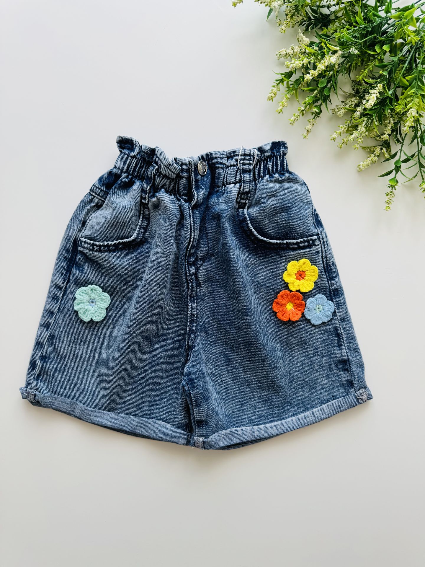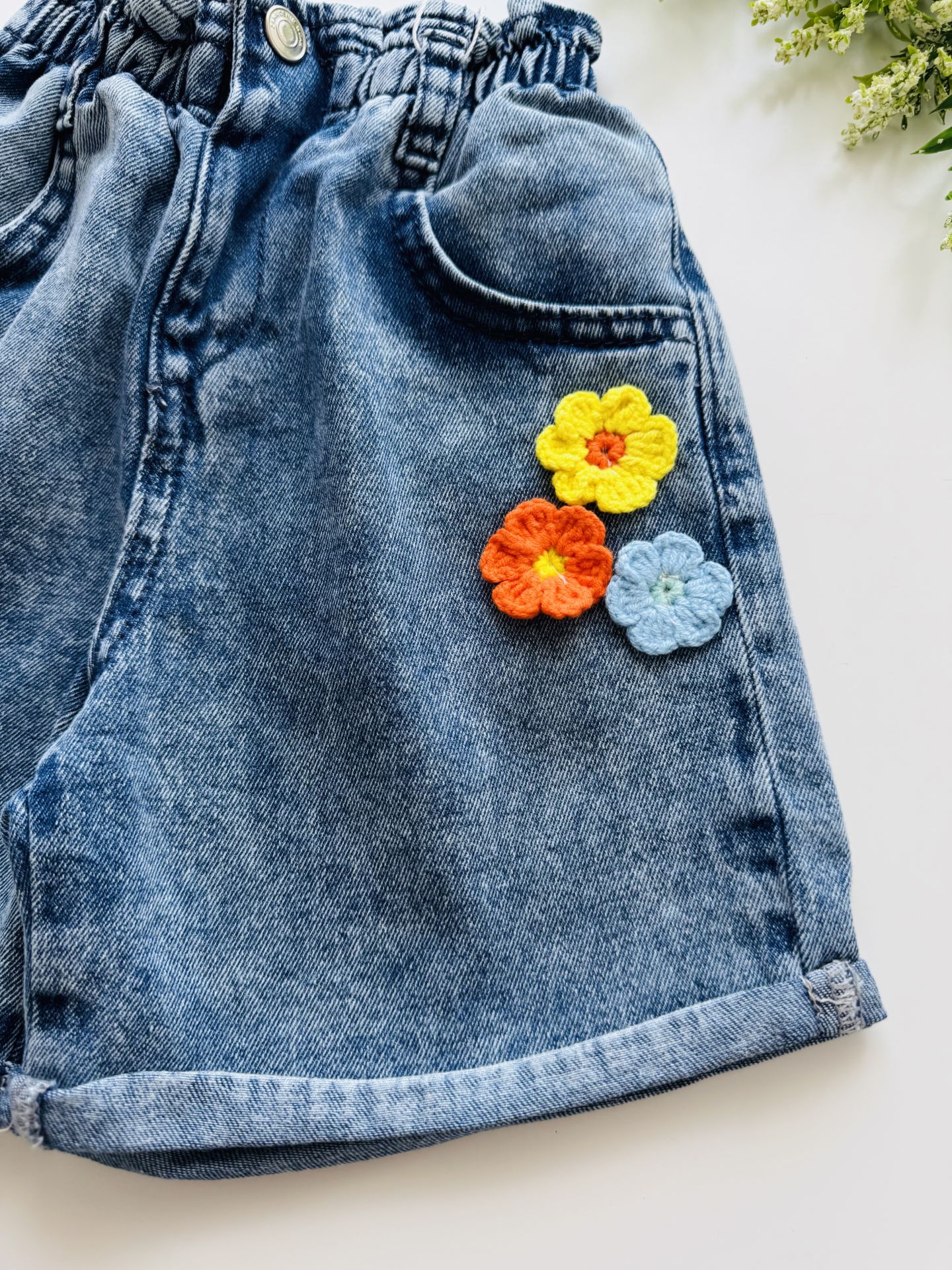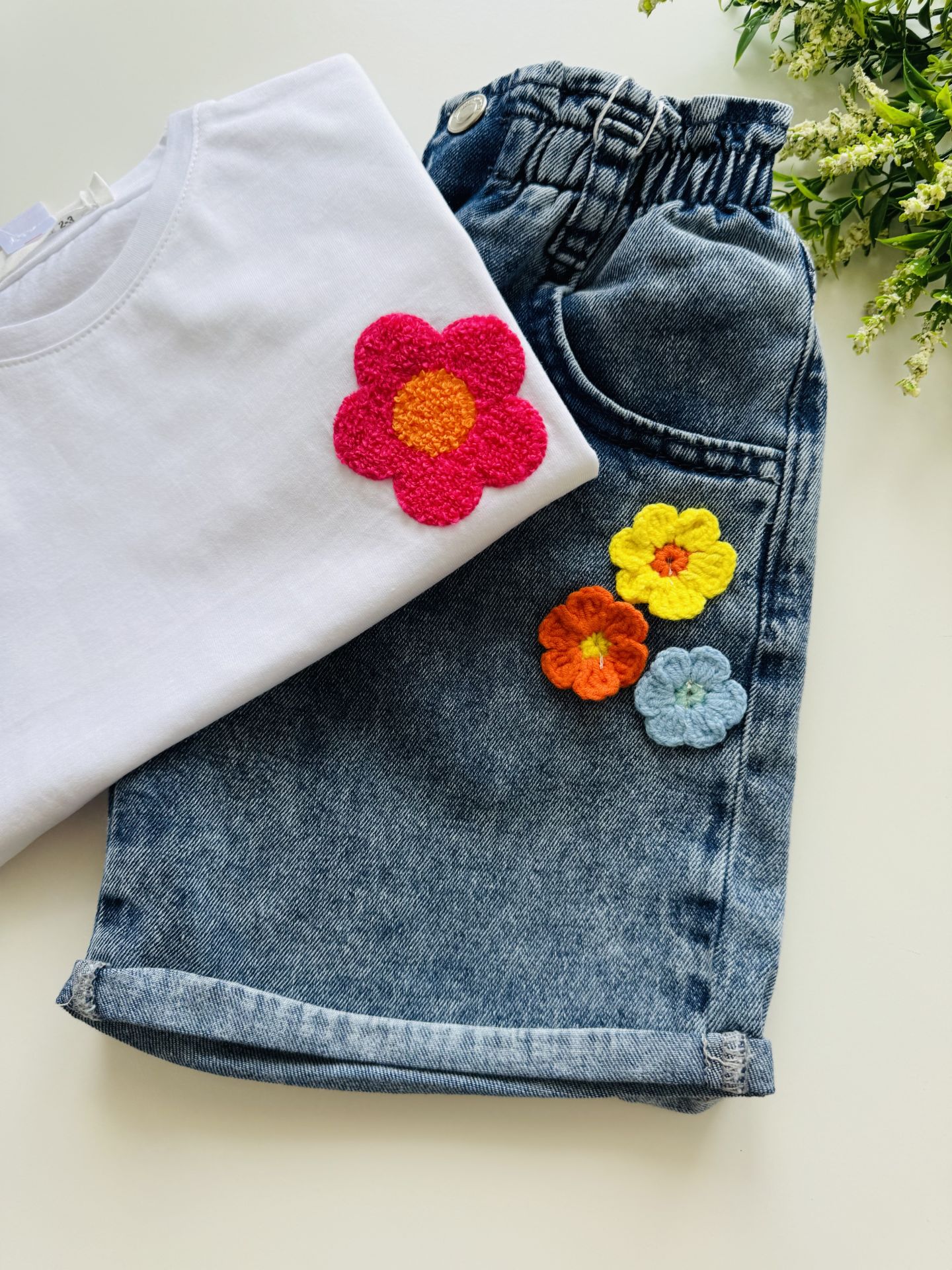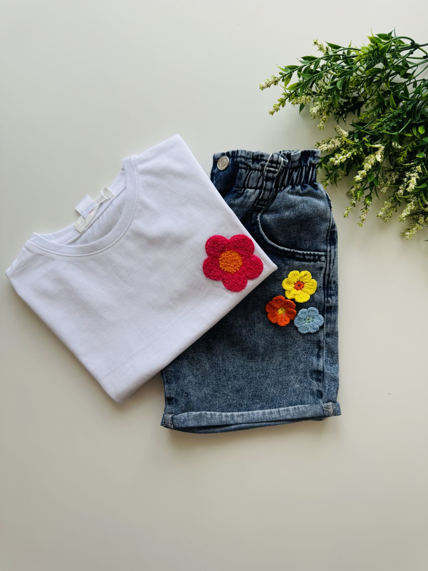 Ürün Bilgisi : Yumuşak denim kumaş şort üzerine papatya aplikeli şort. Üst giyim kategorisindeki beyaz ''Naz Tişört '' ile kombinleyebilirsiniz.