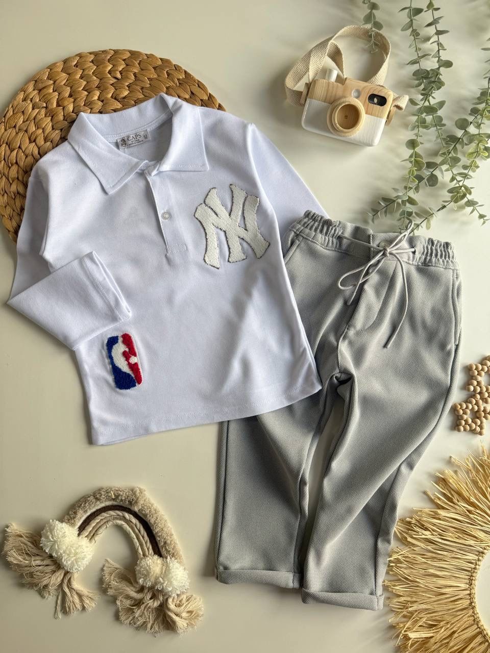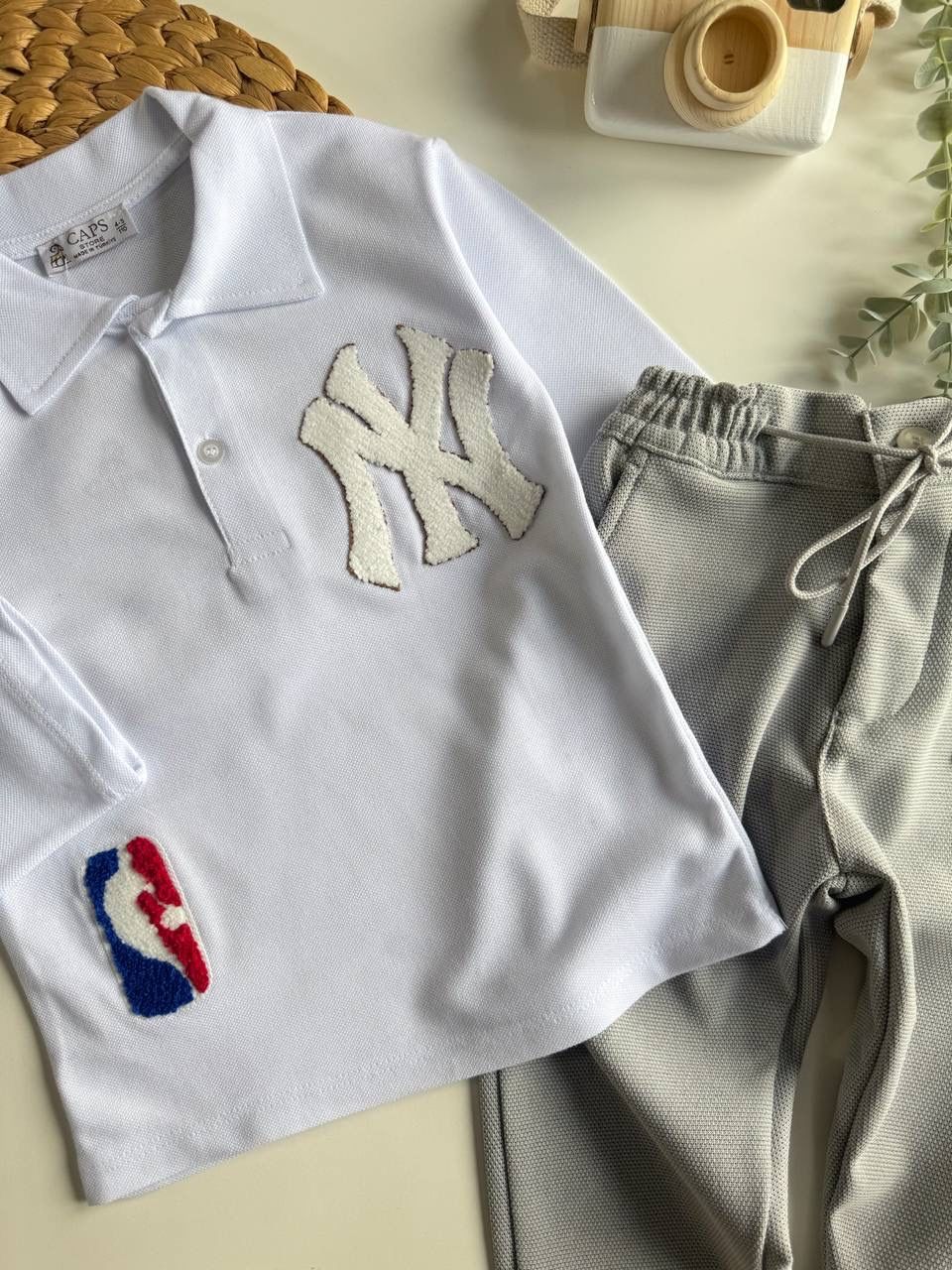 NBA Punch Nakışlı Dokuma Pantolonlu Takım - Gri
