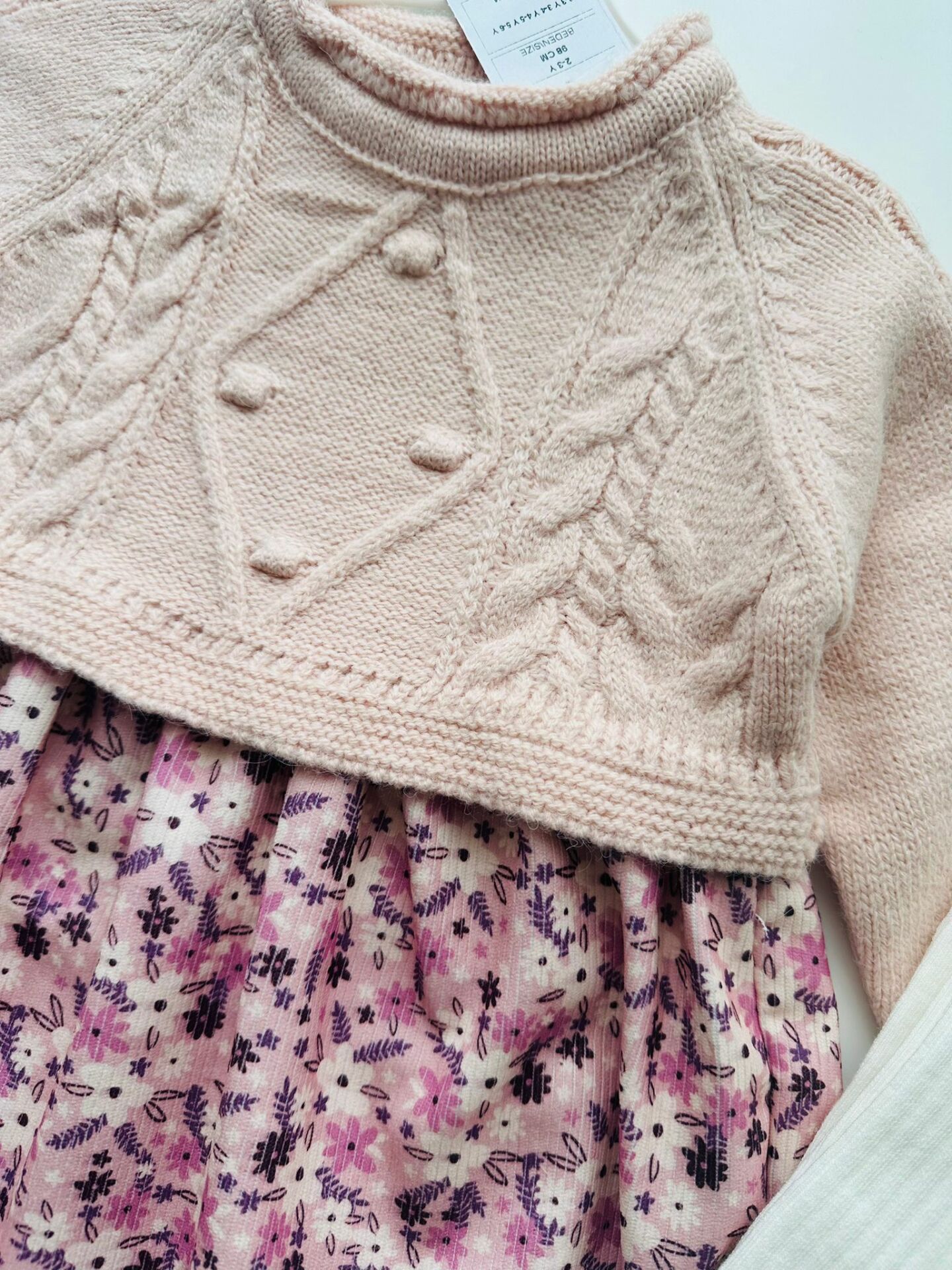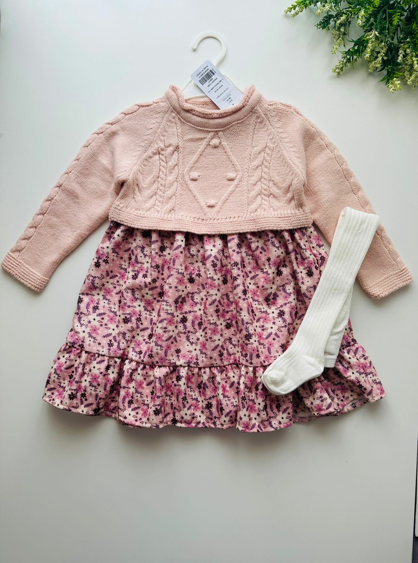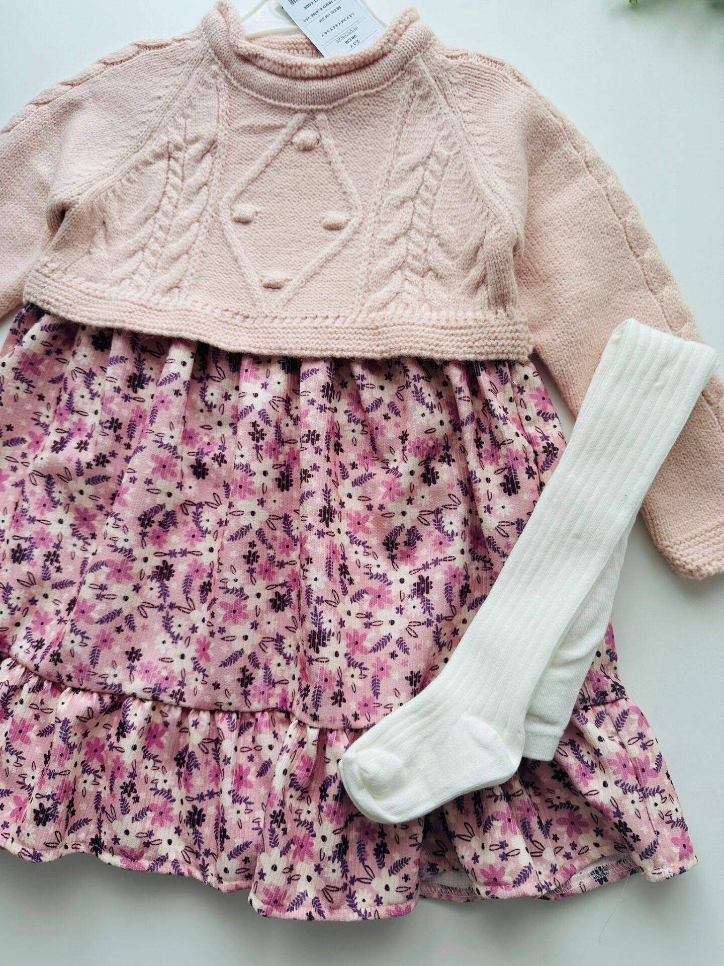 Örgü Detaylı Elbise (Çoraplı) - Pembe