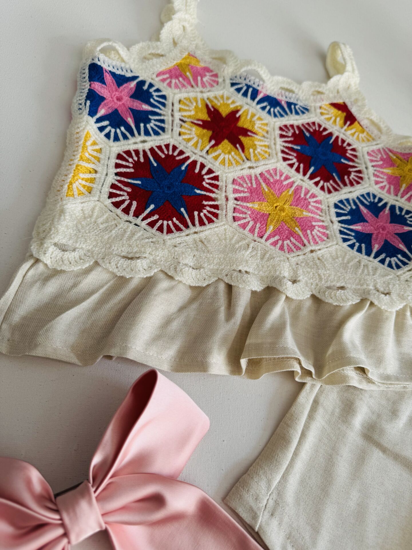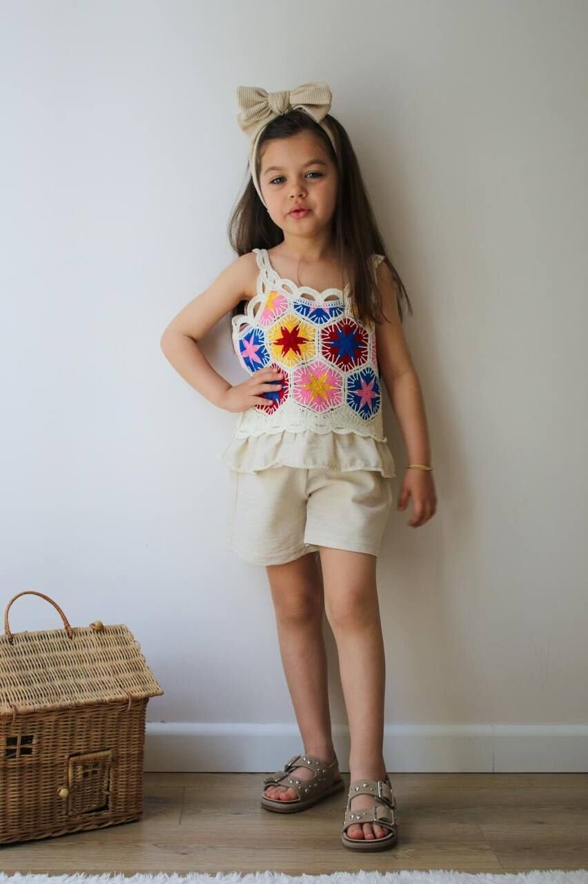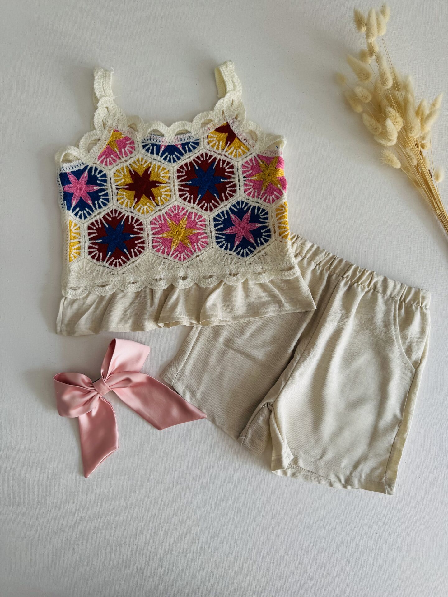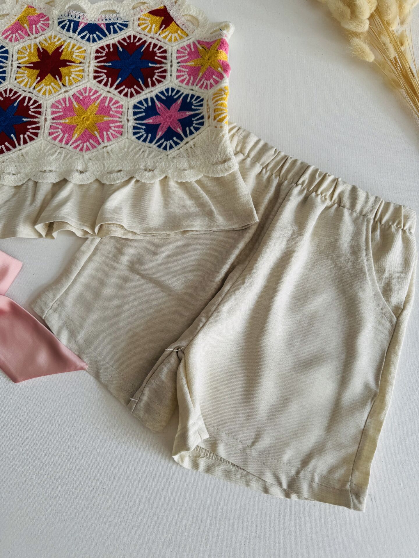 Ürün Bilgisi : Pamuklu penye kumaş üzerine örgü motif alt şort