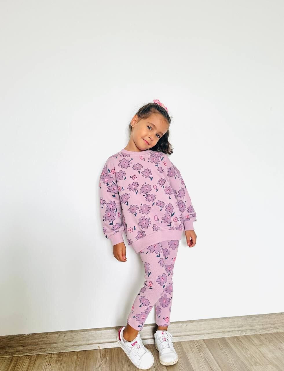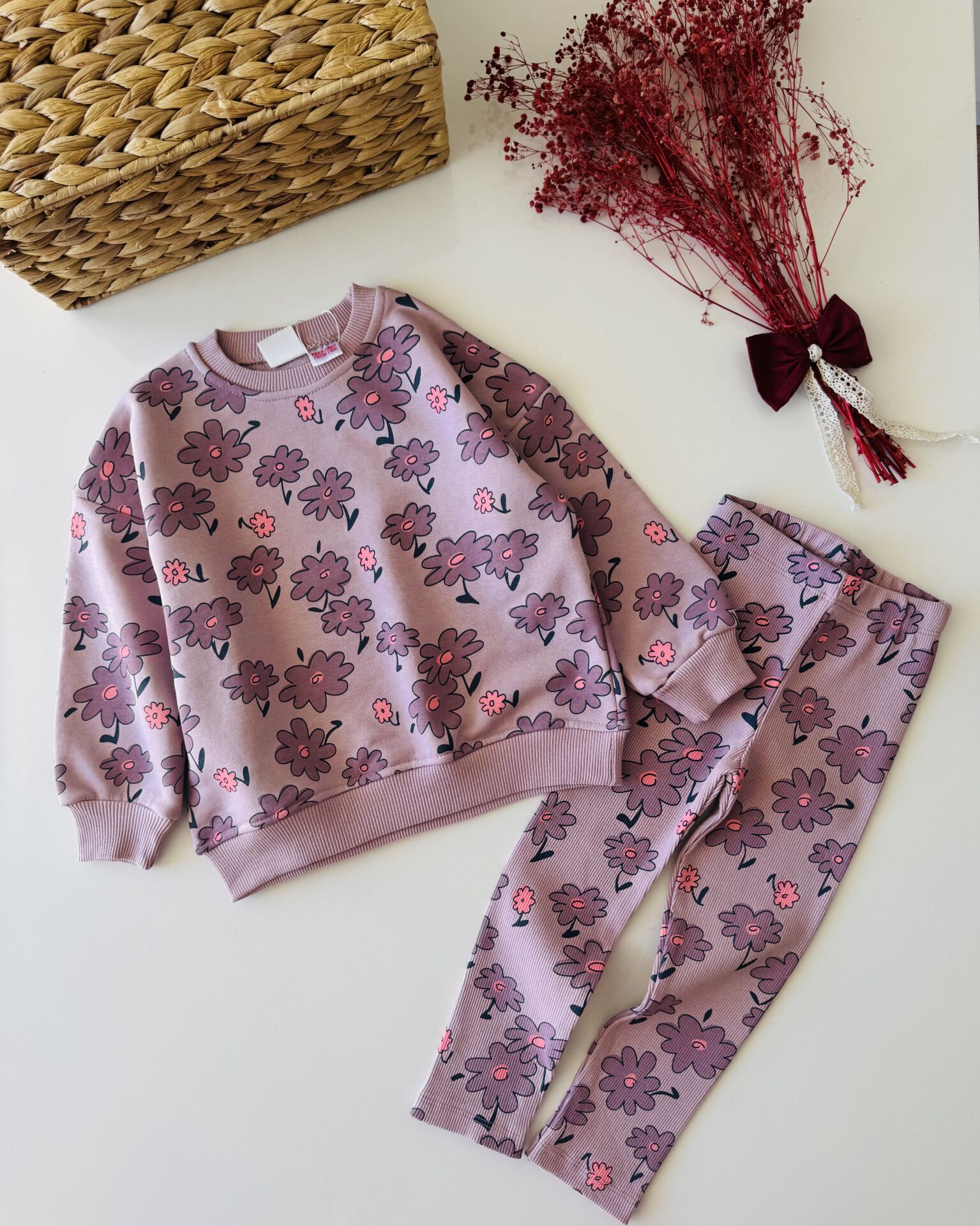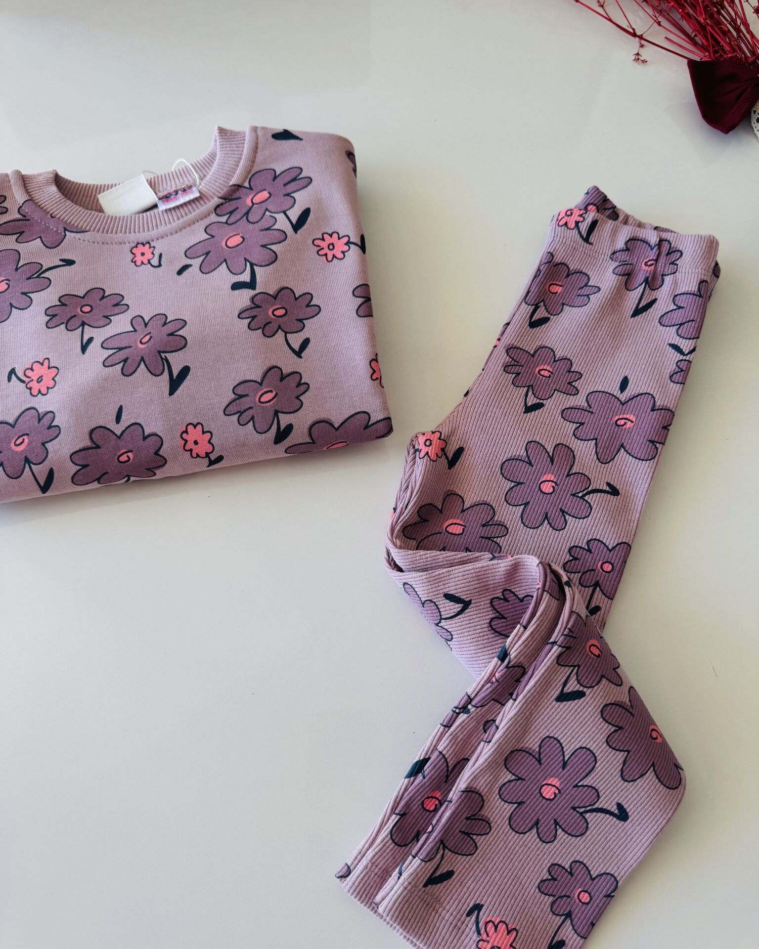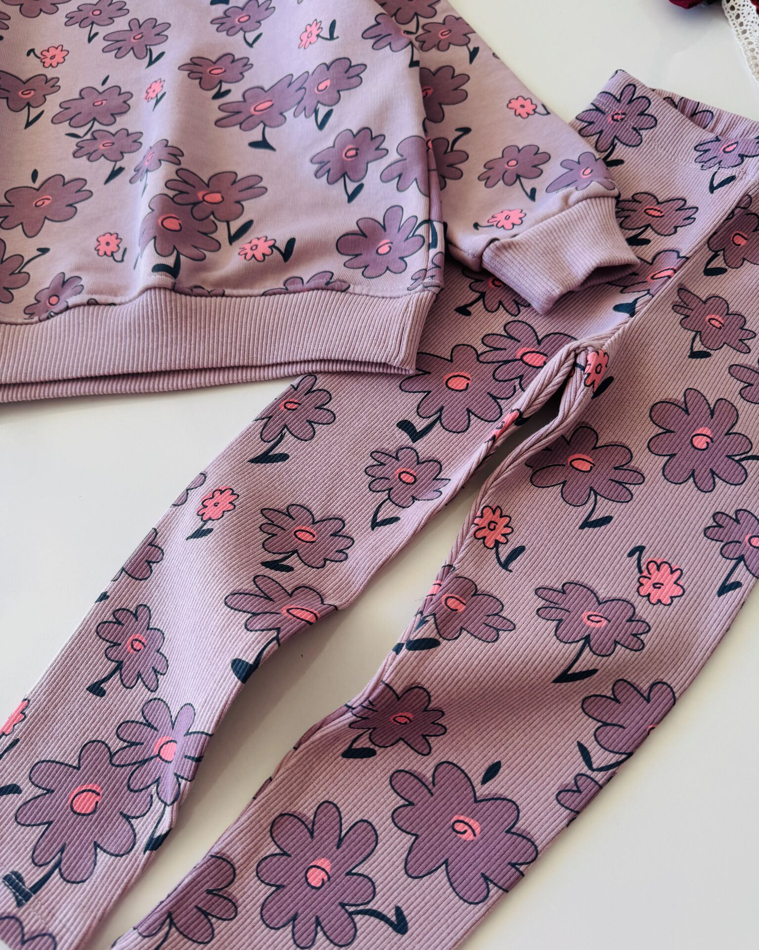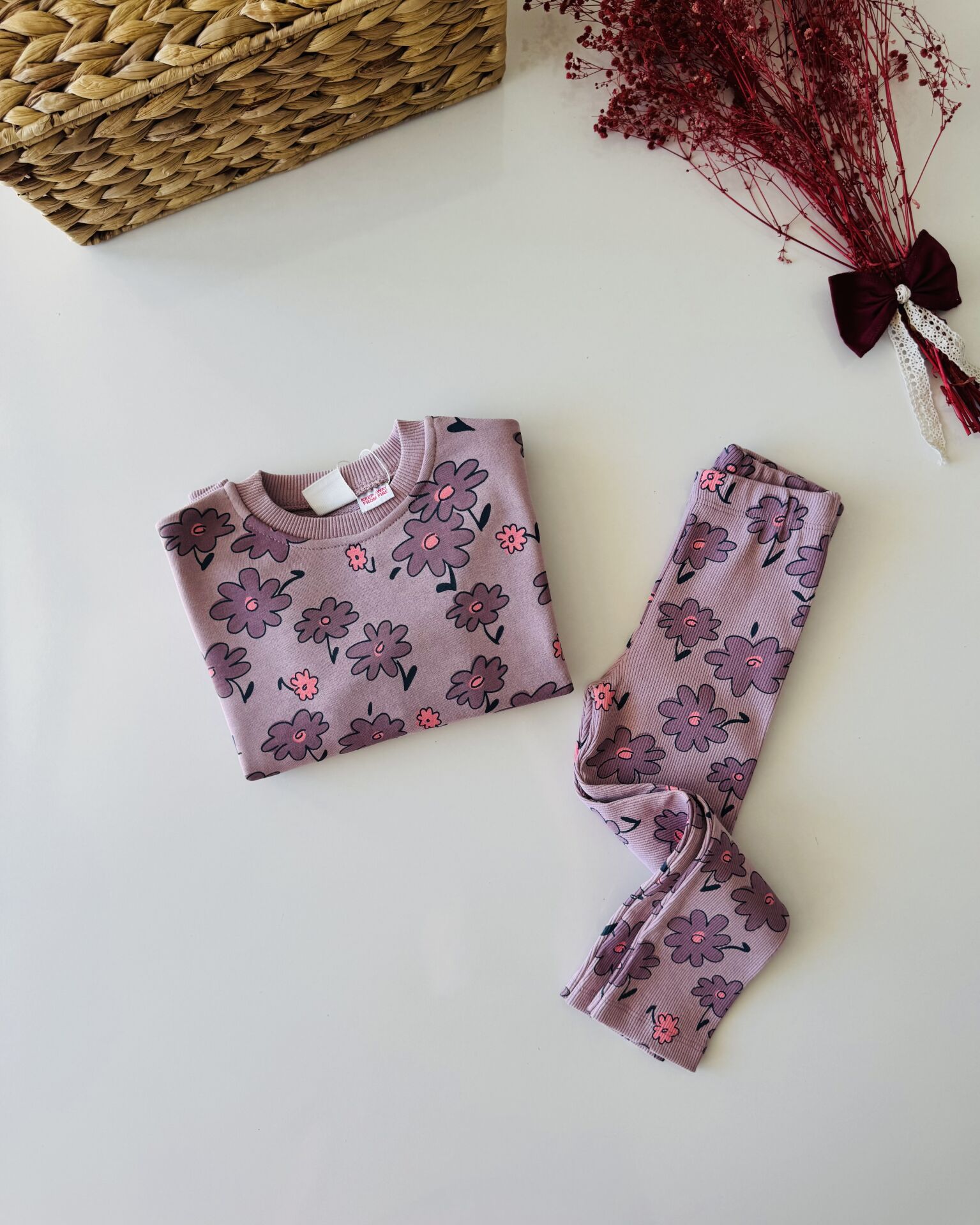 Orkide Baskılı Taytlı Defne Takım - Lila