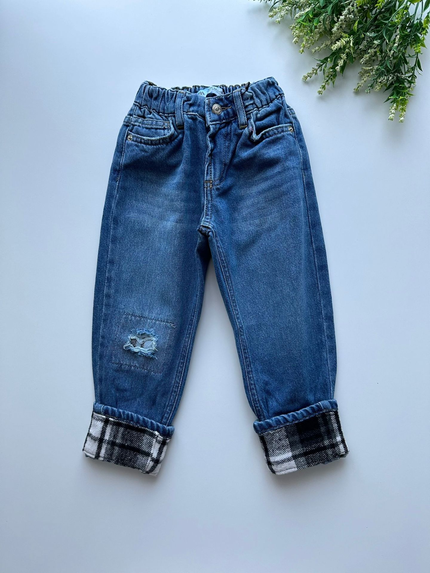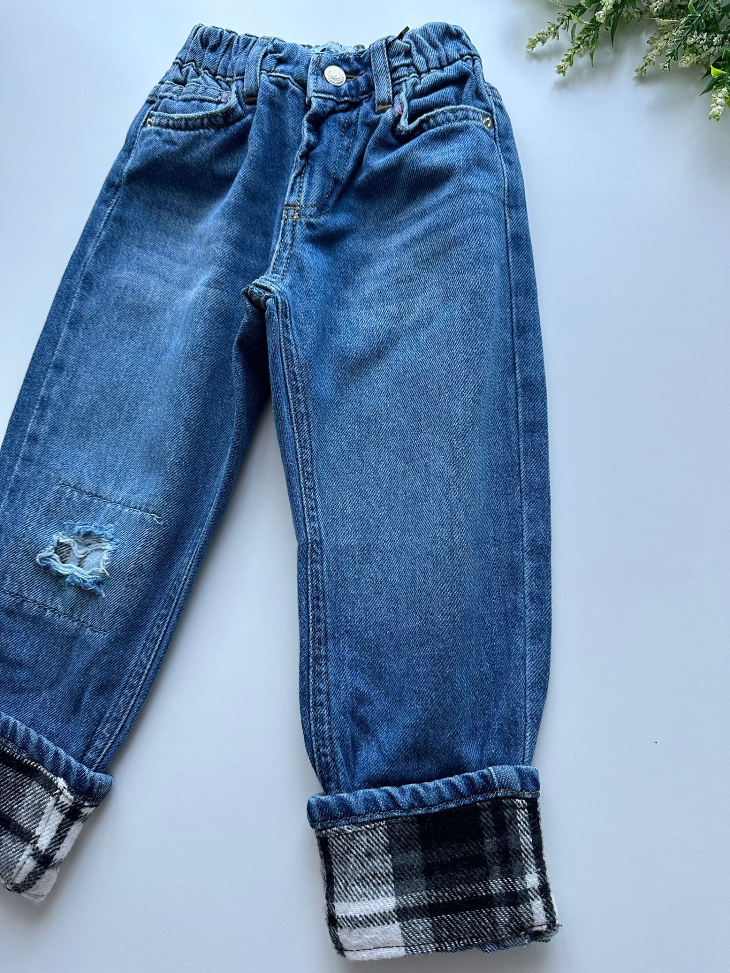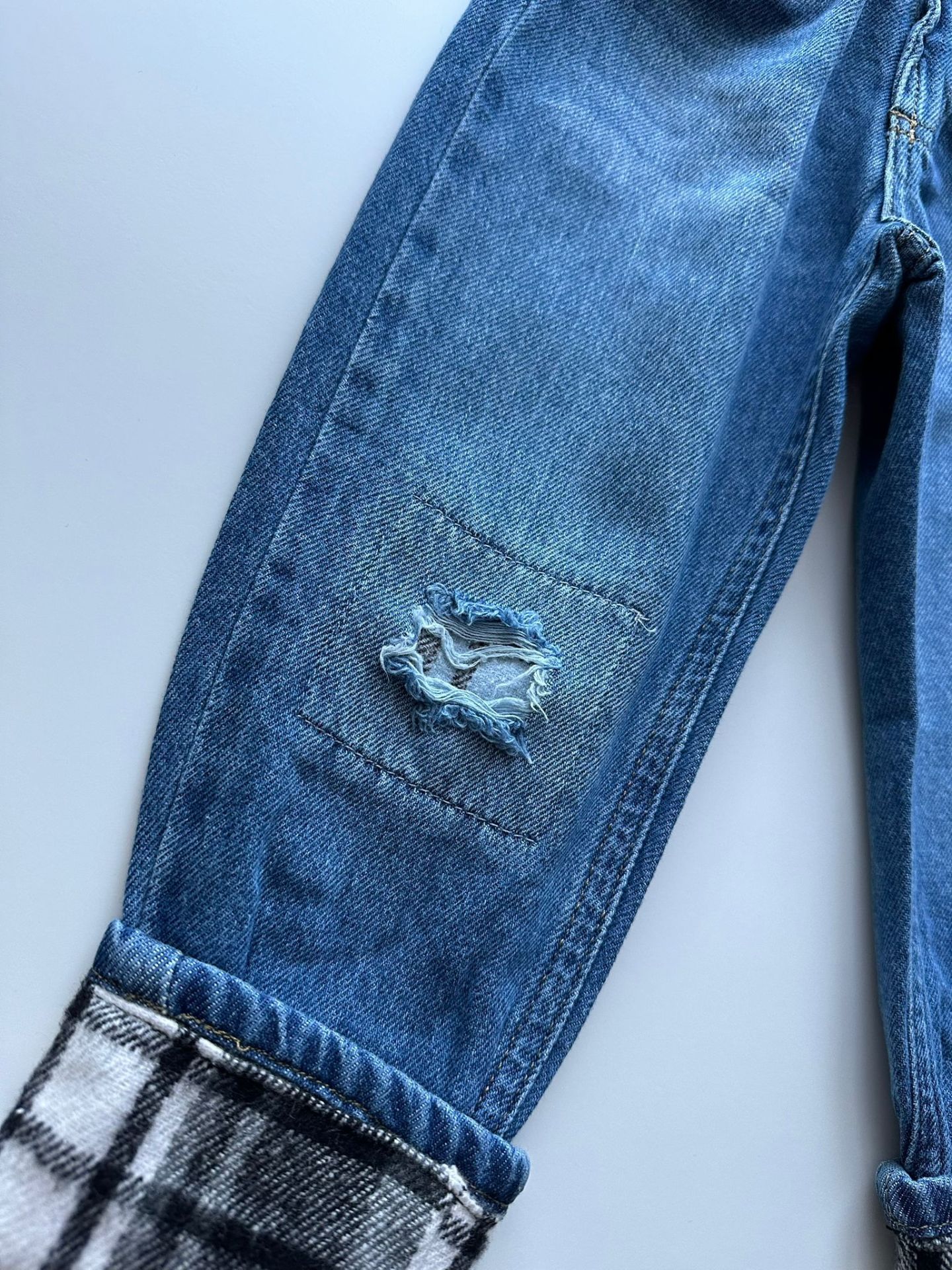 Tam kalıp, yumuşak denim kumaştır. Paça uçları yamalıdır.