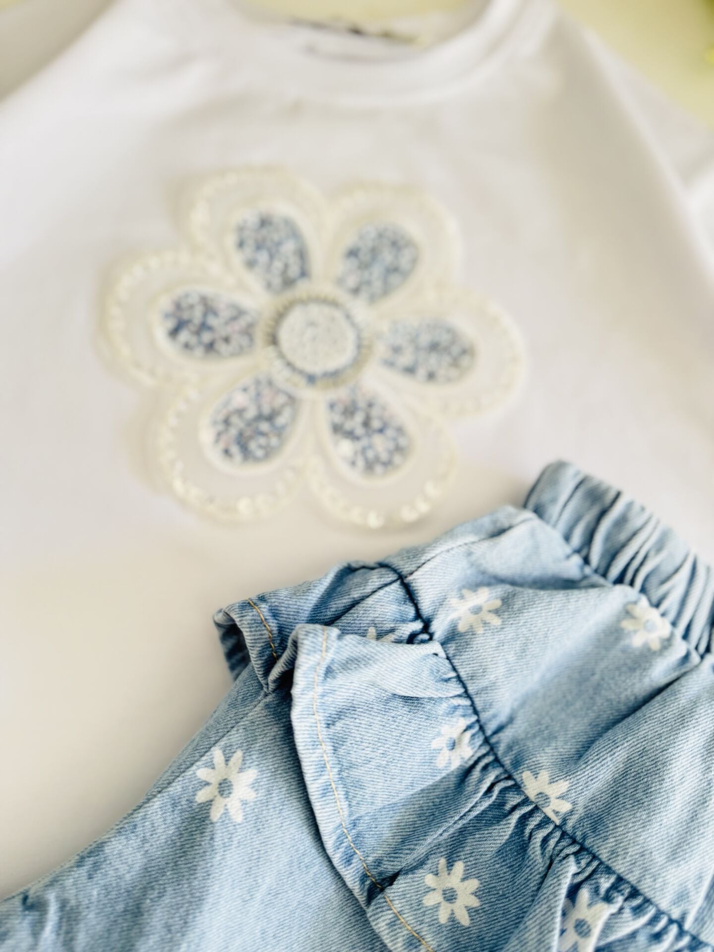 Ürün Bilgisi : Papatya baskılı şort etek ile kombinleyebilirsiz.