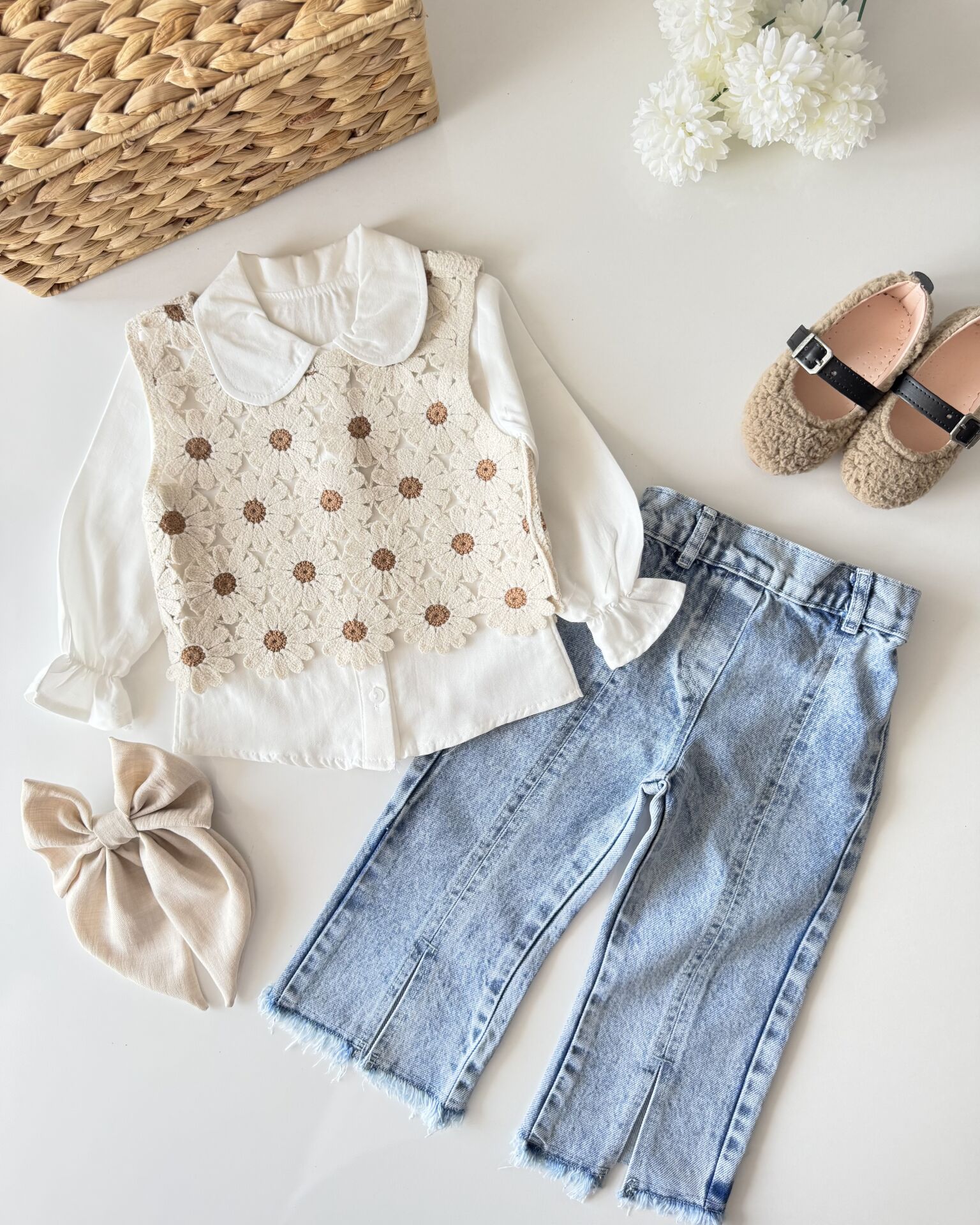 ‣ Üst triko, içi pamuklu gömlek, alt denim pantolon