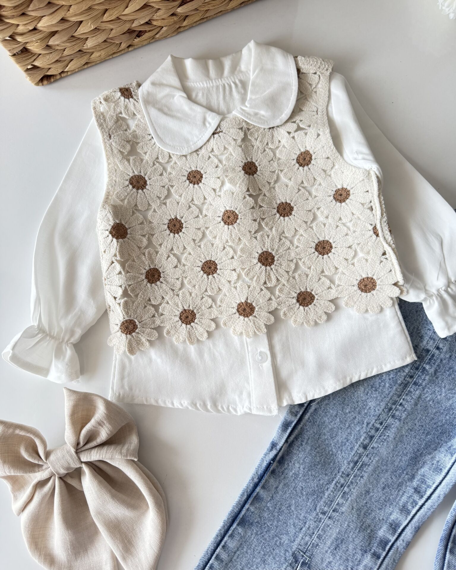Papatya Aplikeli Pantolonlu Takım - Kahve