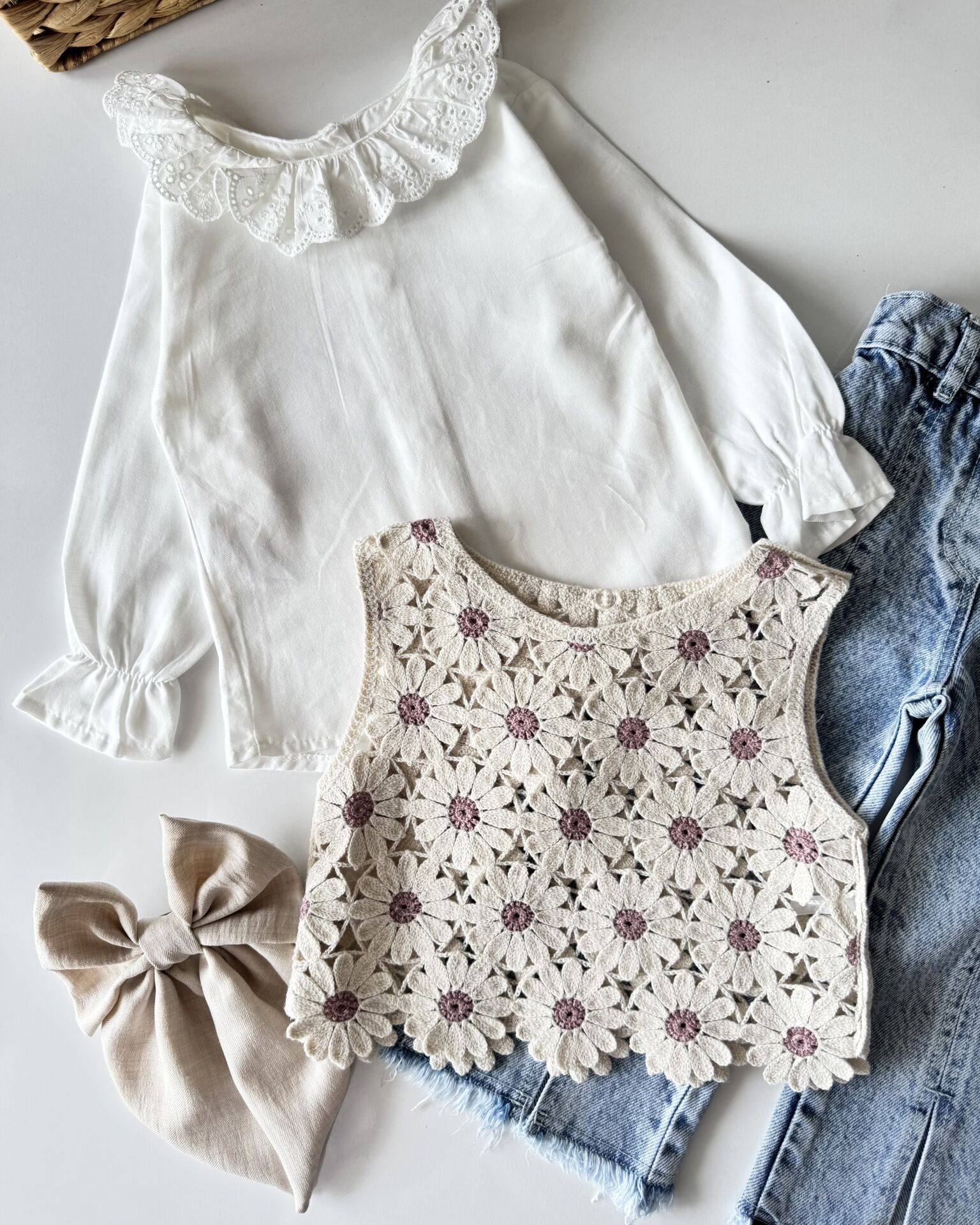‣ Üst triko, içi pamuklu gömlek, alt denim pantolon