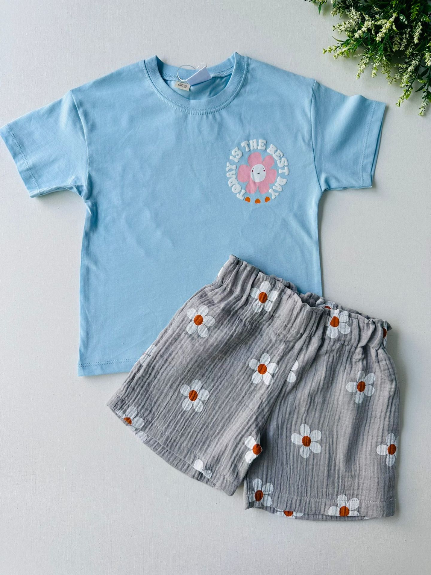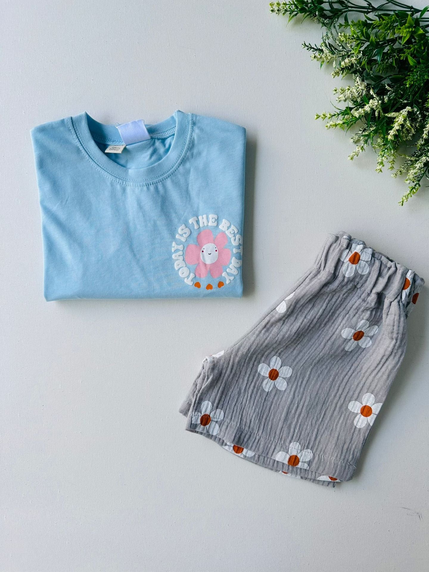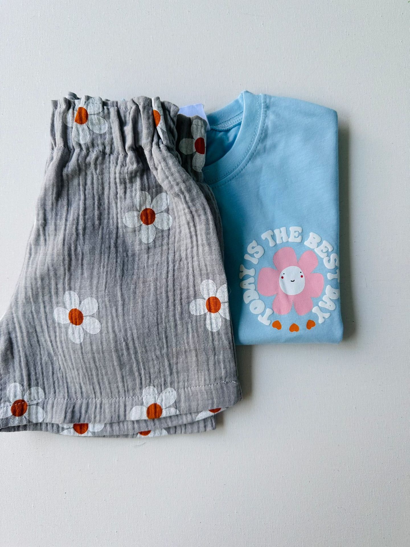 Papatya Desenli Müslin Şortlu Takım - Mavi 7/8 Yaş